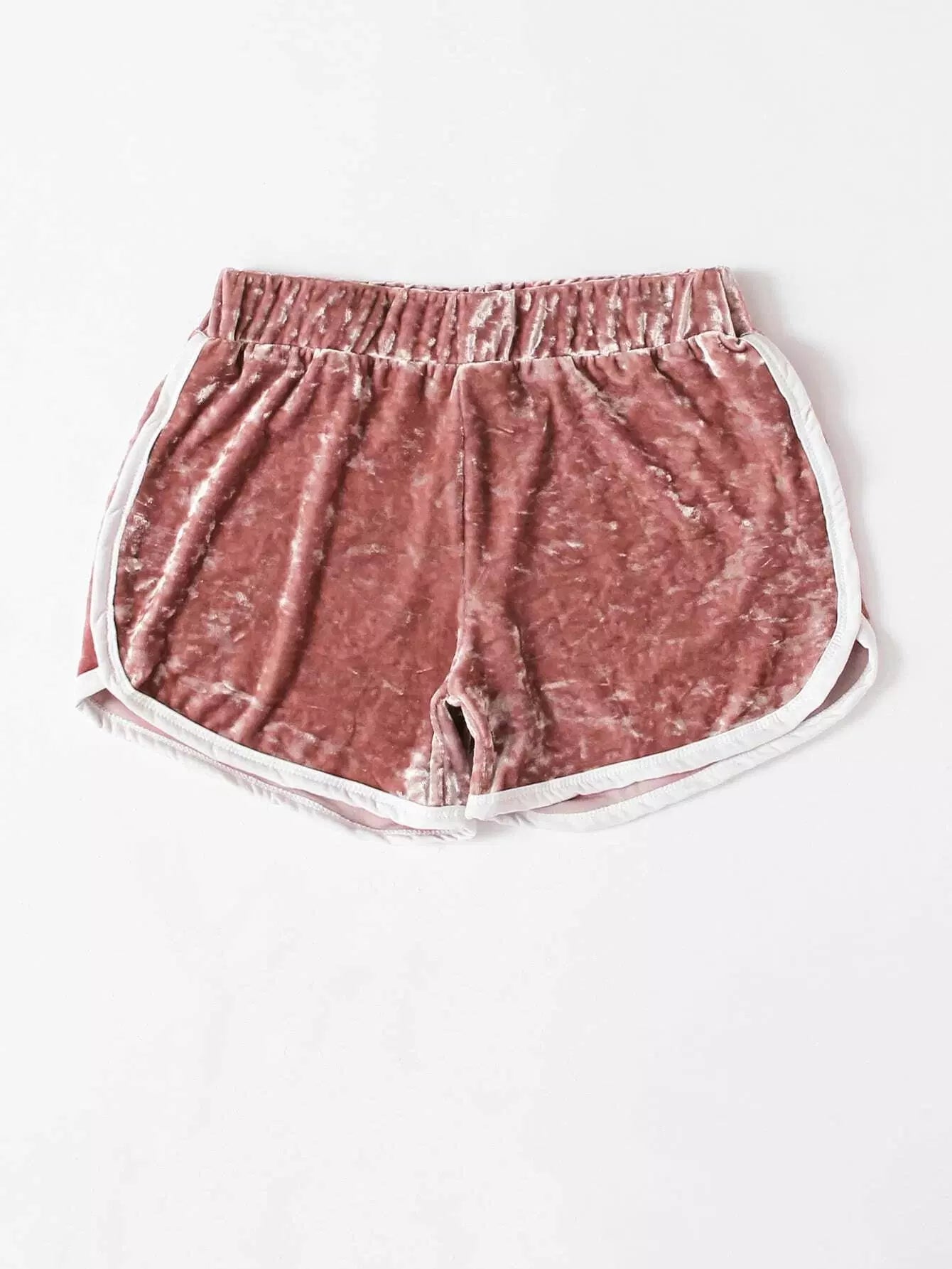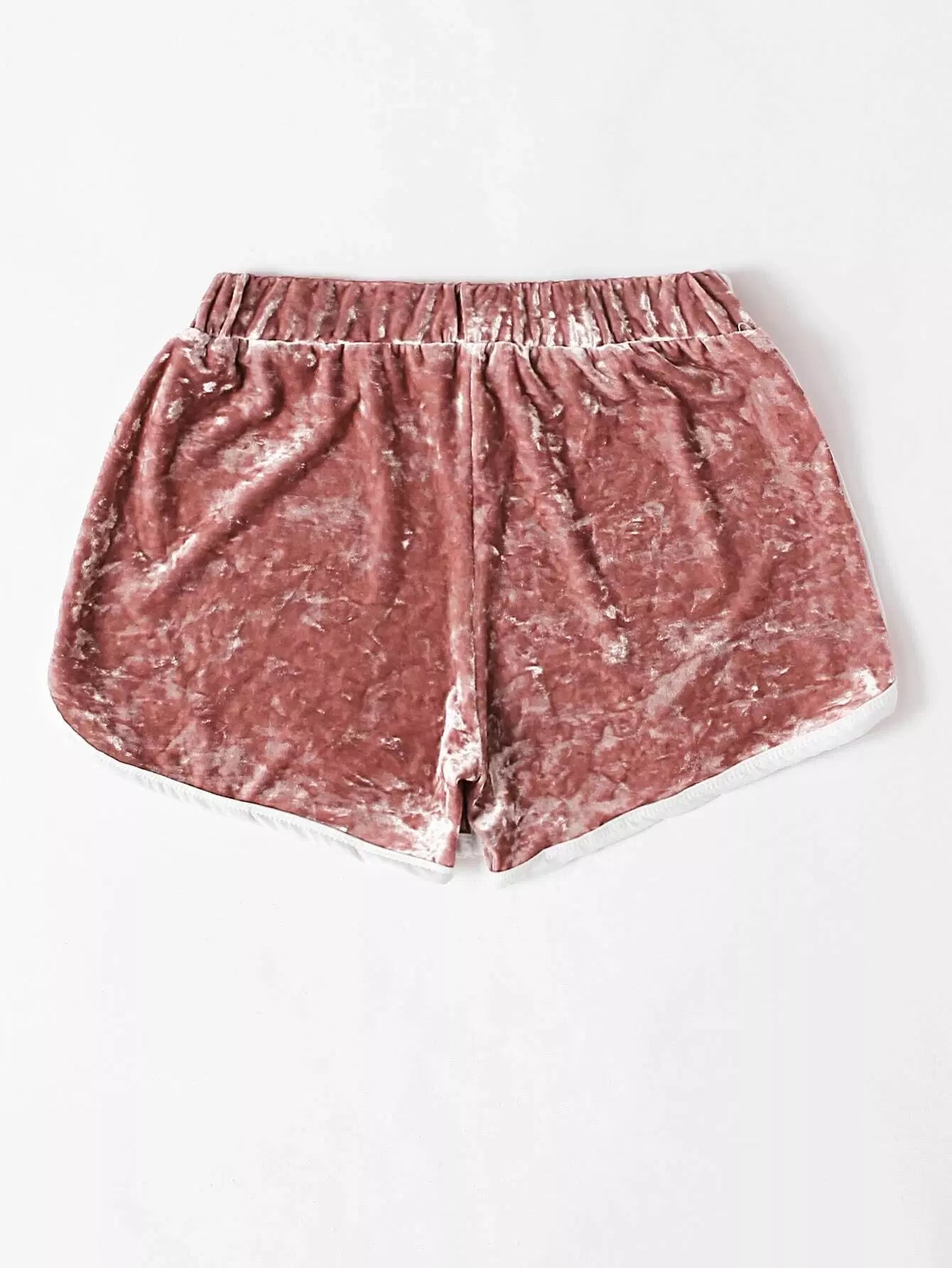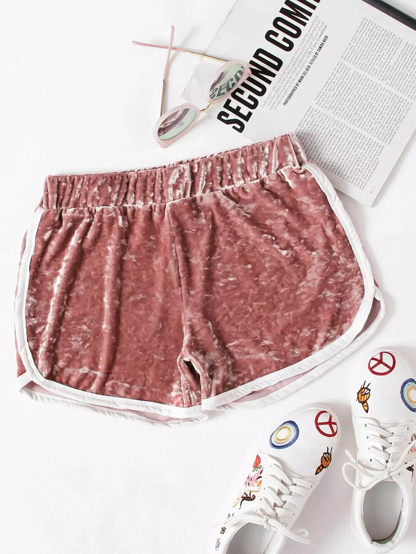 شورت قصير مخملي بحواف مخملية ذات خصر مطاطي بلون مغاير