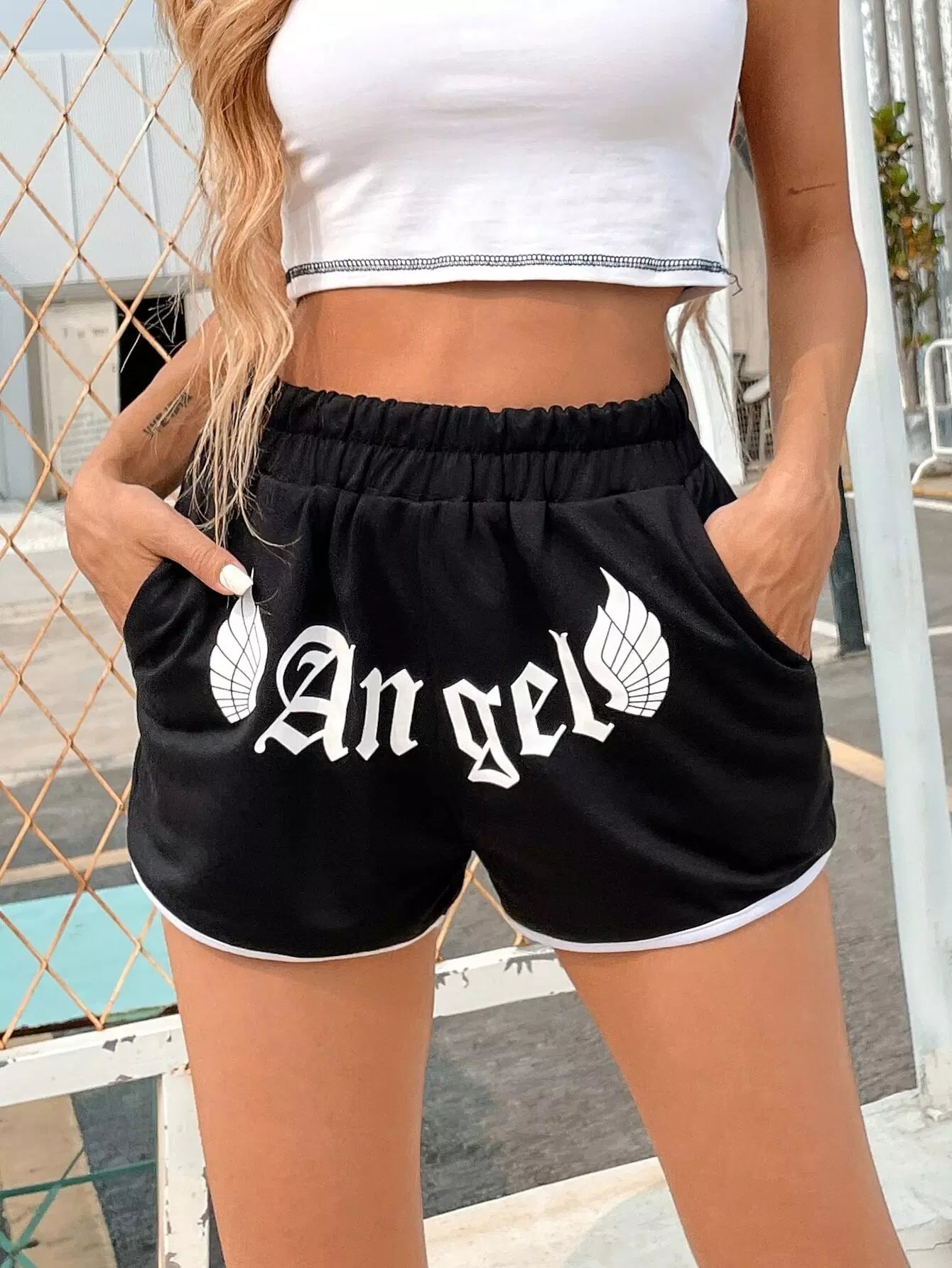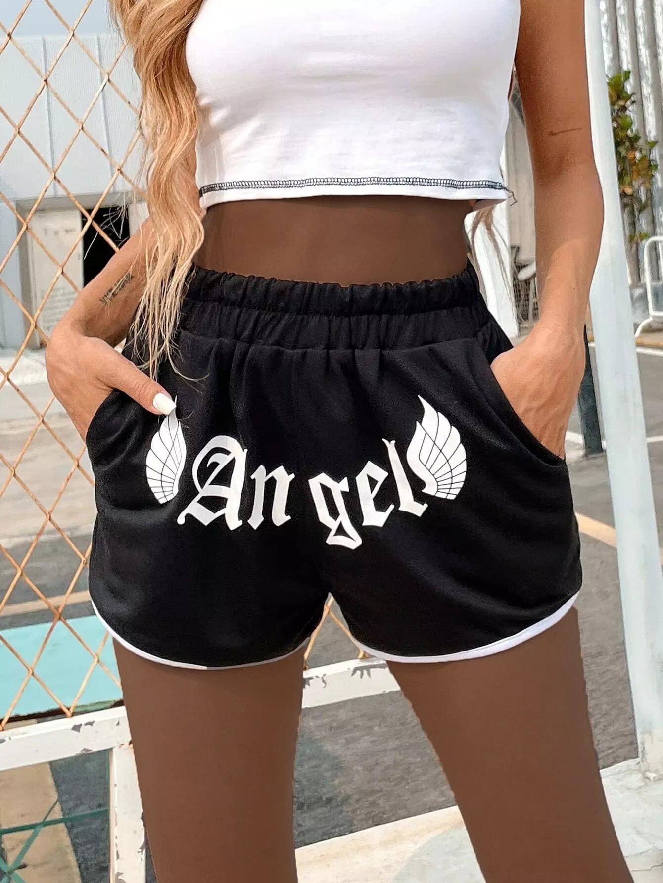 شورت جرافيك بأجنحة وحروف