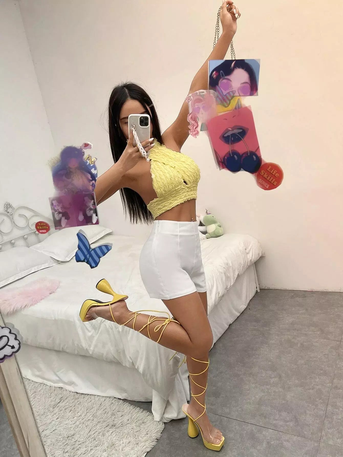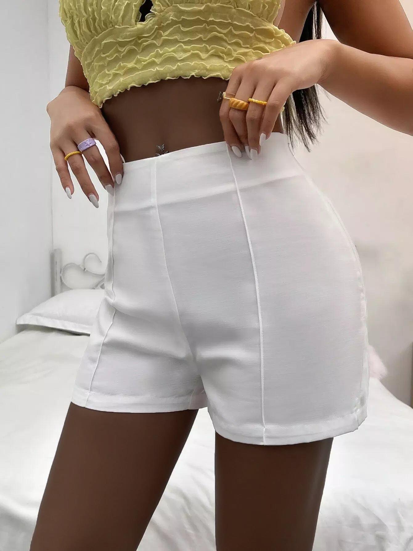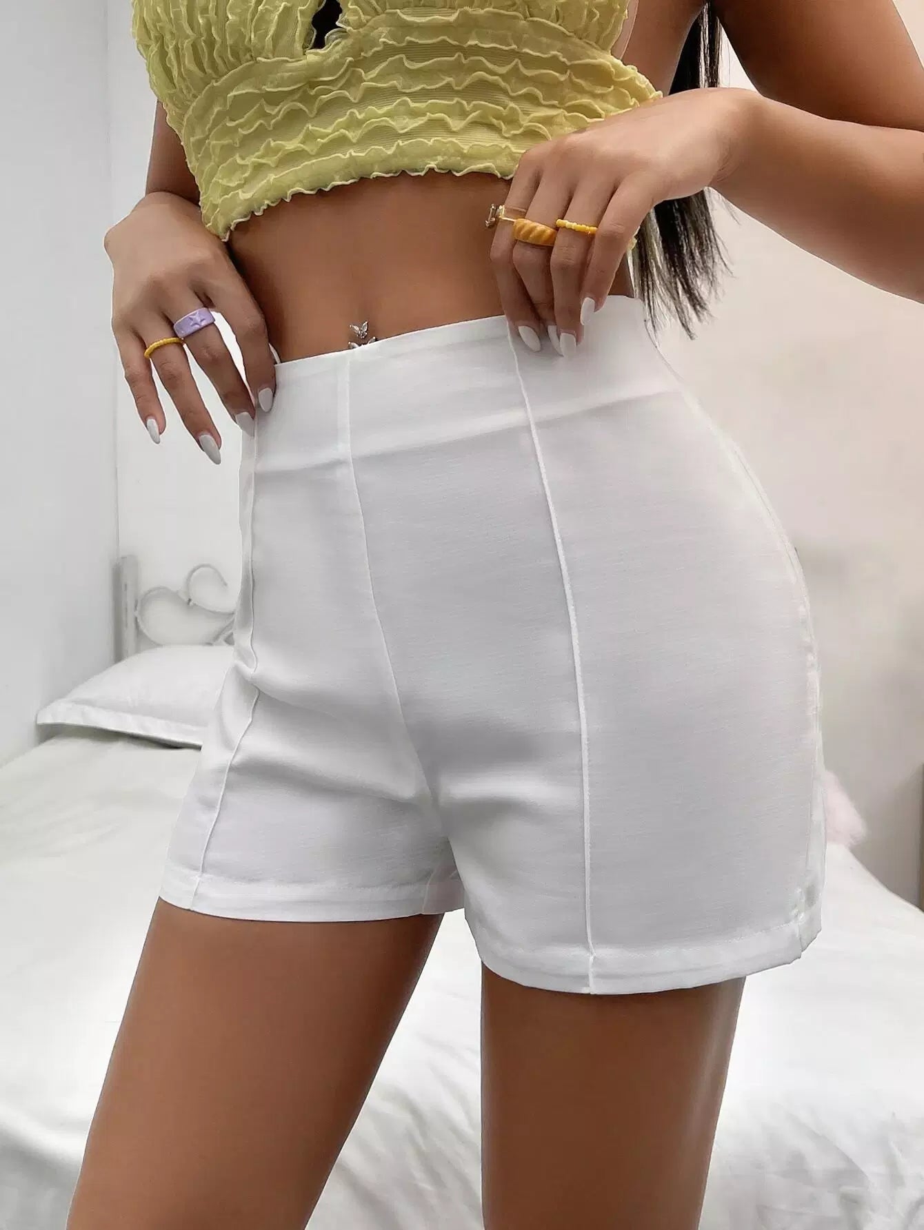شورت بخصر عالٍ مرتفع الخصر بسحاب جانبي