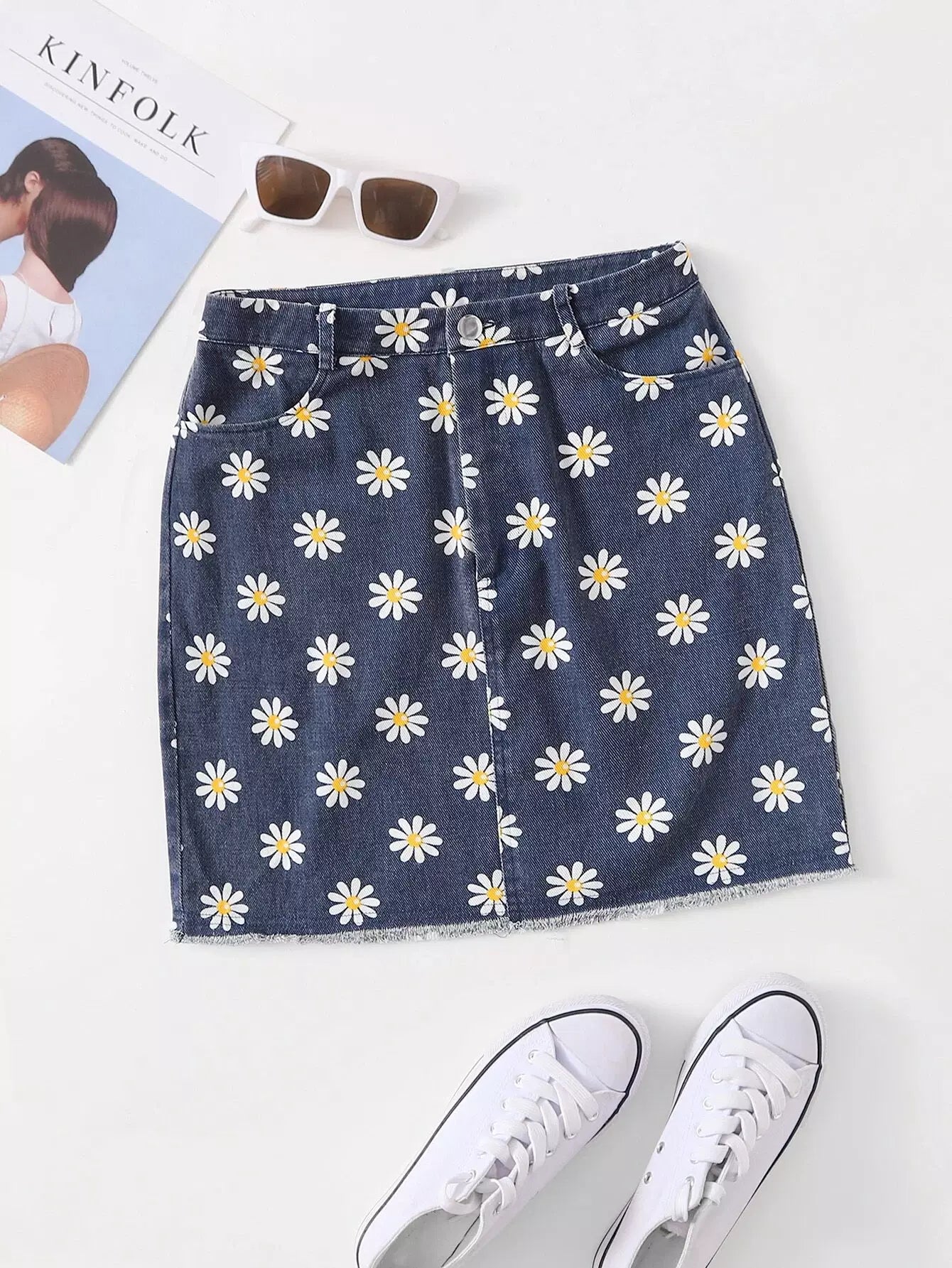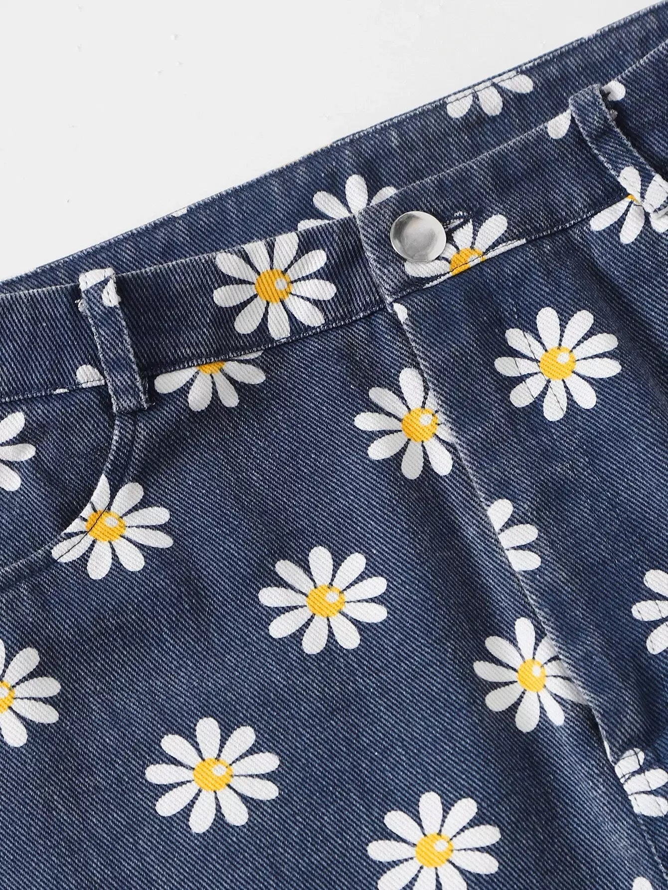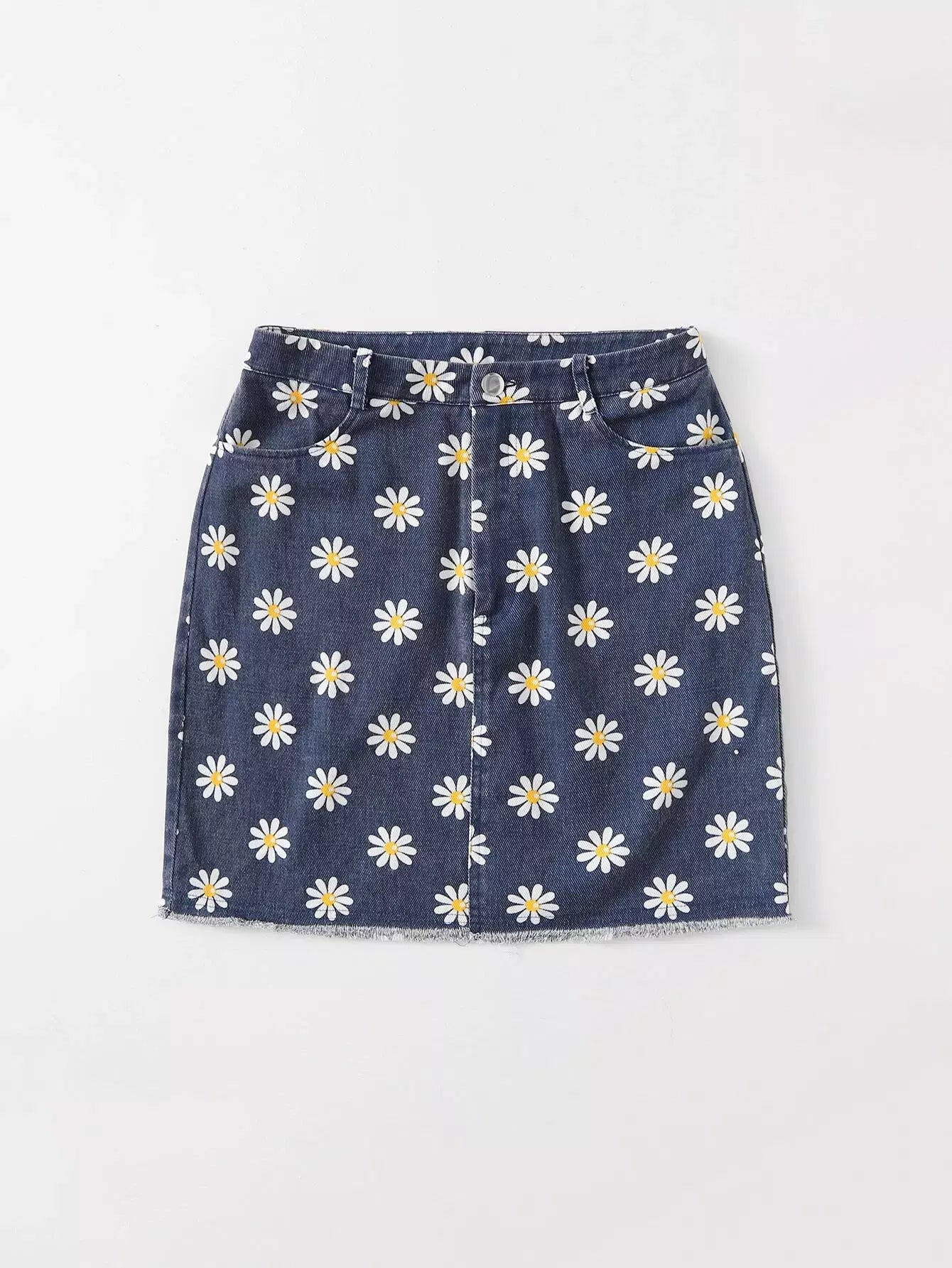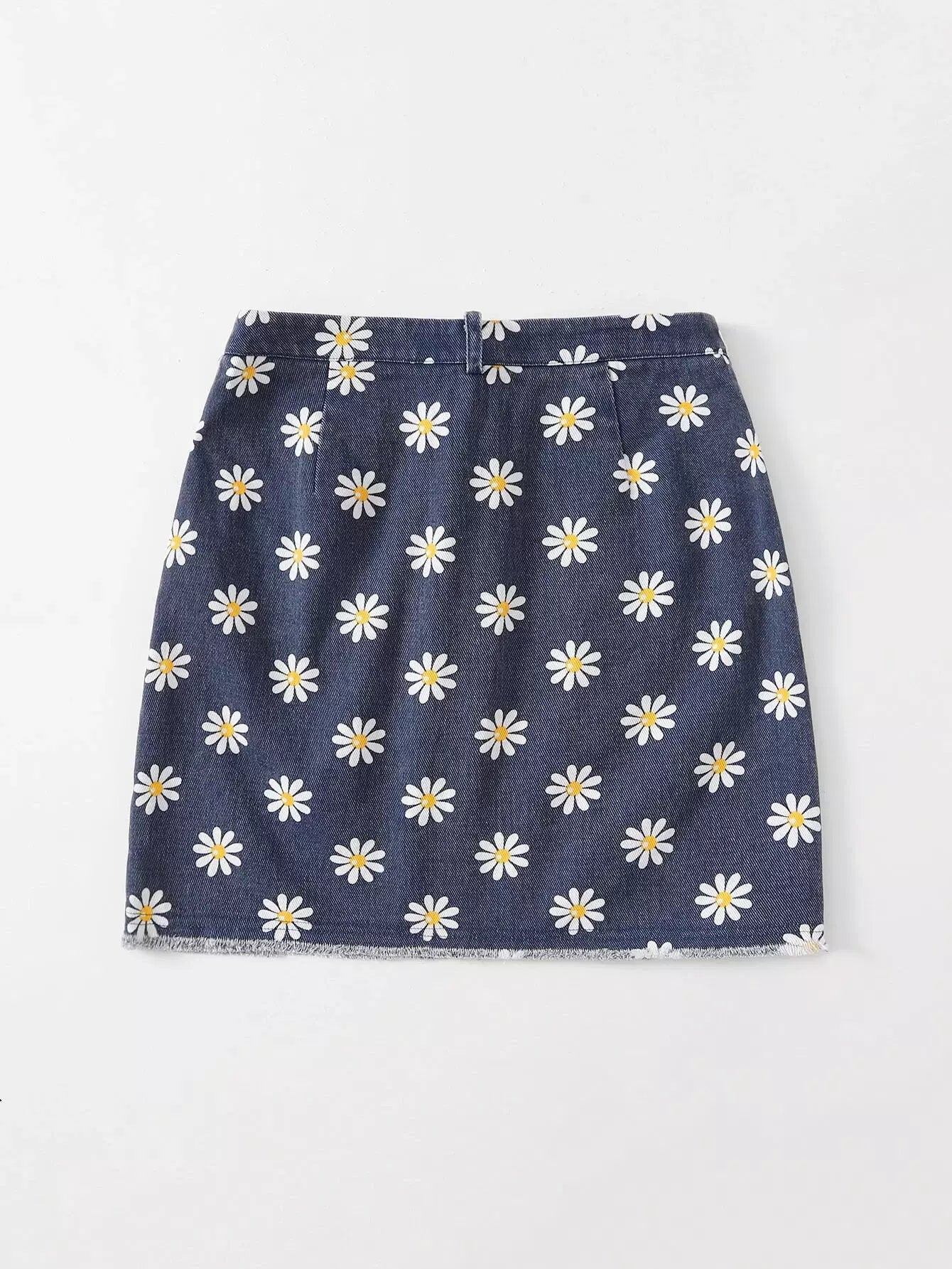 تنورة بطبعة أقحوان مطبوع عليها زهرة الأقحوان بحافة خام