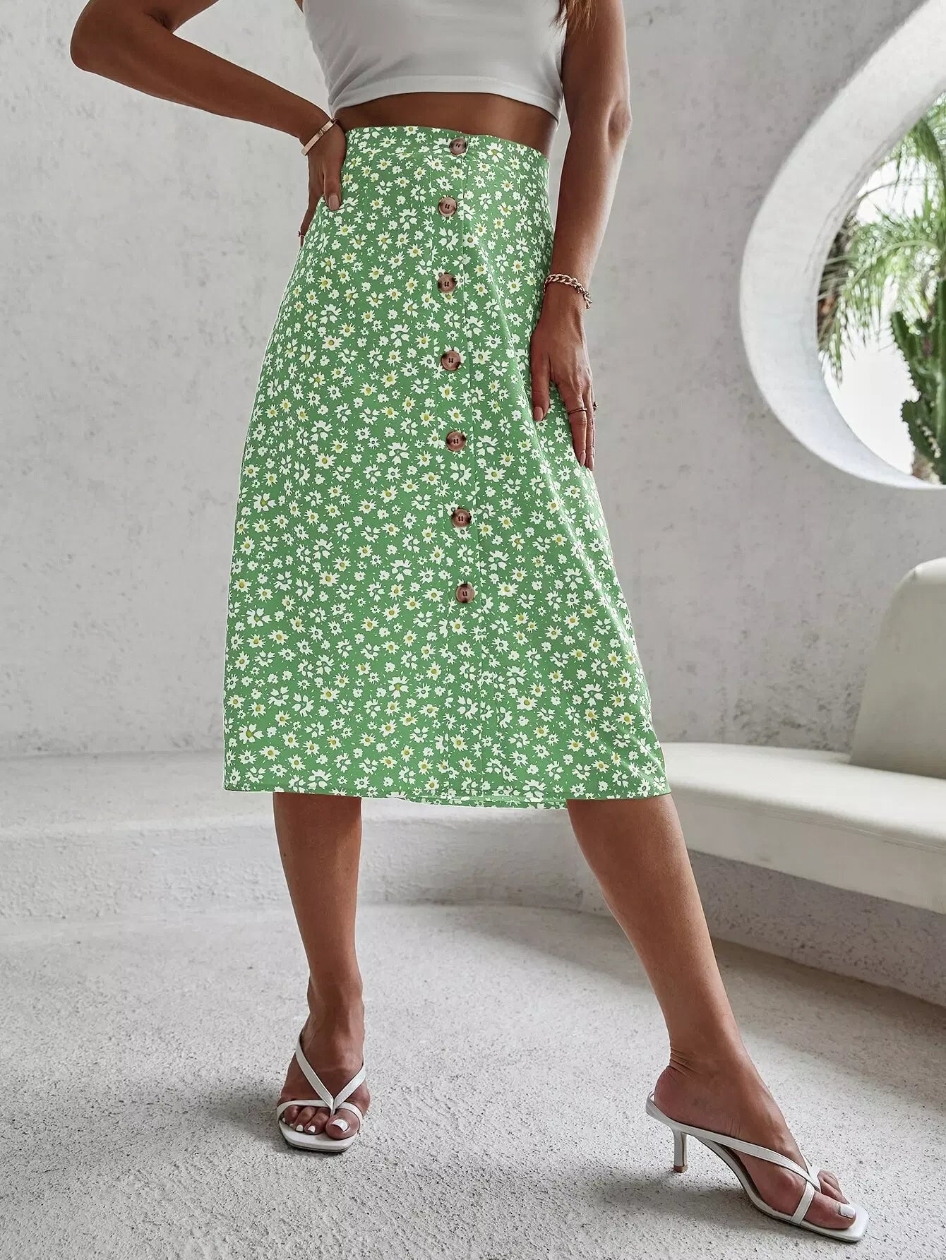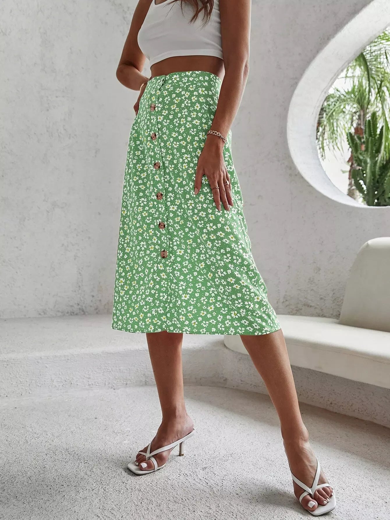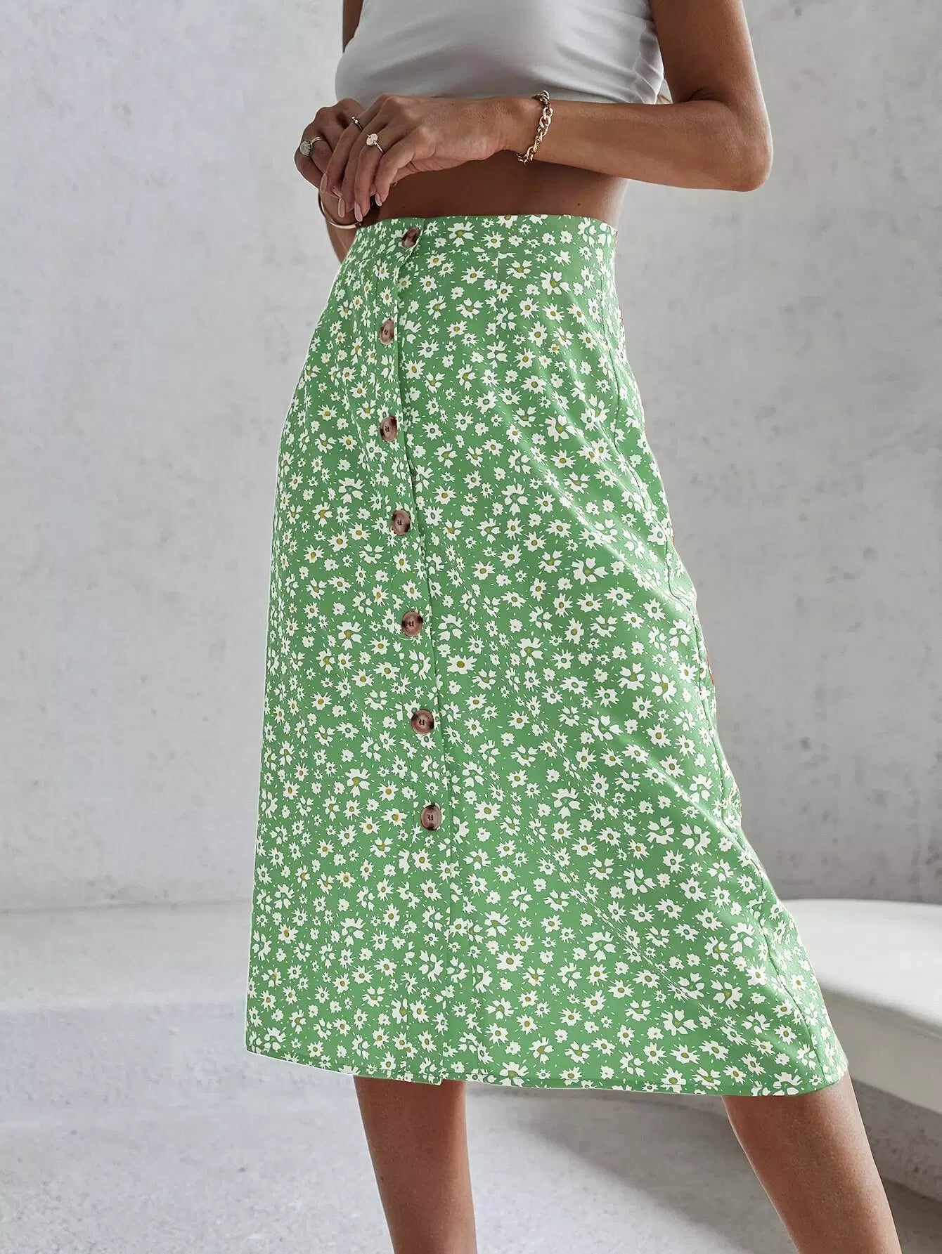 النساء - تنورة بأزرار أمامية منقوشة بالزهور