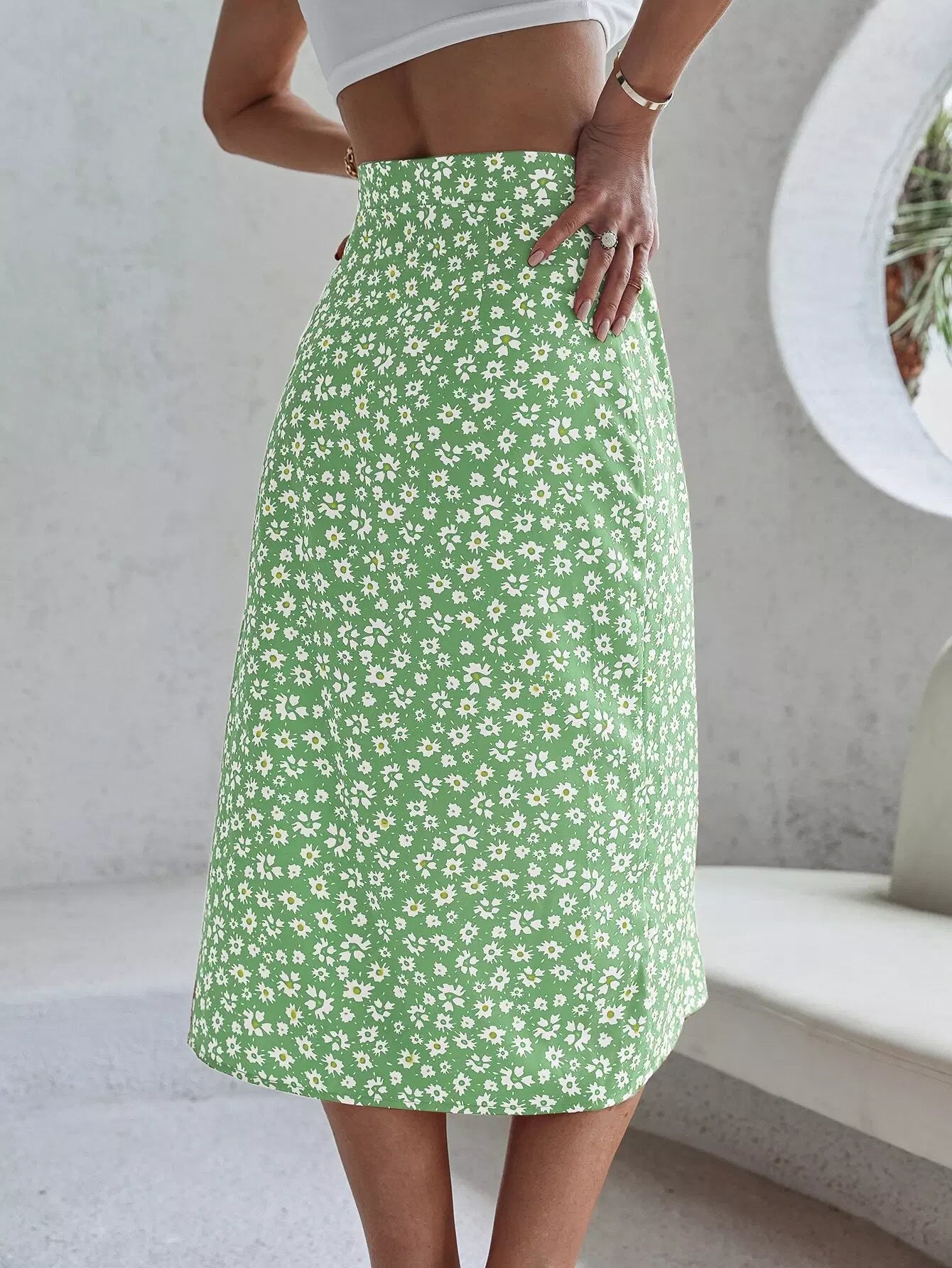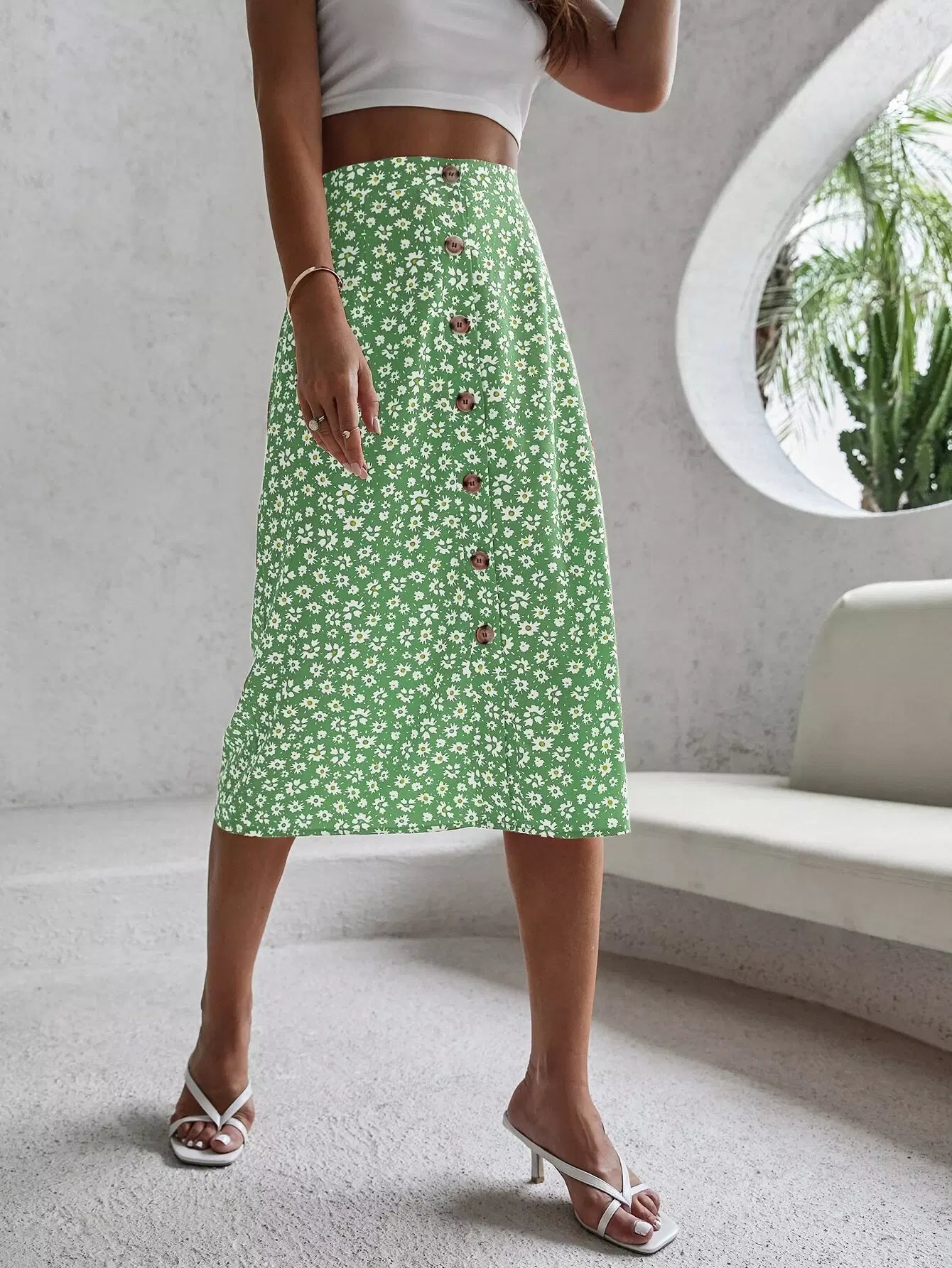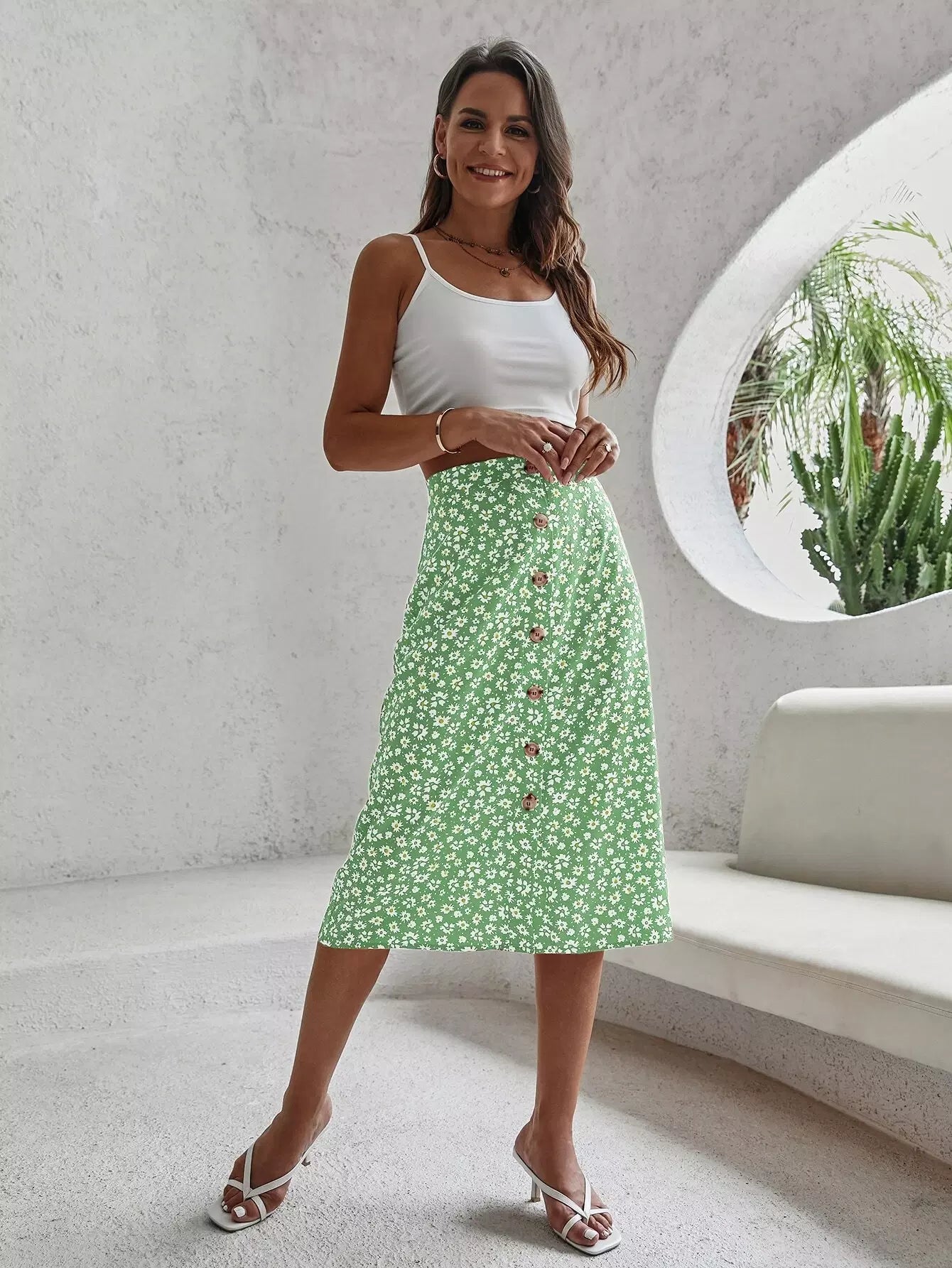 النساء - تنورة بأزرار أمامية منقوشة بالزهور