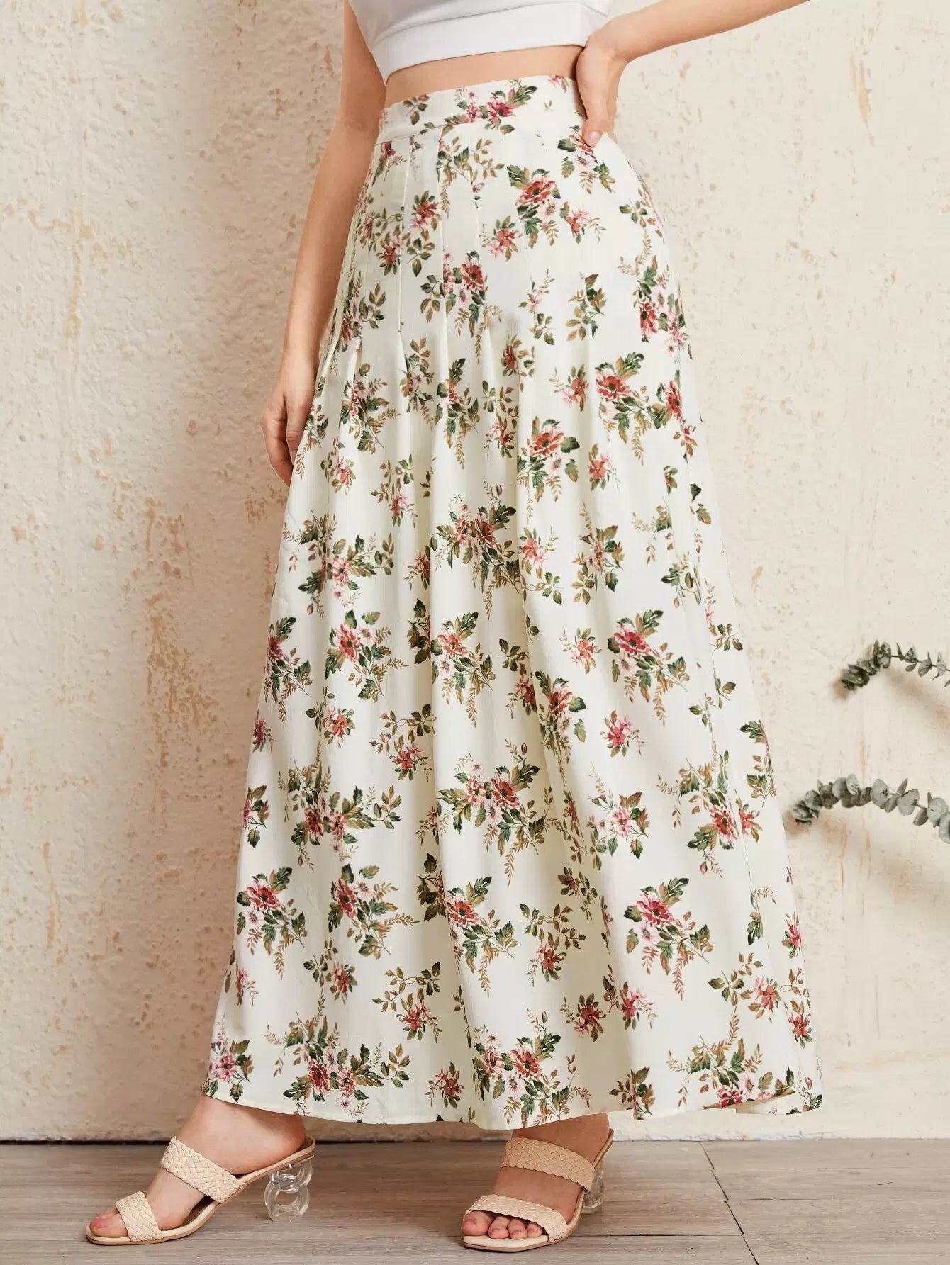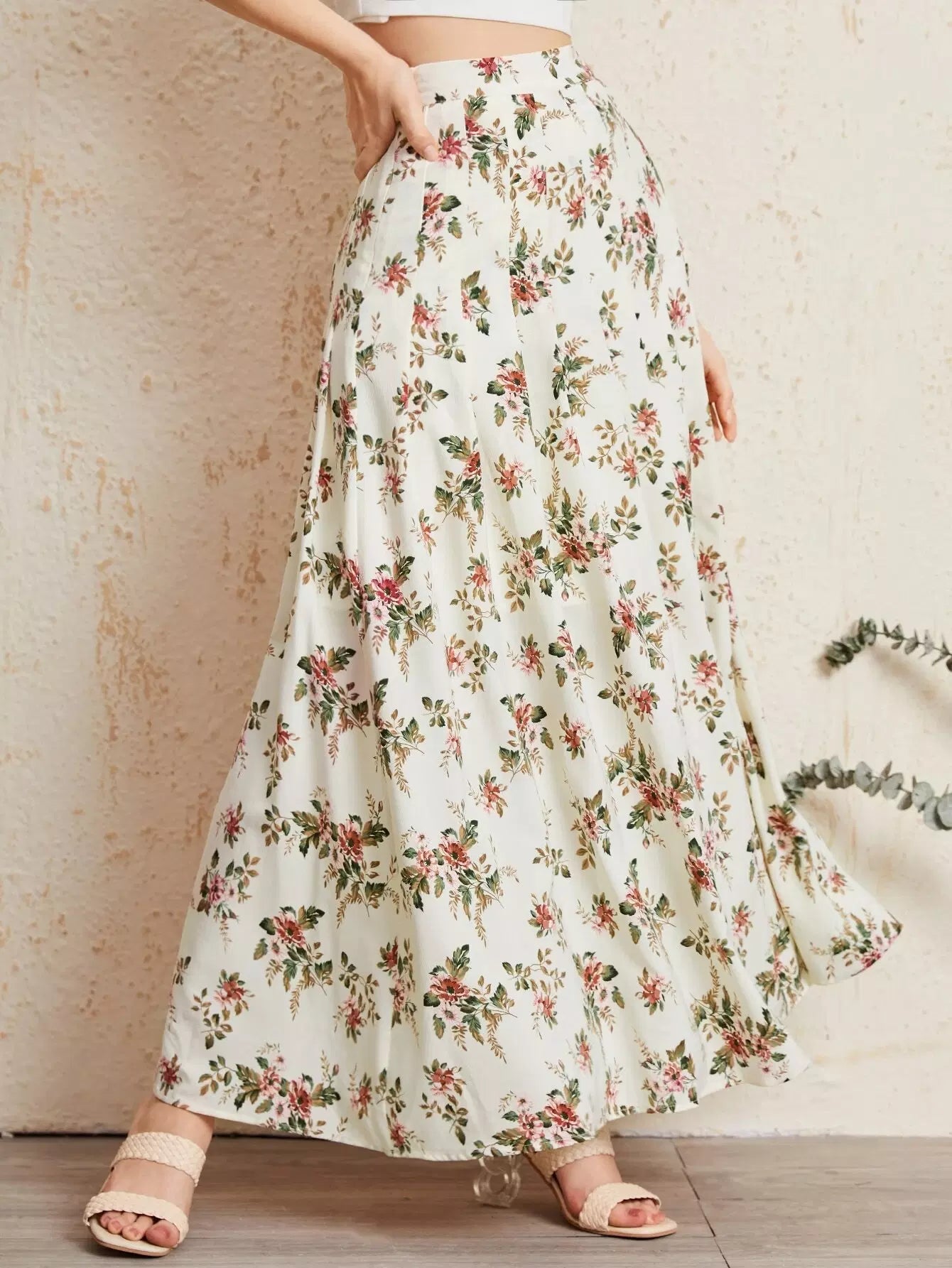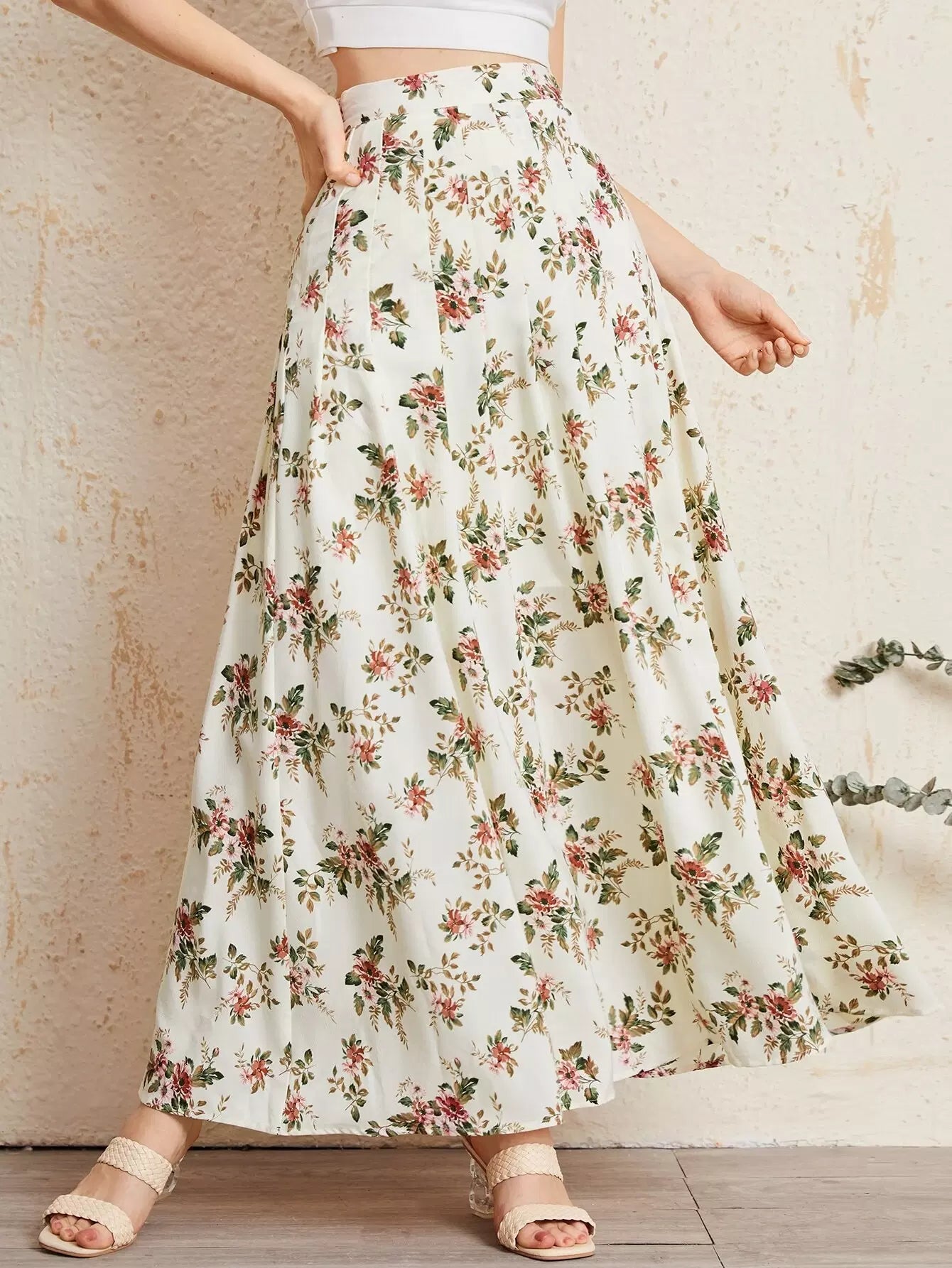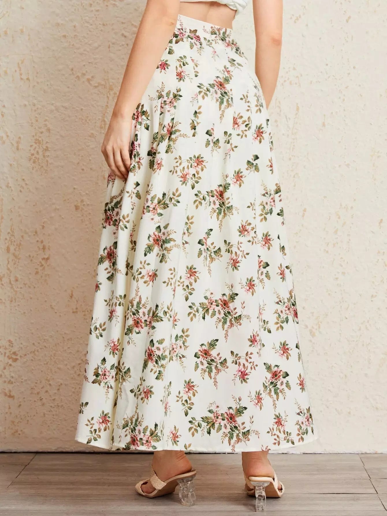 تنورة واسعة مزينة بالزهور