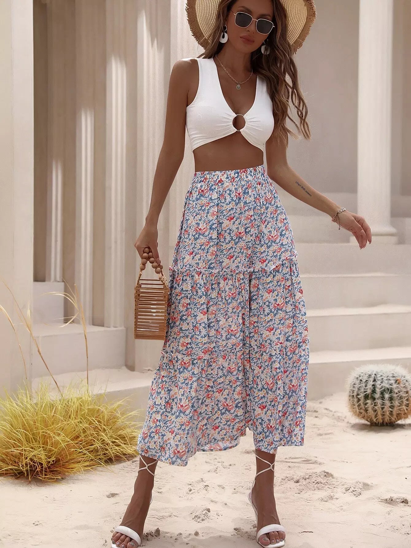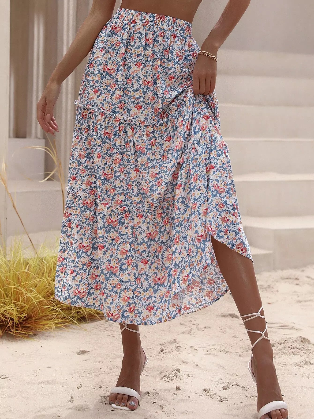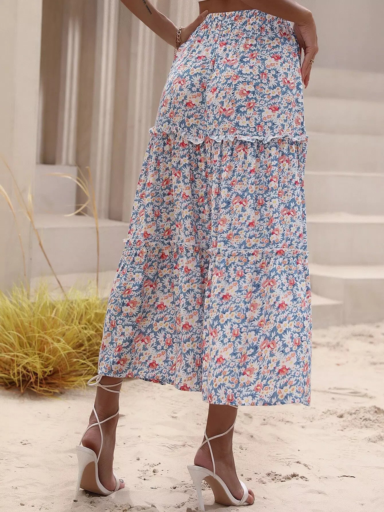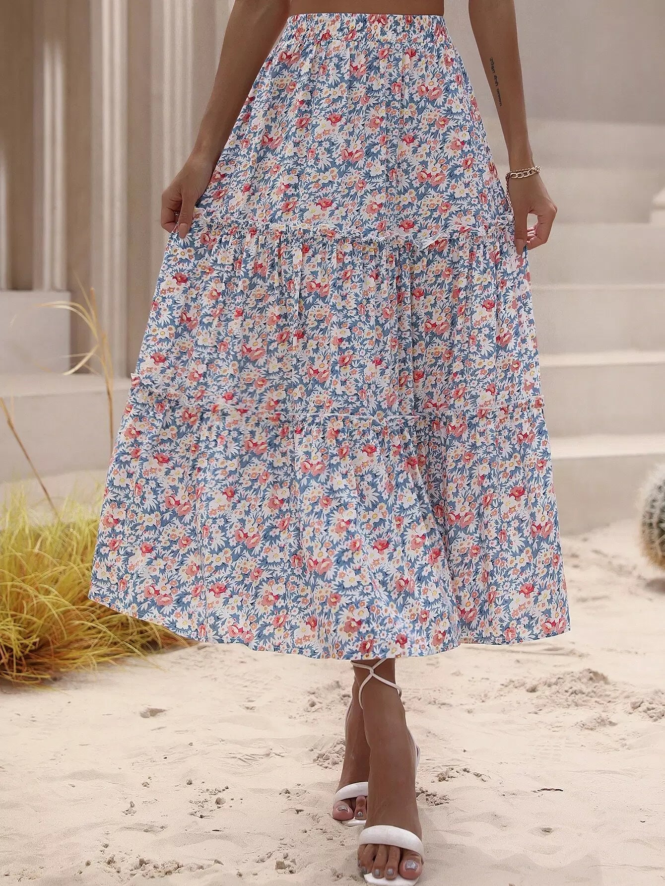 تنورة مزينة بطبعات زهور مزركشة بالكامل