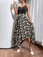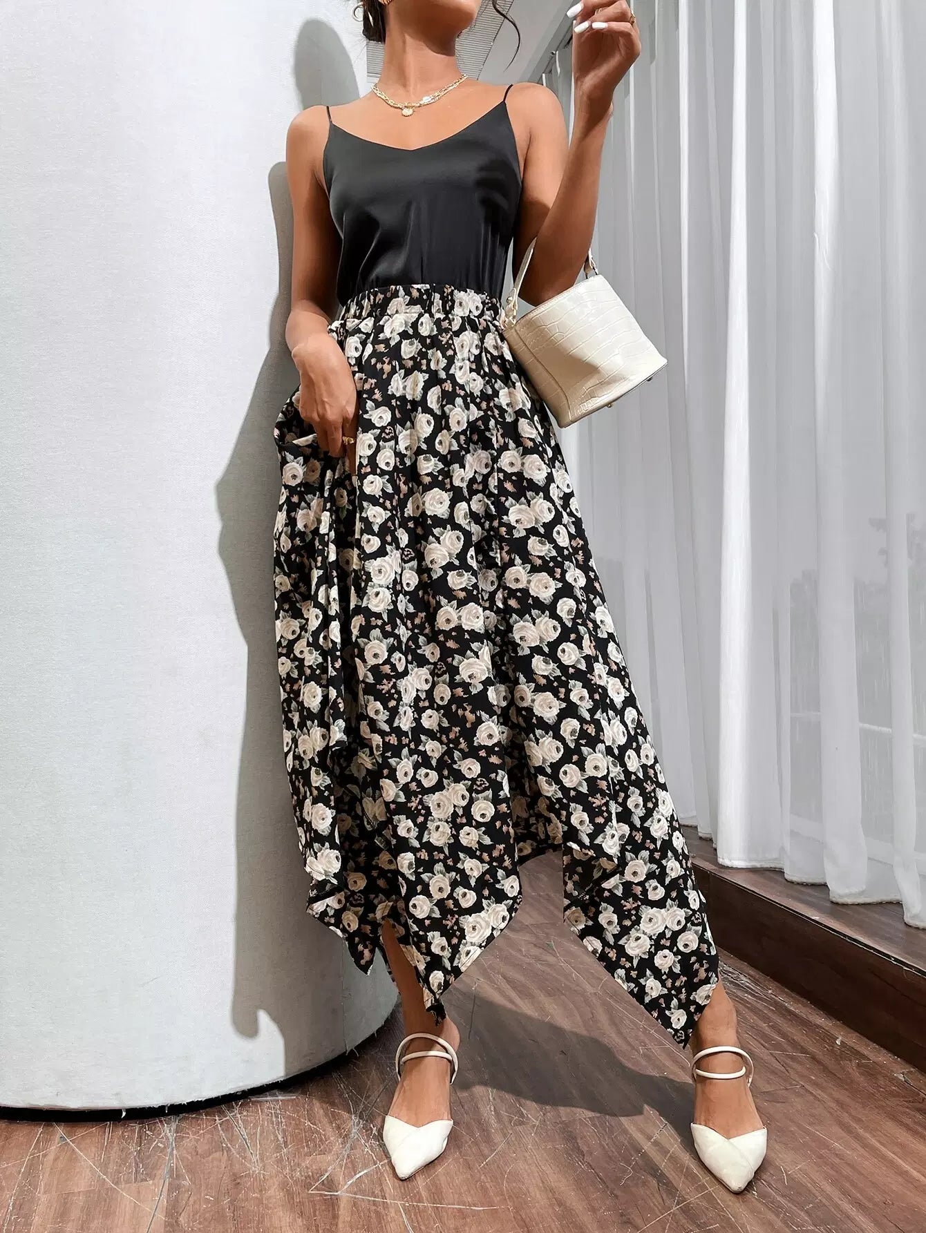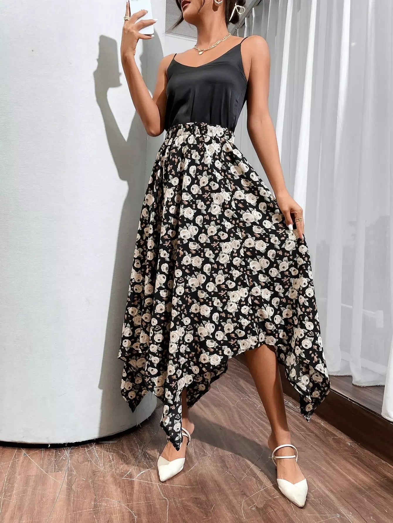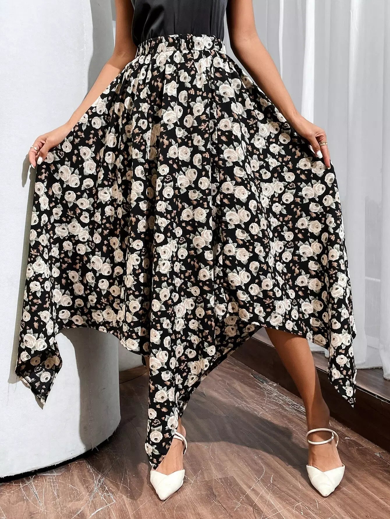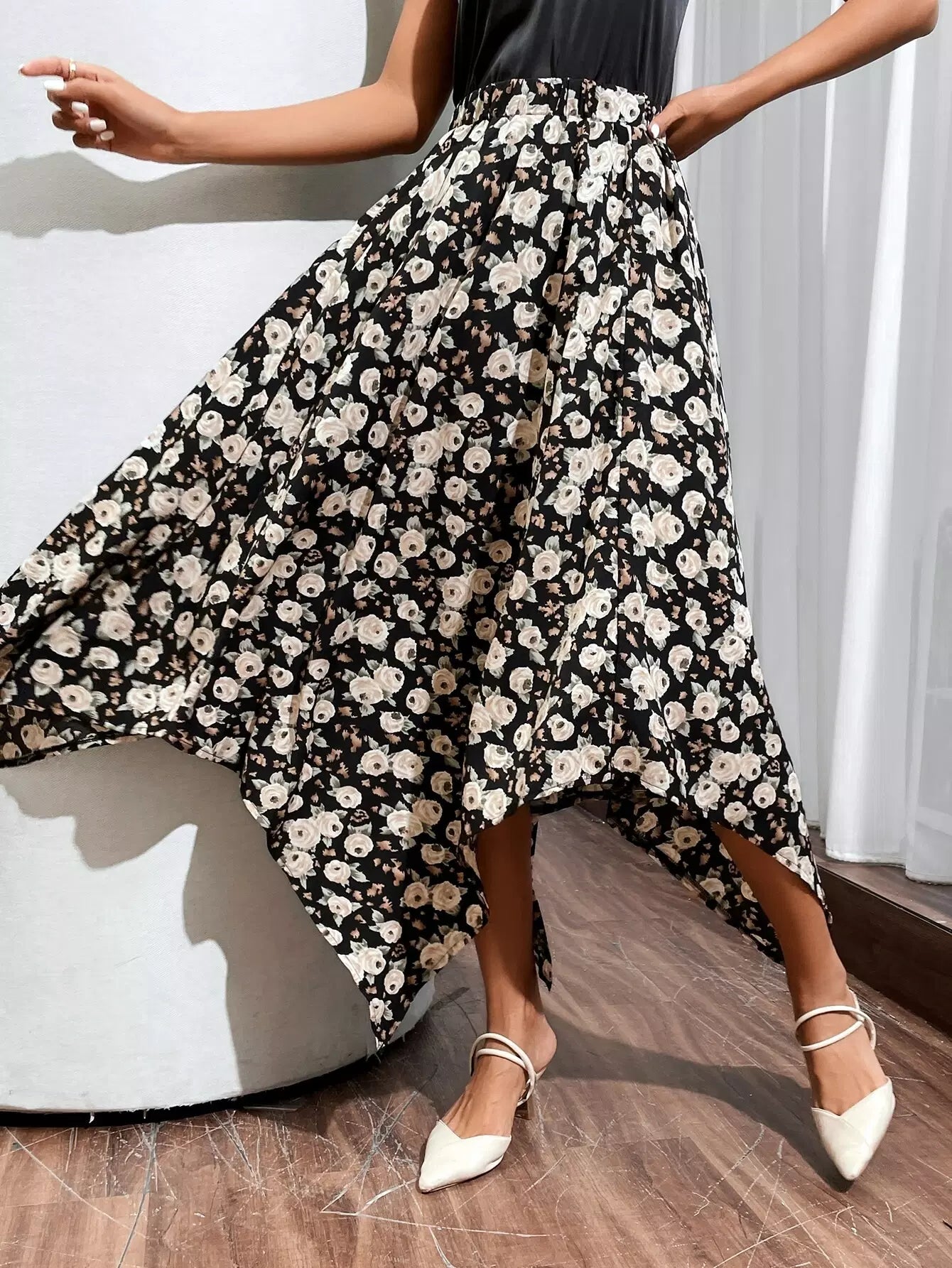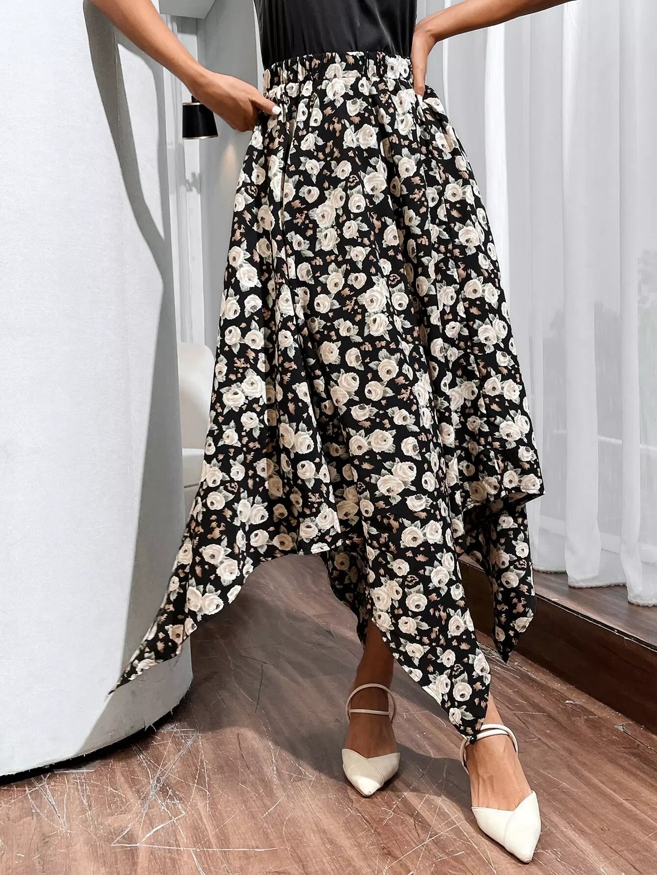 تنورة بطبعة زهور مطبوعة بالكامل بحاشية هانكي