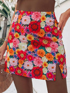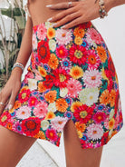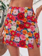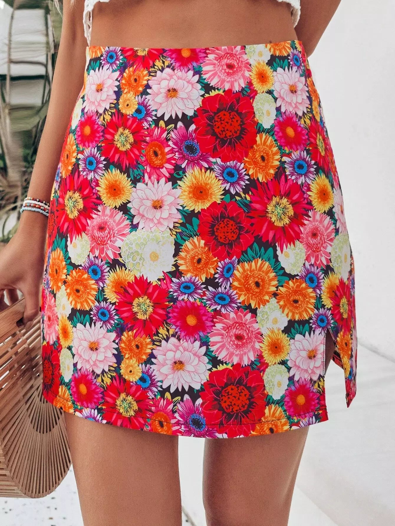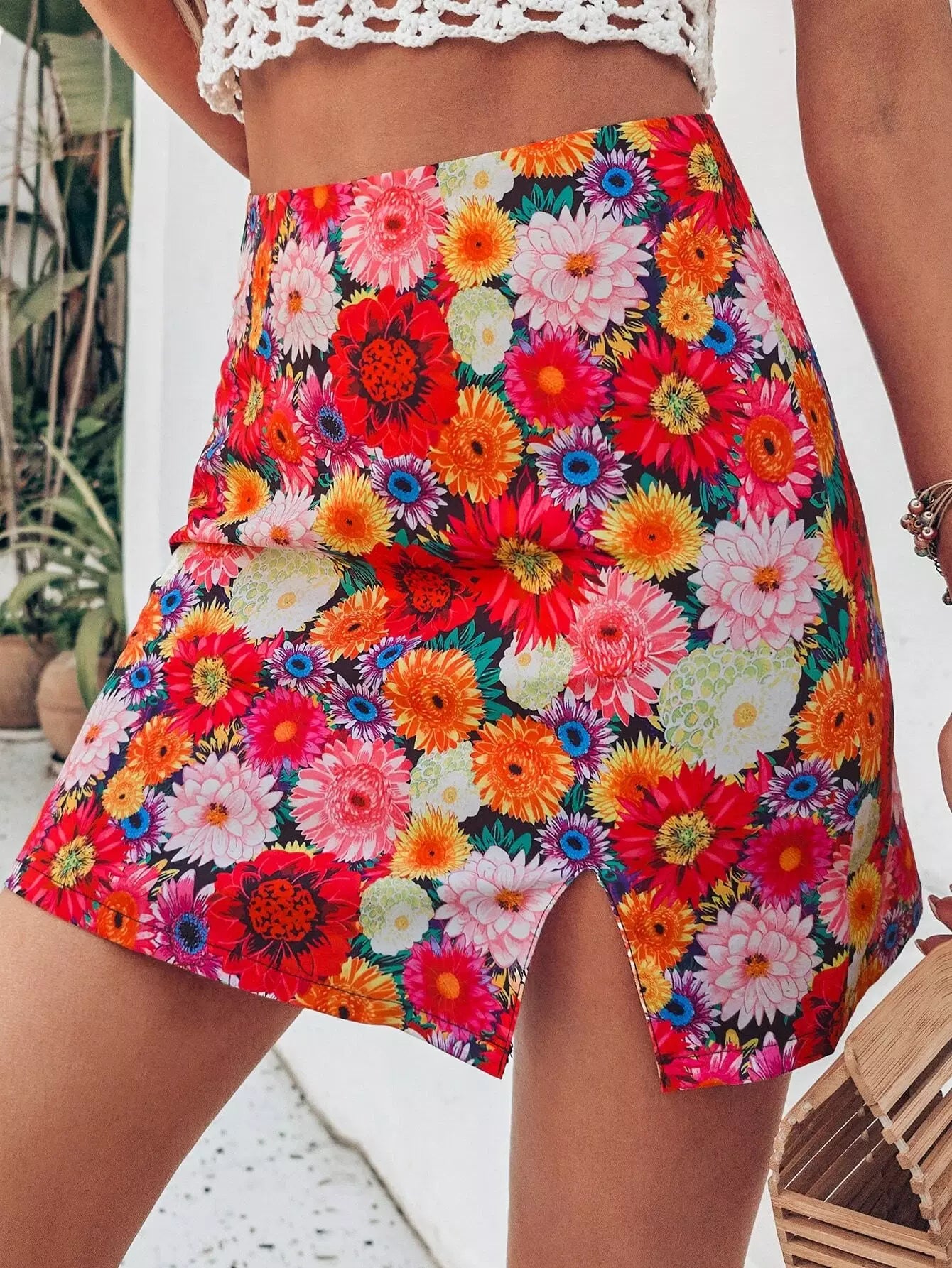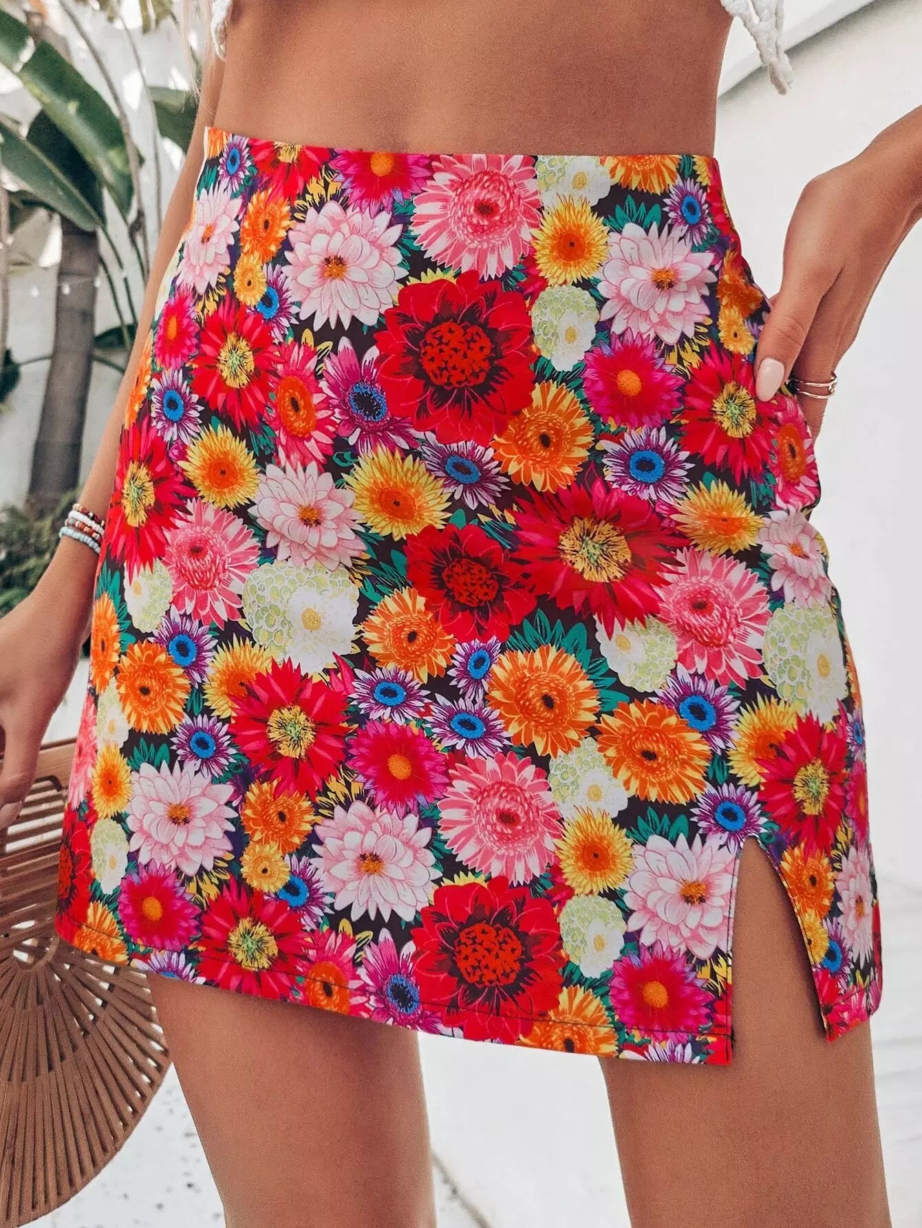 تنورة بطبعة زهور منقسمة الحواف بالكامل
