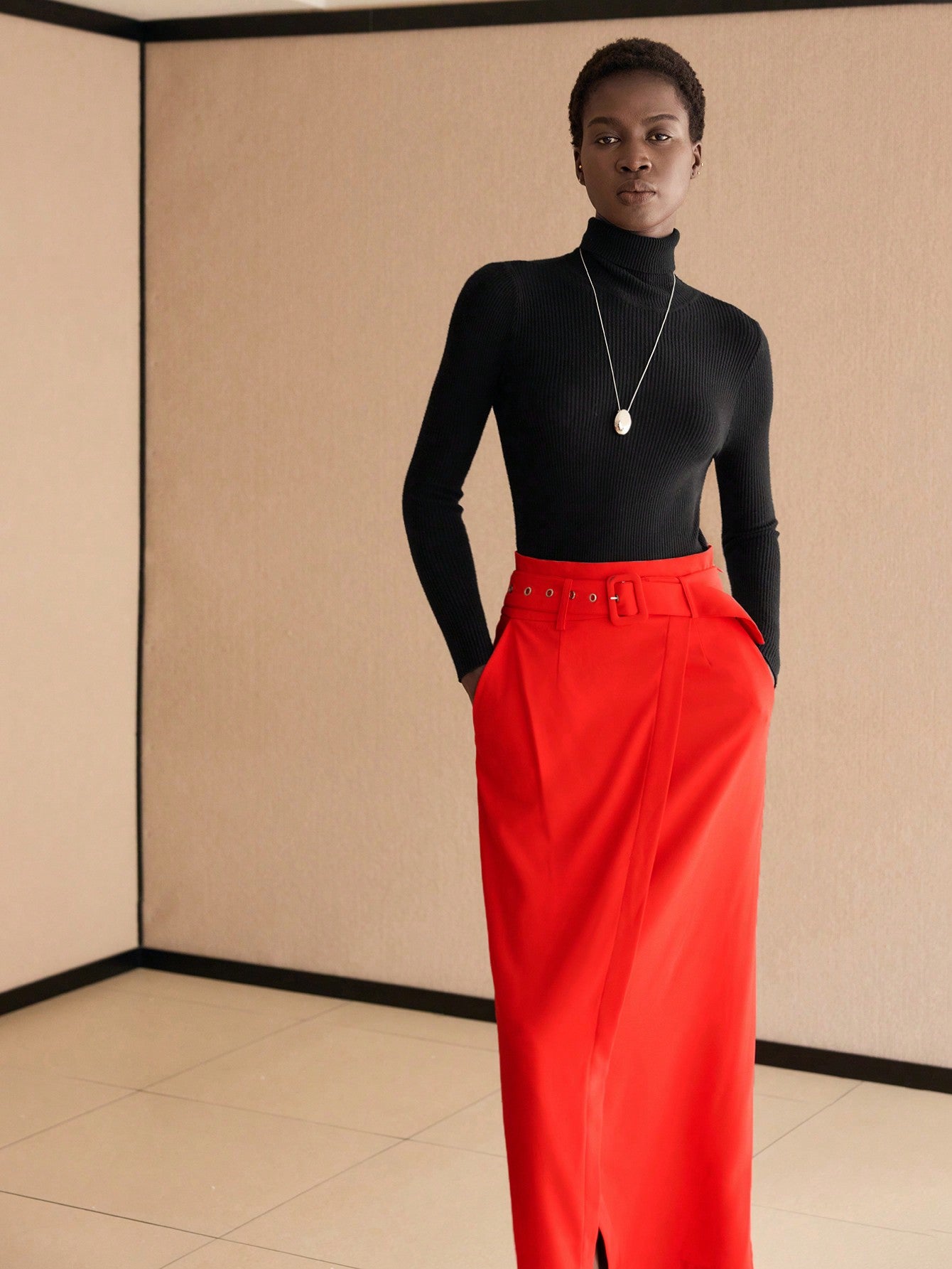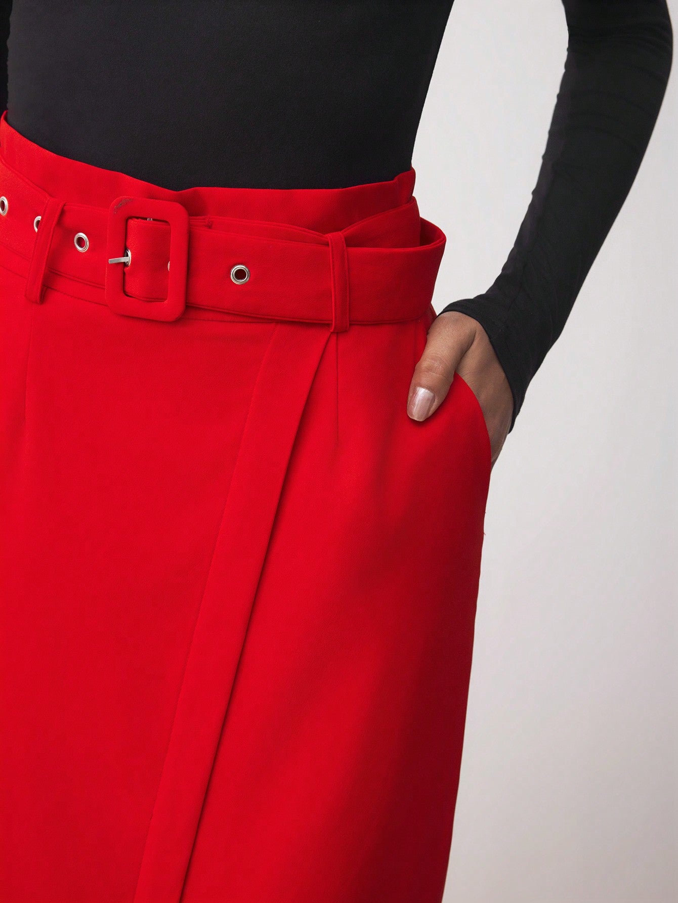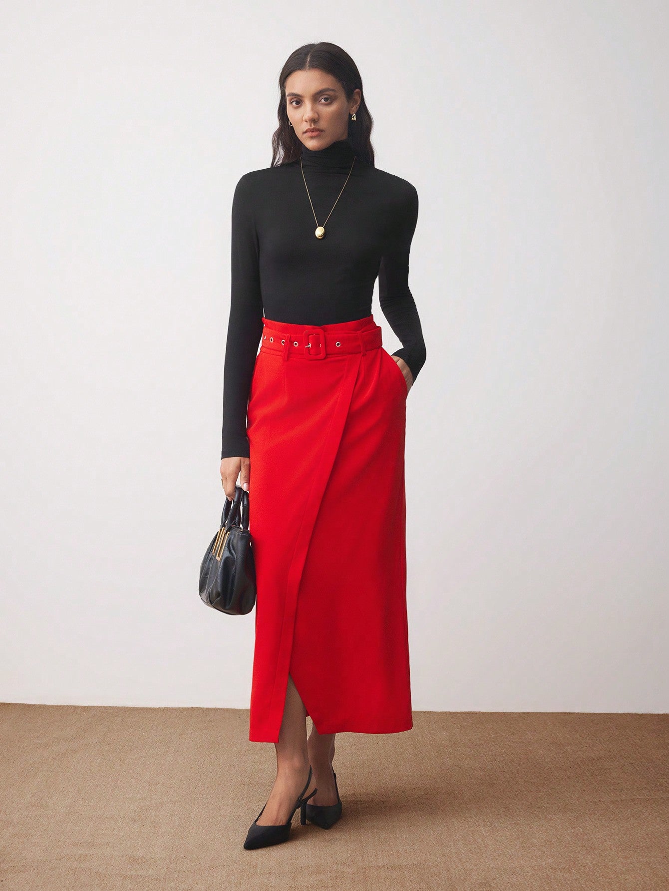 women BizChic Women's Elegant Wrap-Style Skirt For Commuting Basic Top Fall Women Outfits