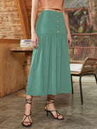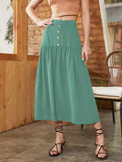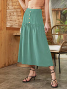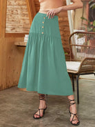 تنورة بخصر طبيعي بتفاصيل الأزرار
