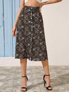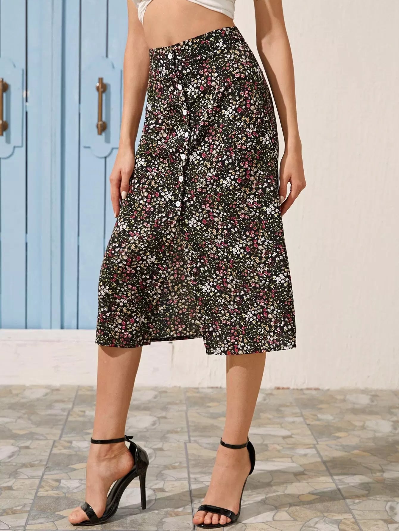 تنورة مستقيمة مزينة بأزرار أمامية بأزرار زهرية مستقيمة