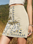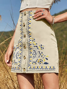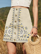 تنورة مطرزة بأزرار أمامية مطرزة بالزهور