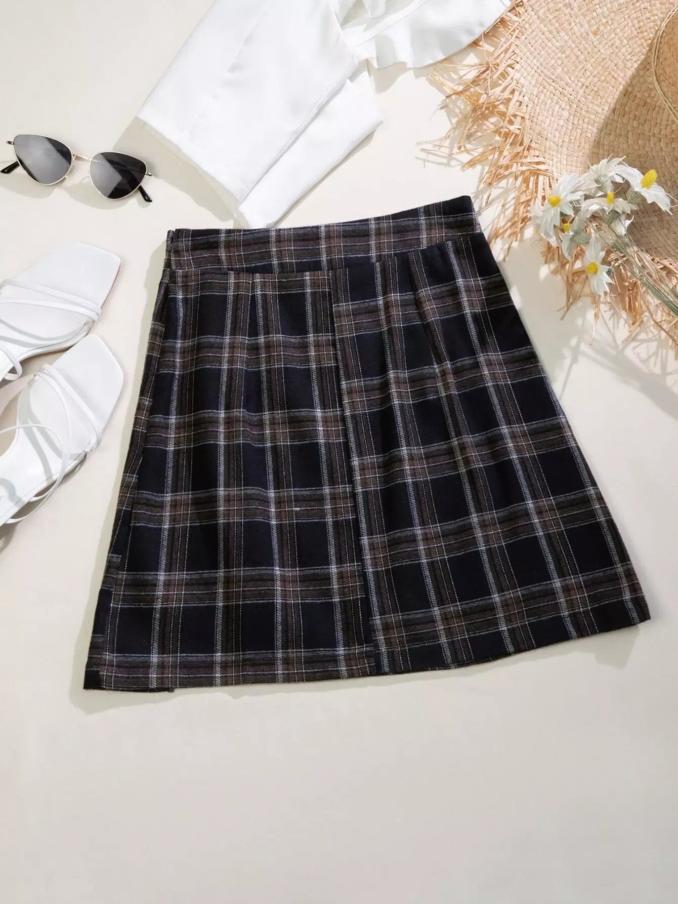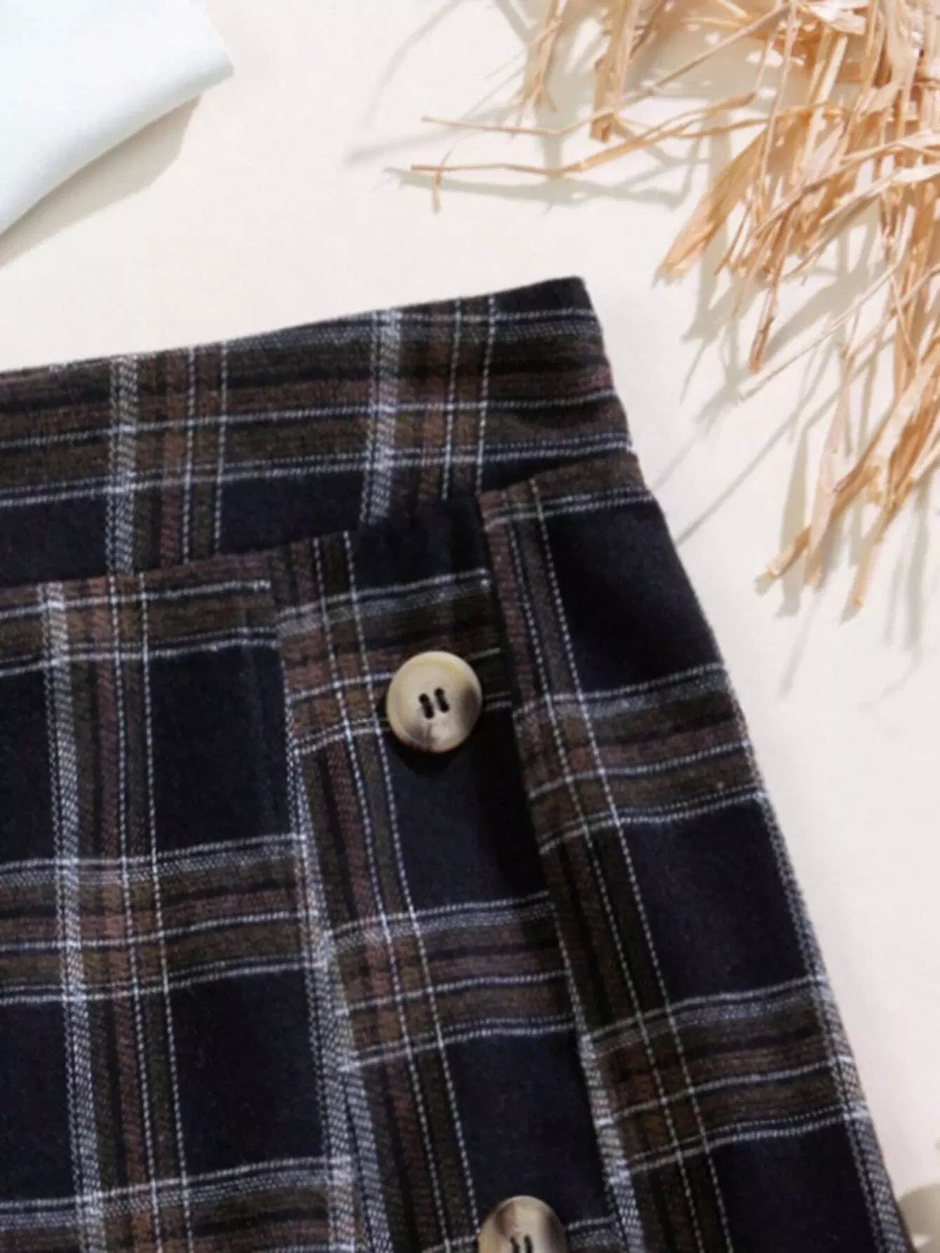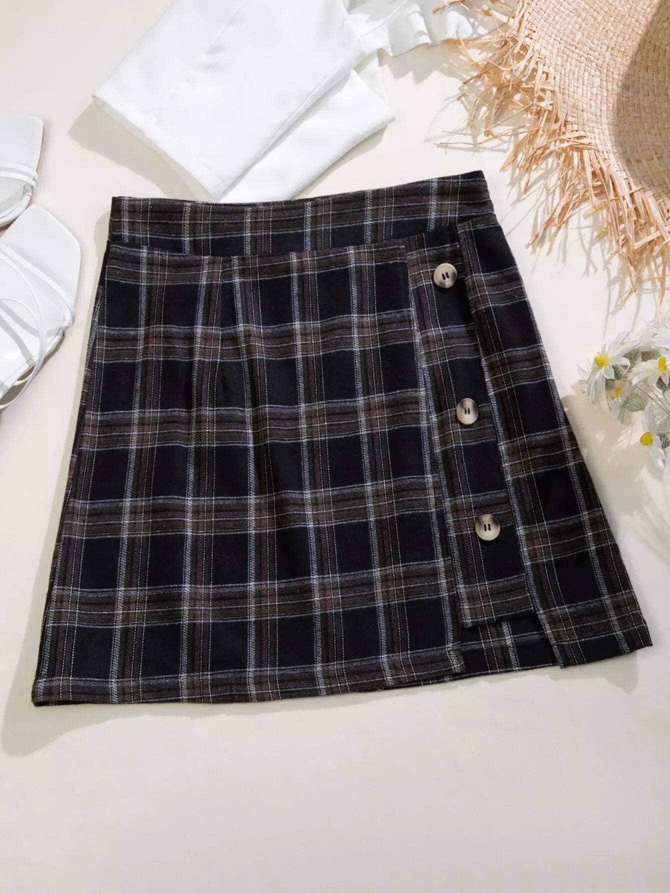 تنورة بأزرار أمامية من الترتان بحافة غير متناظرة
