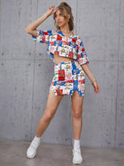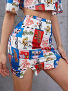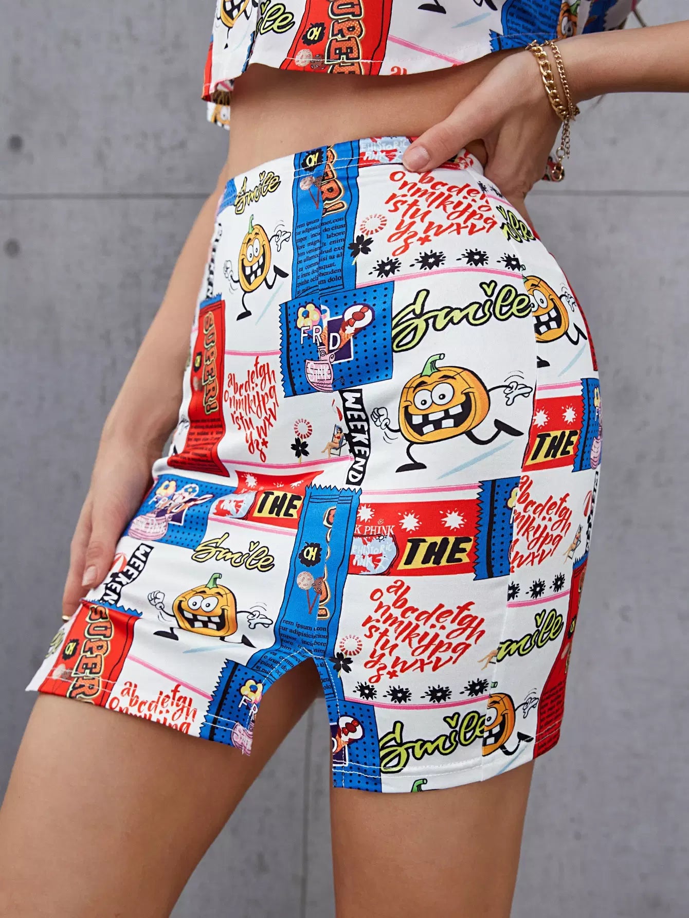تنورة منقسمة بطبعات كرتونية ورسومات جرافيك