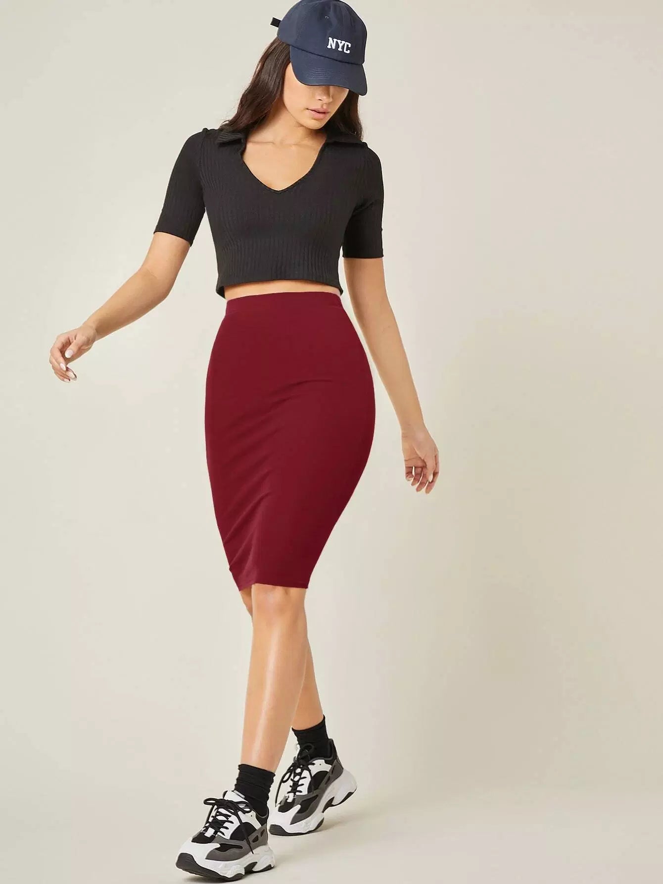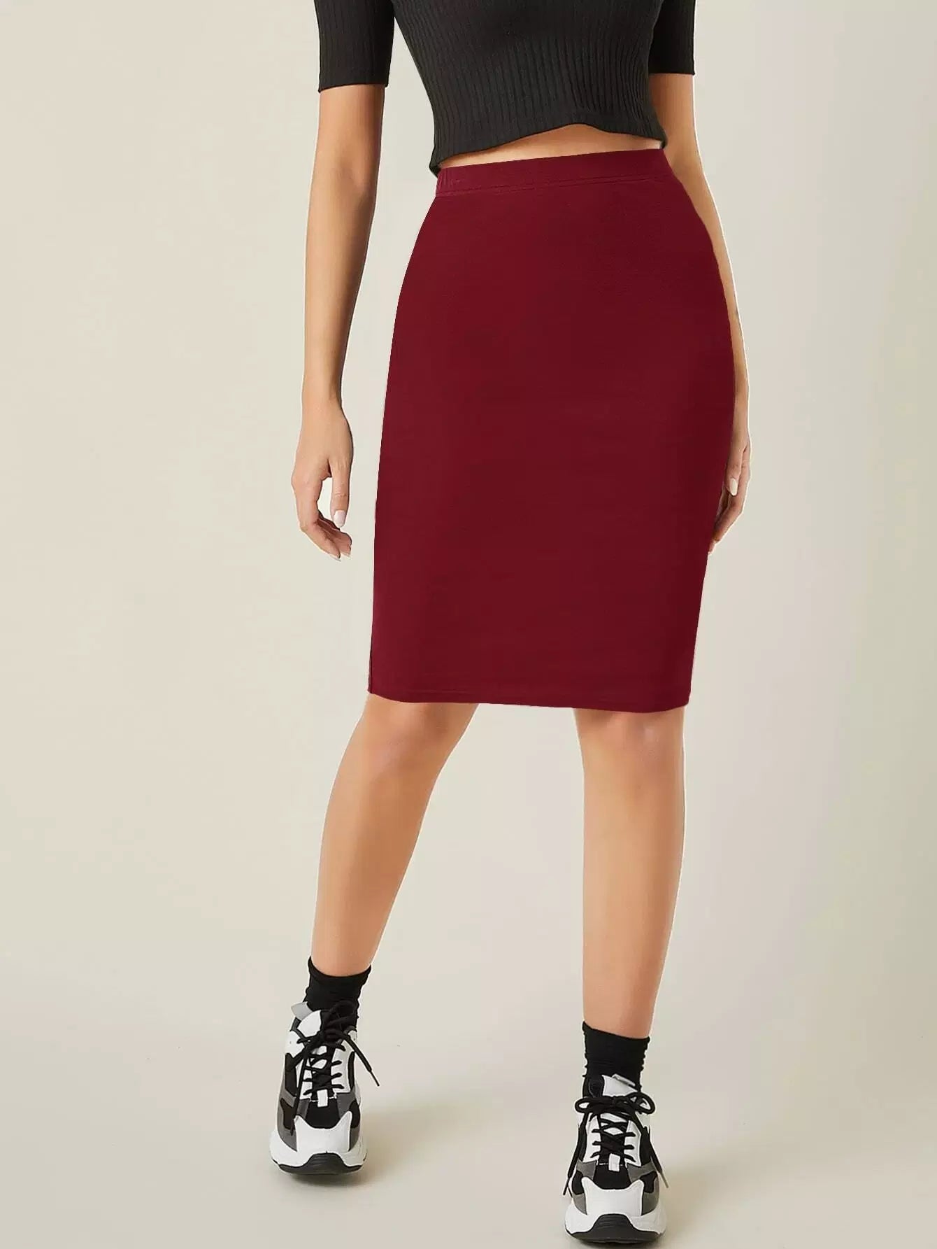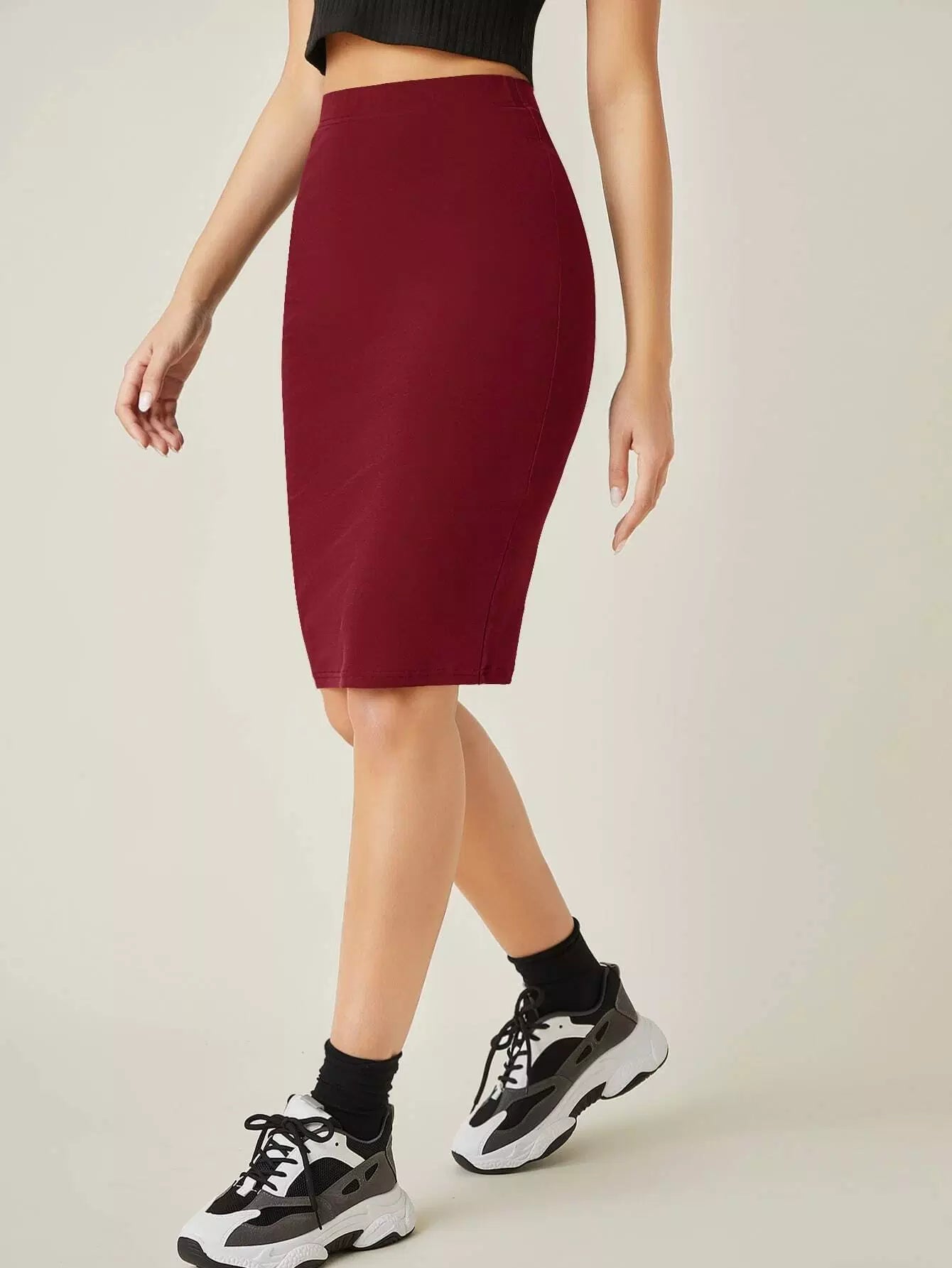 تنورة قطنية عالية الخصر سادة عالية الخصر