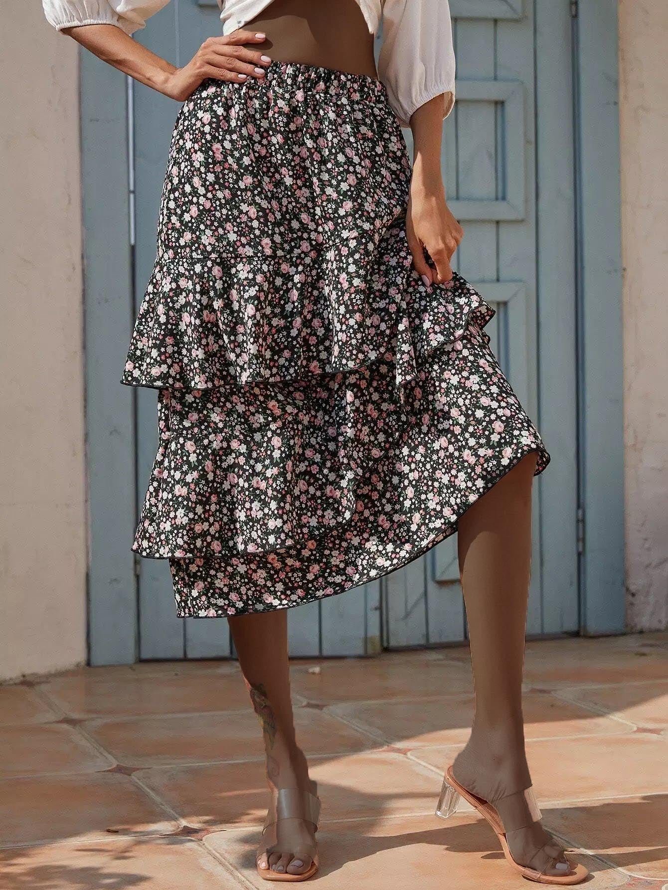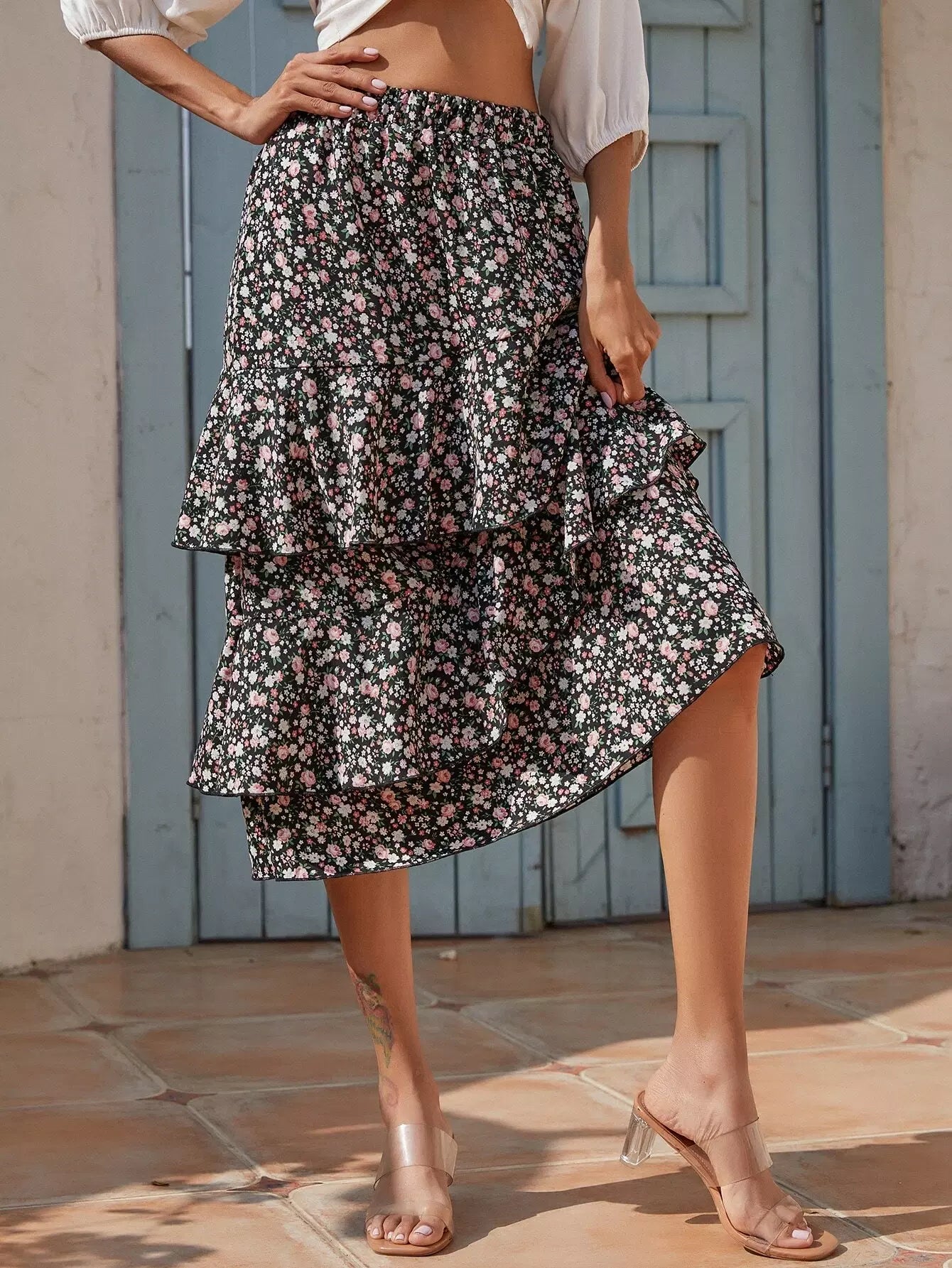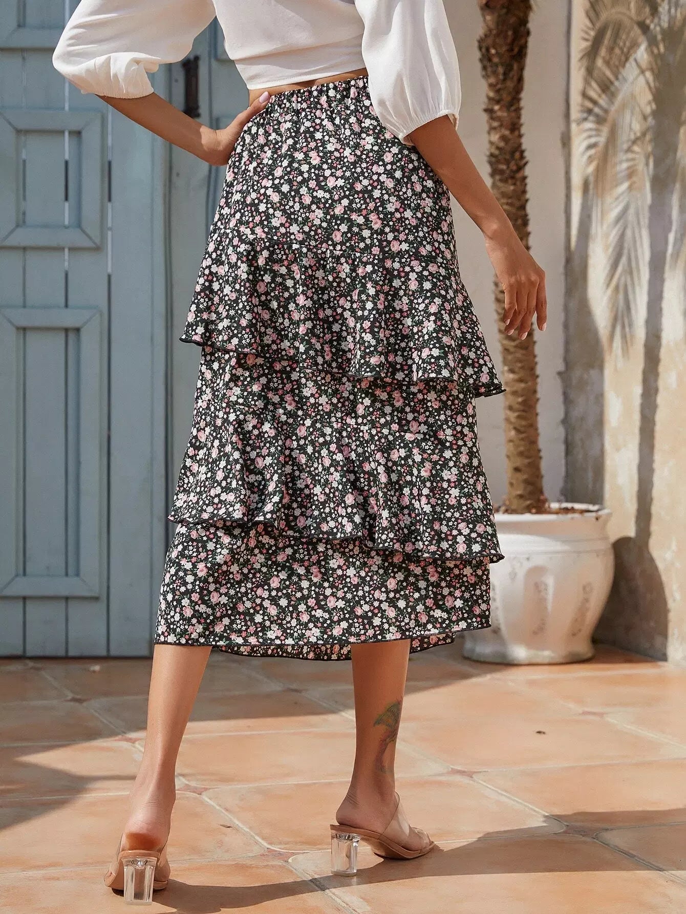 تنورة ديتسي بطبقات زهرية ذات حواف زهرية