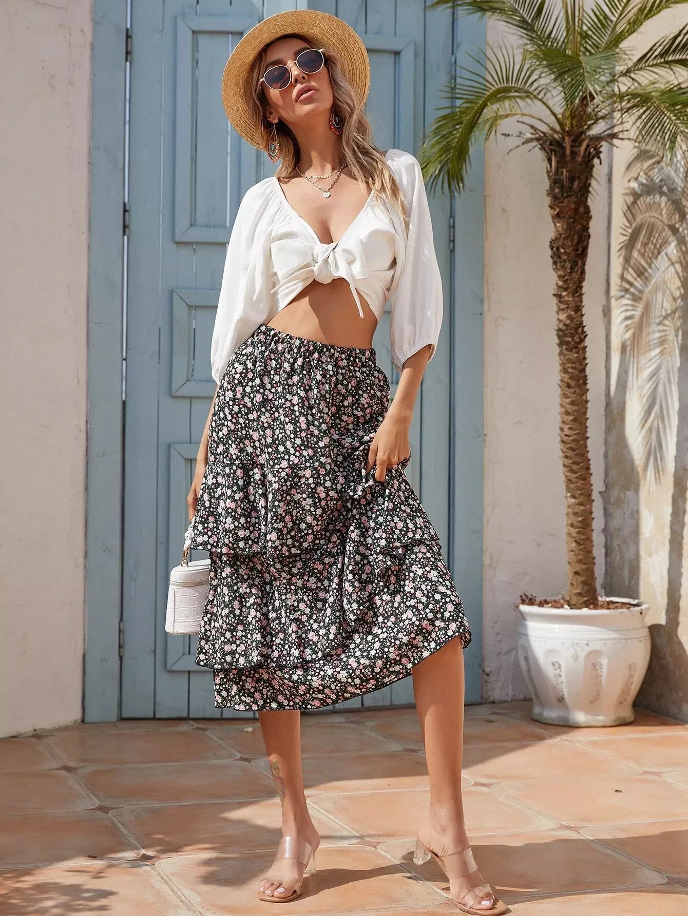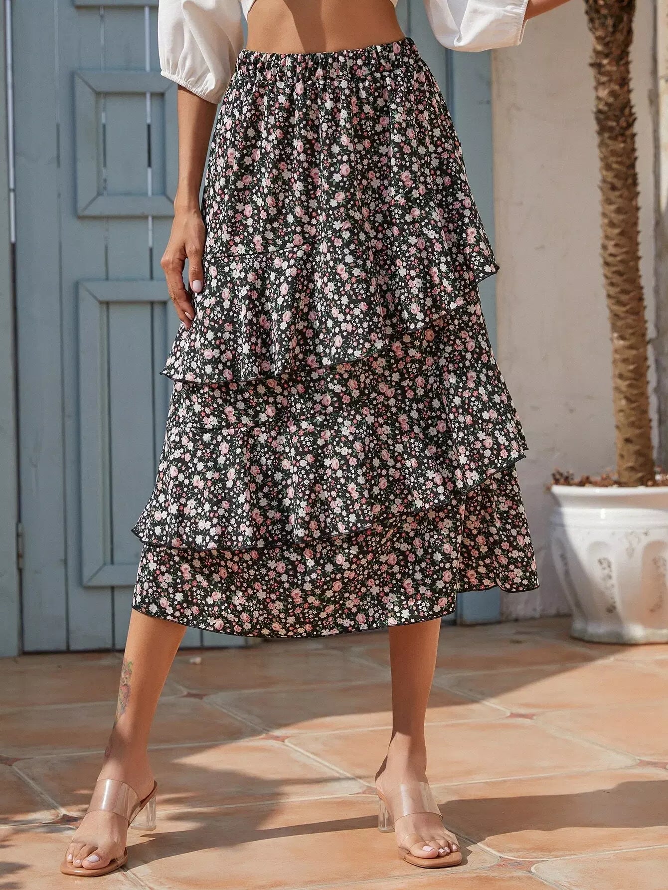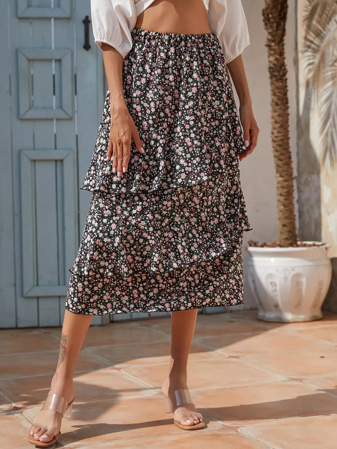 تنورة ديتسي بطبقات زهرية ذات حواف زهرية