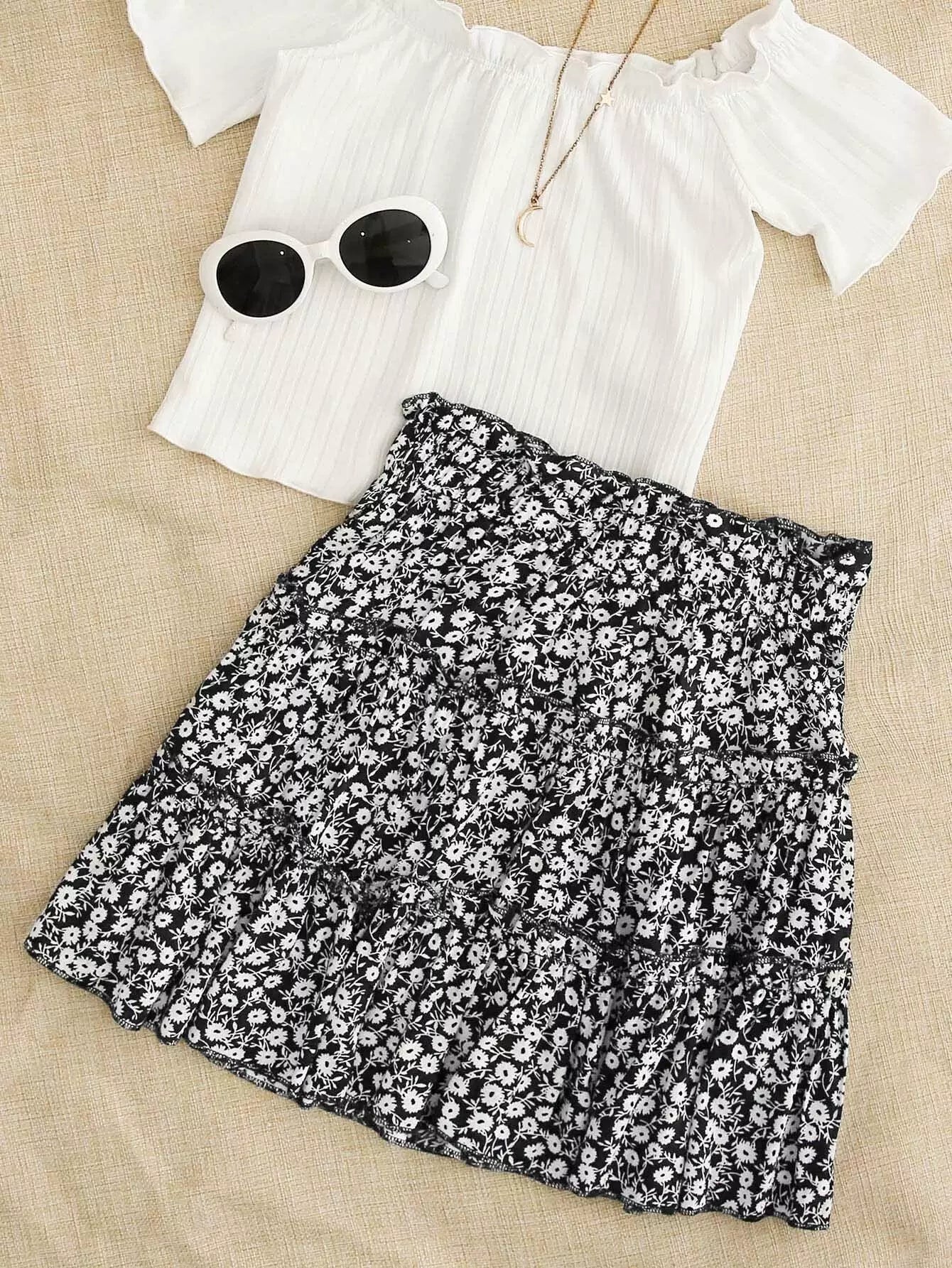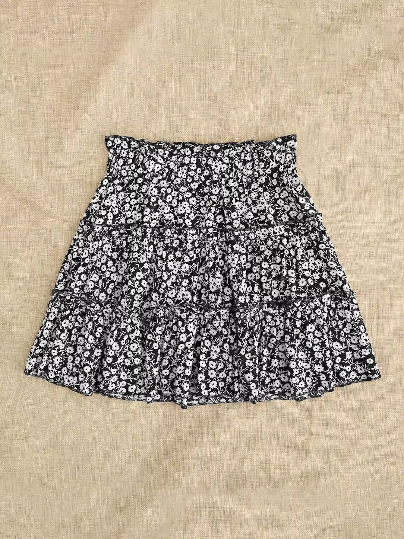 تنورة ديتسي بطبعة زهور مطبوعة على شكل كيس ورقي بخصر متعدد الطبقات