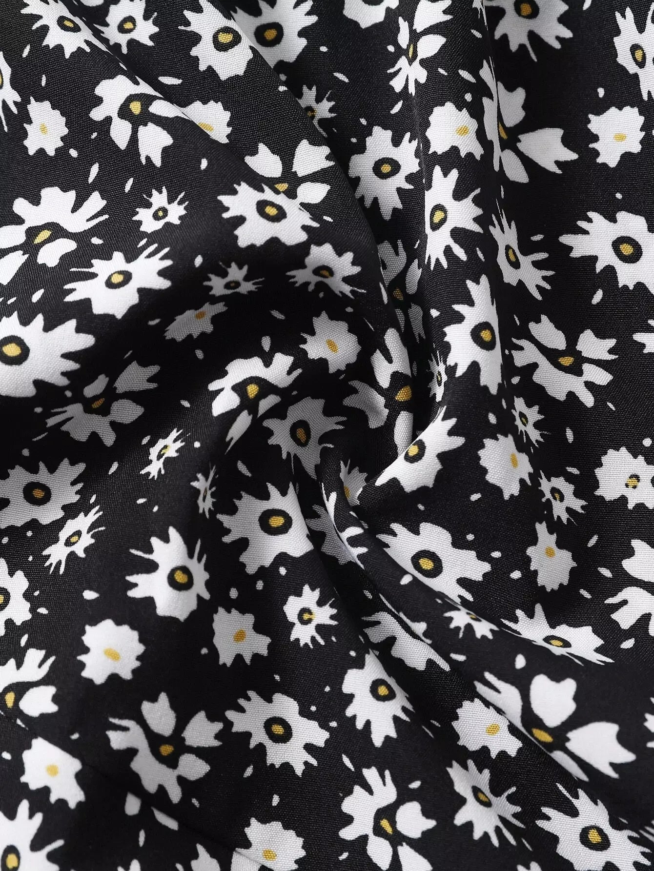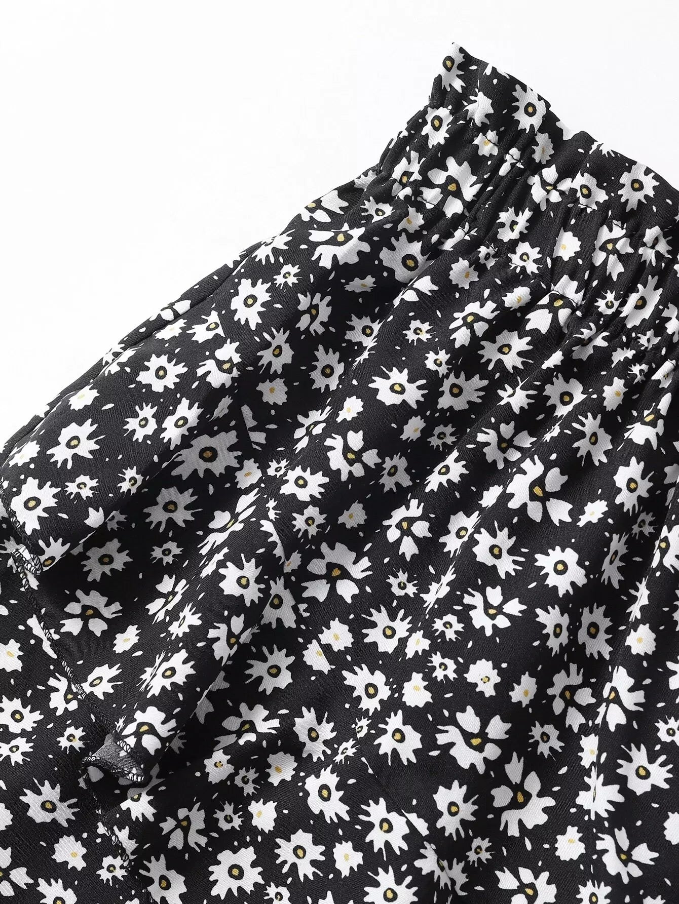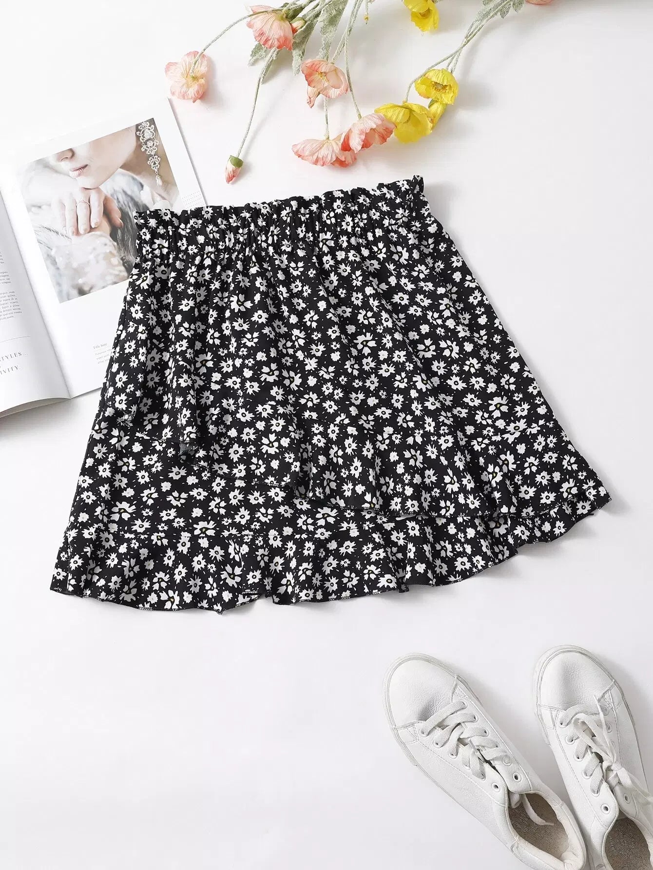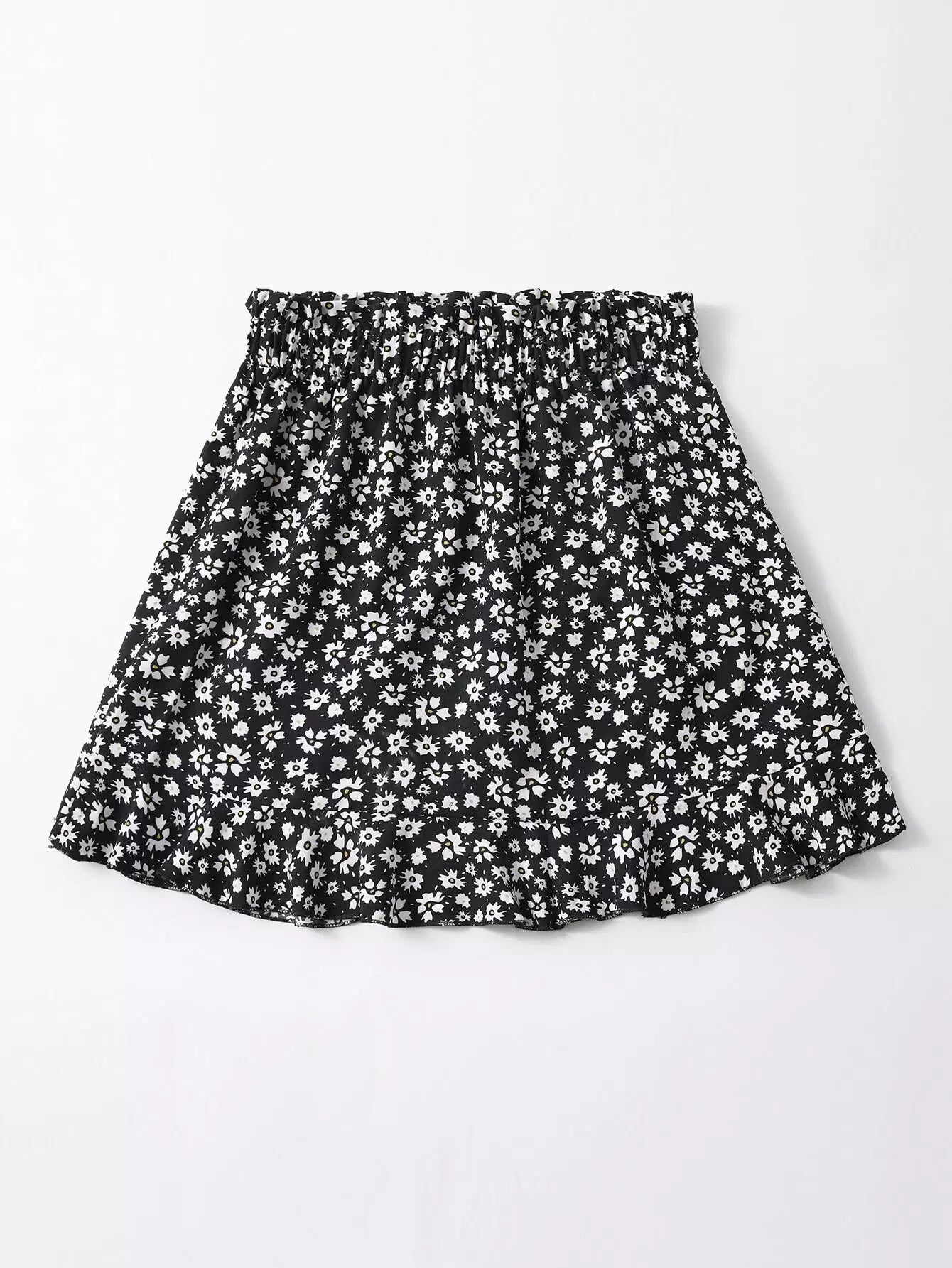 تنورة ديتسي ذات حافة مكشكشة مزينة بالورود على شكل حرف A
