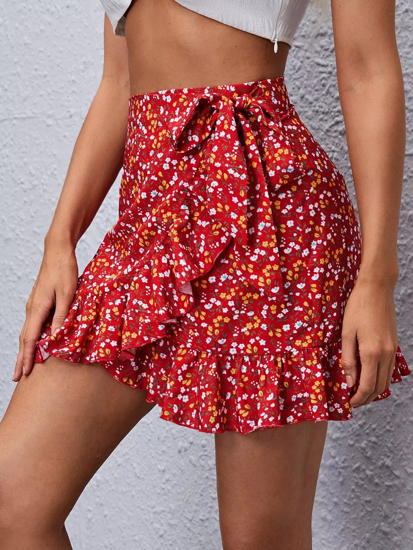 تنورة ديتسي مزينة بكشكشة ذات حواف مكشكشة على الجانب
