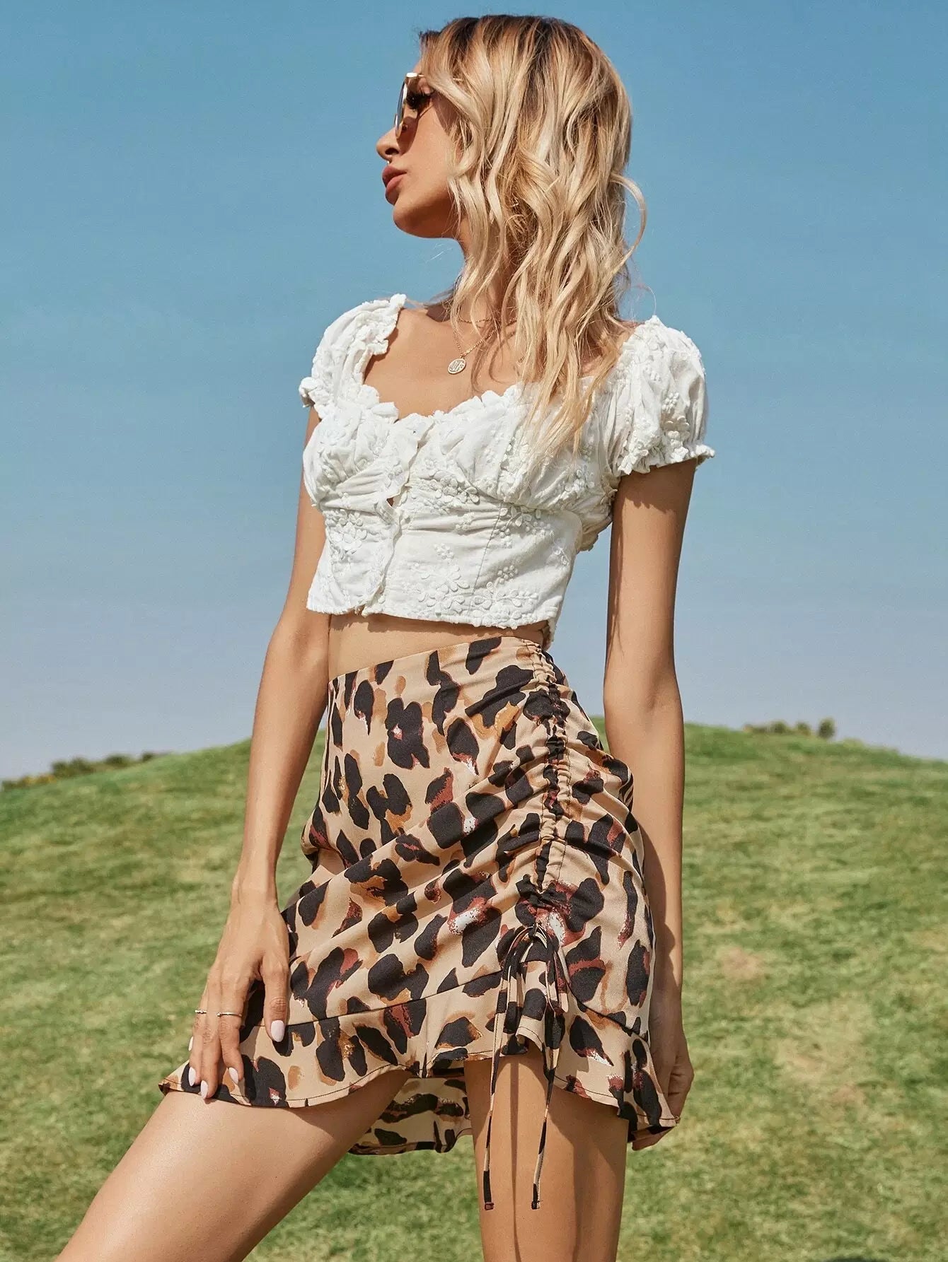 تنورة مطبوعة بأربطة جانبية بأربطة جانبية