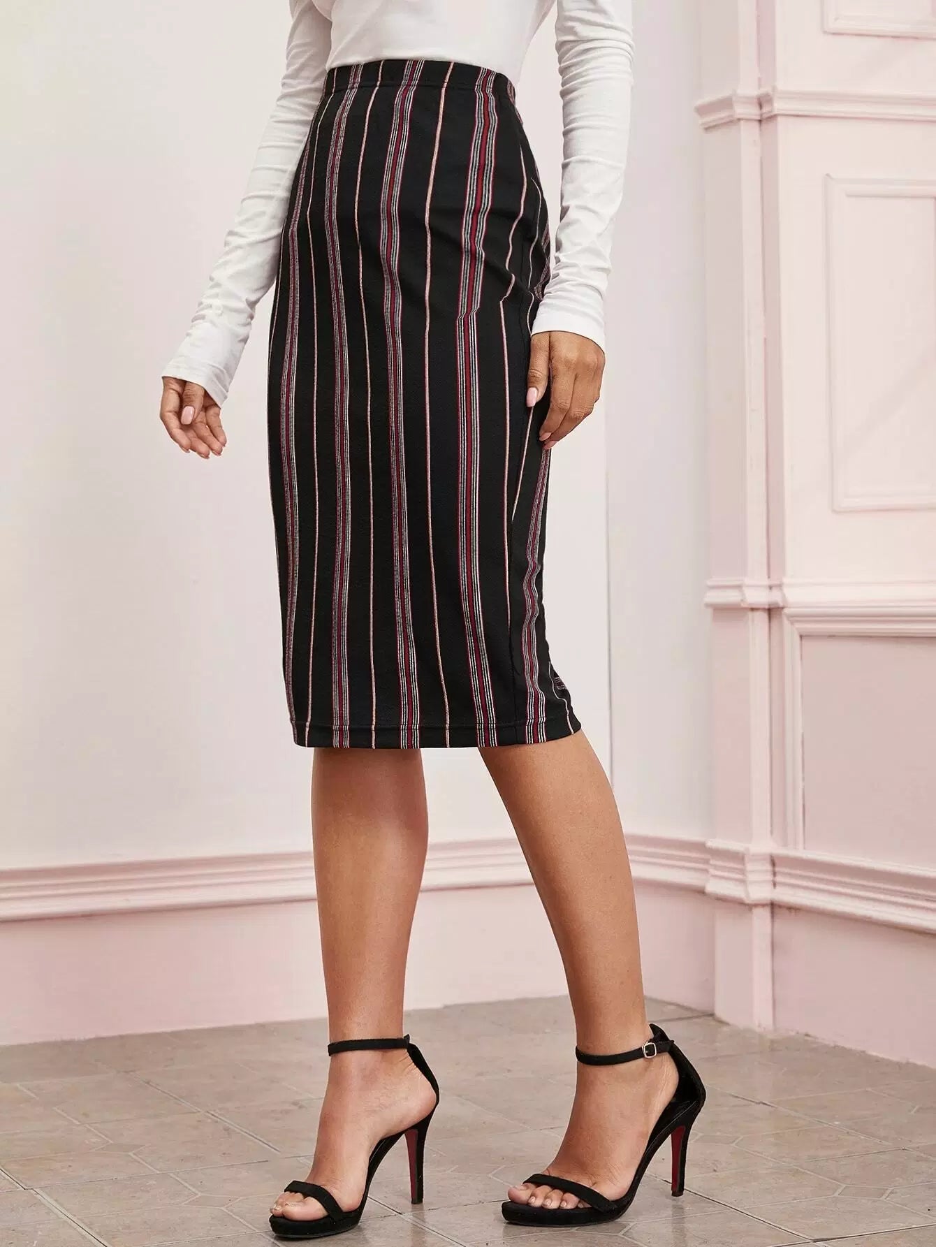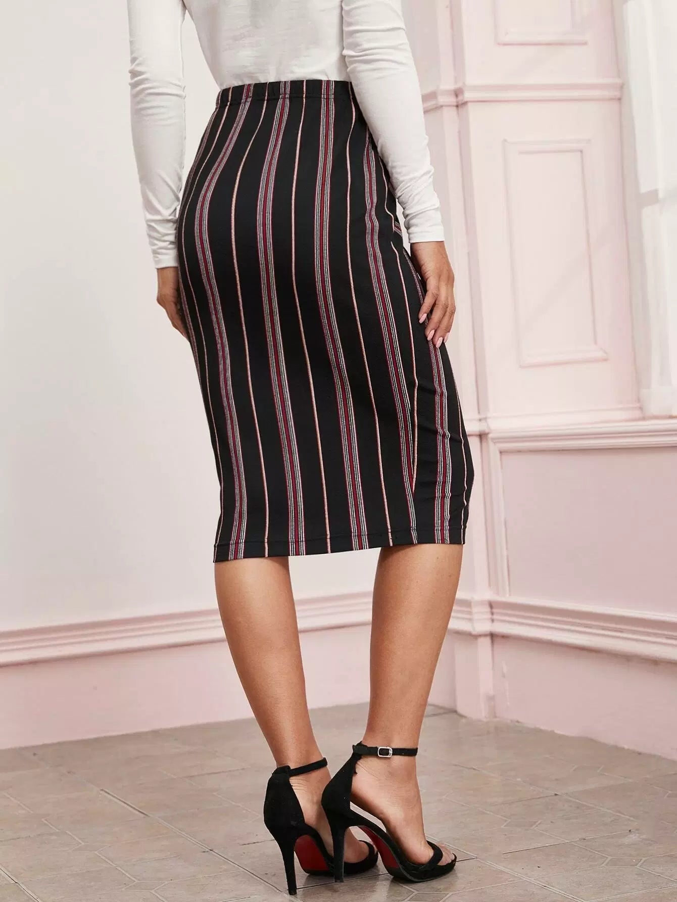 تنورة قلم رصاص مخططة بخصر مطاطي