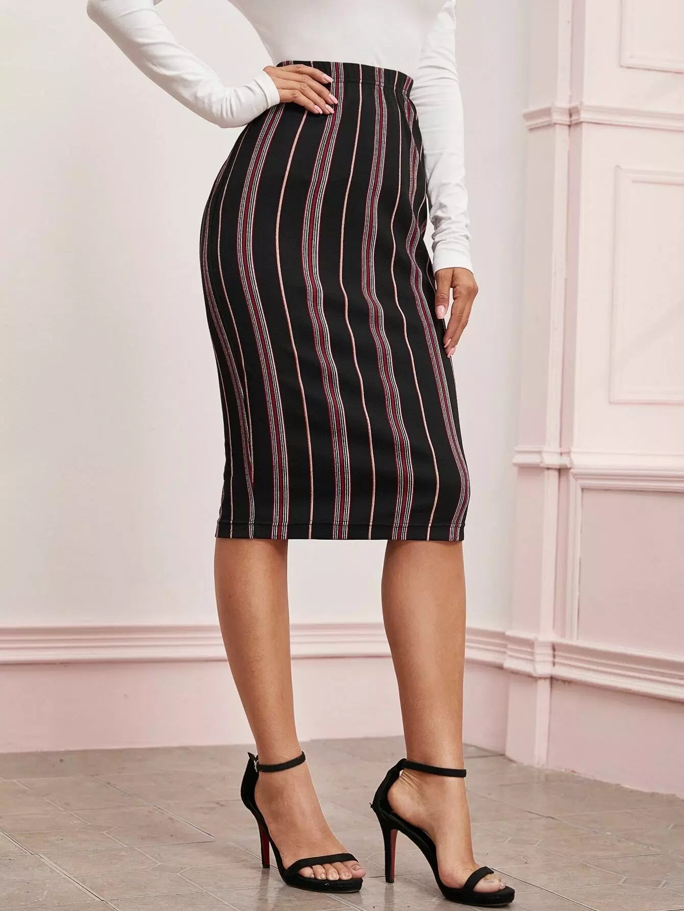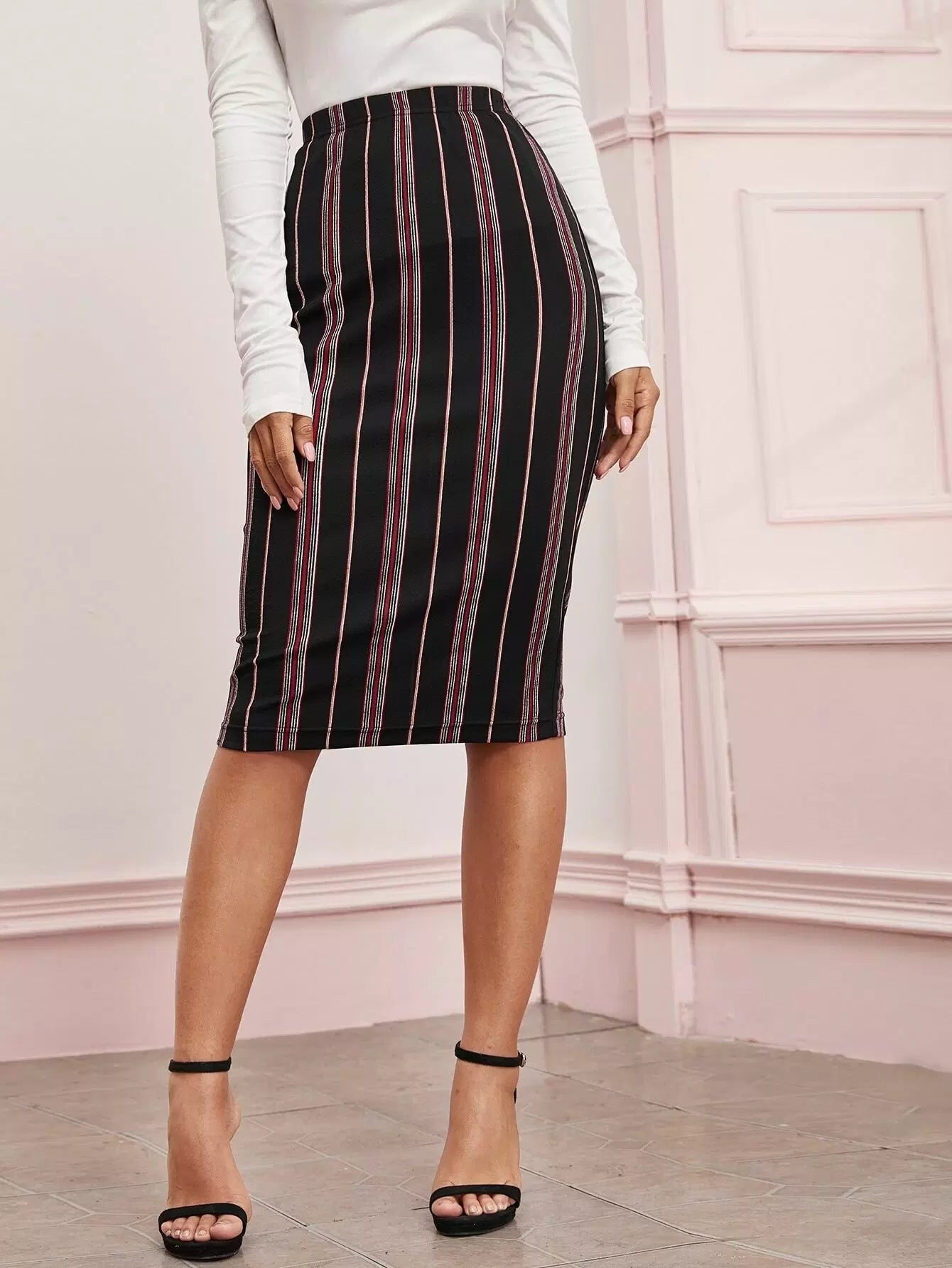 النساء - تنورة ضيقة مخططة بخصر مطاطي