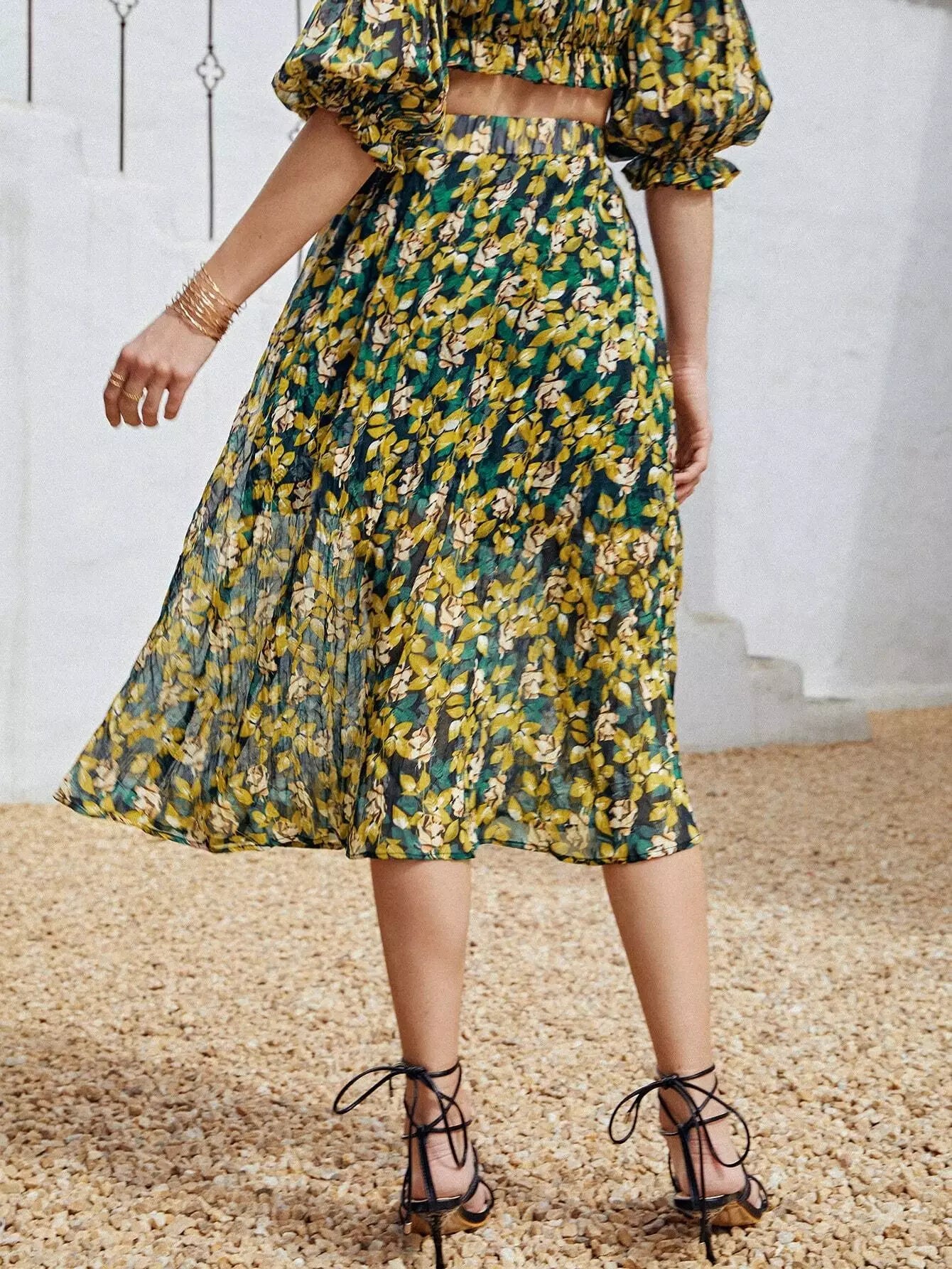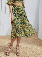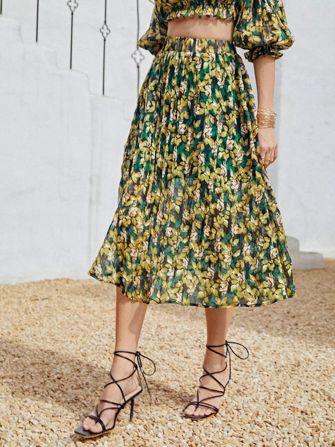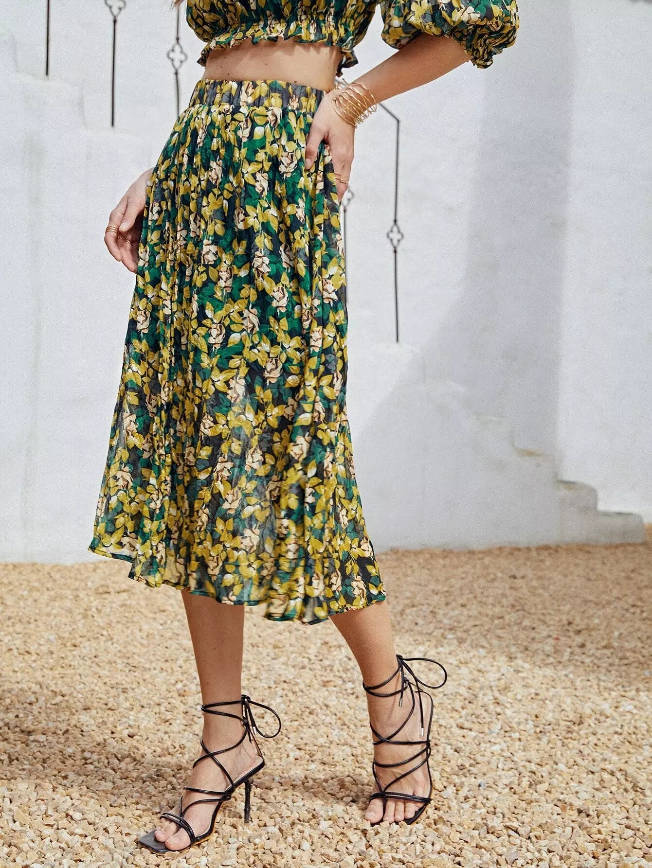 تنورة مطوية بخصر مطاطي مزينة بالزهور