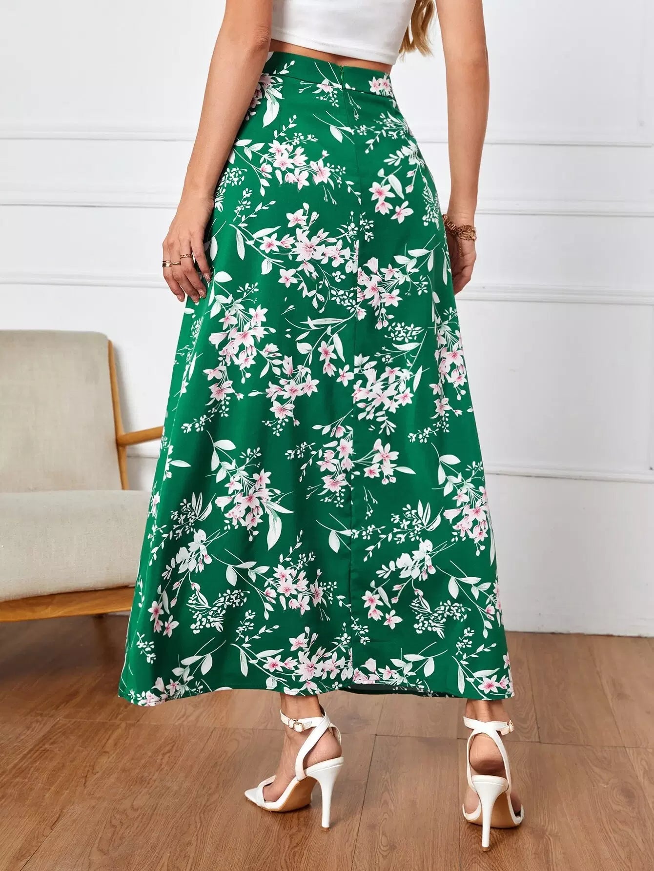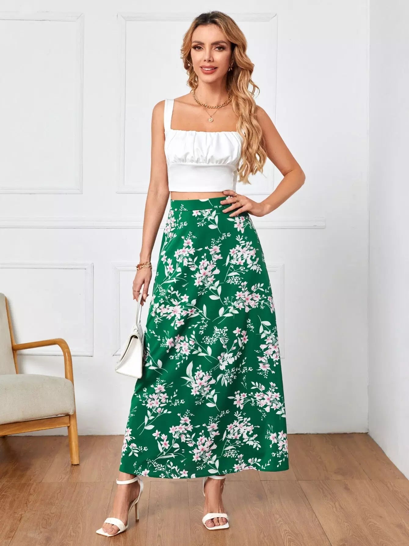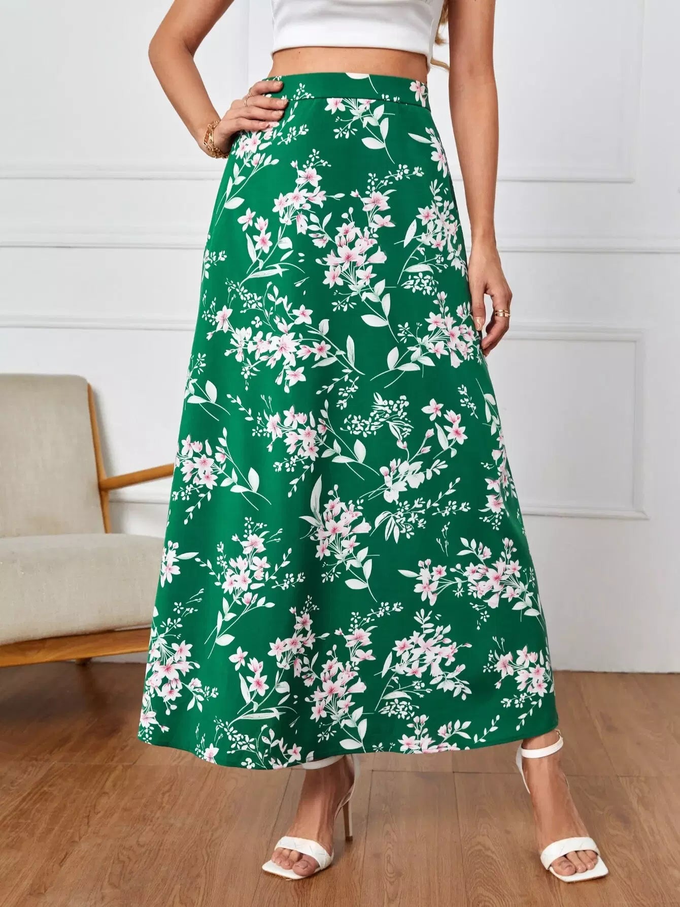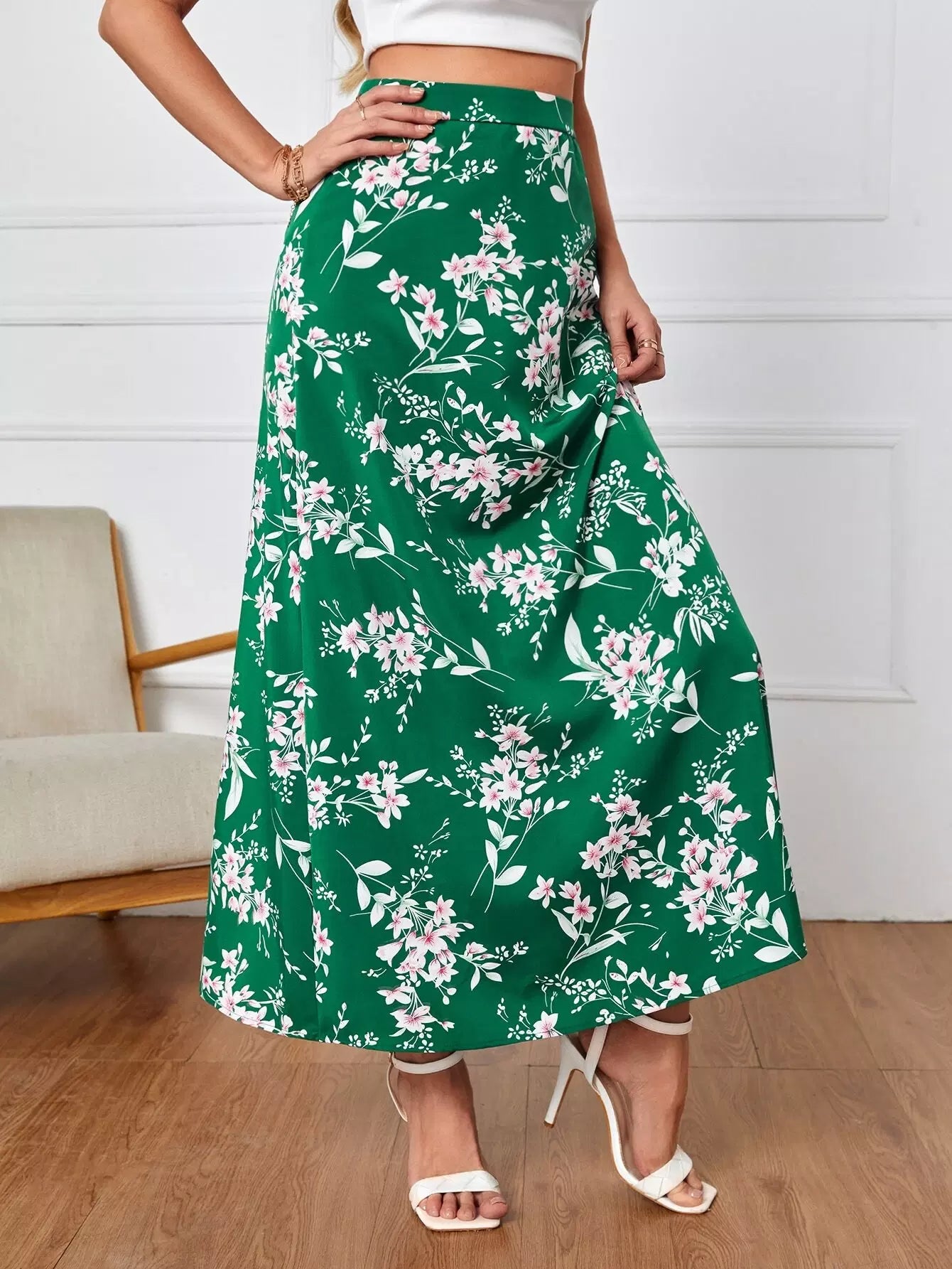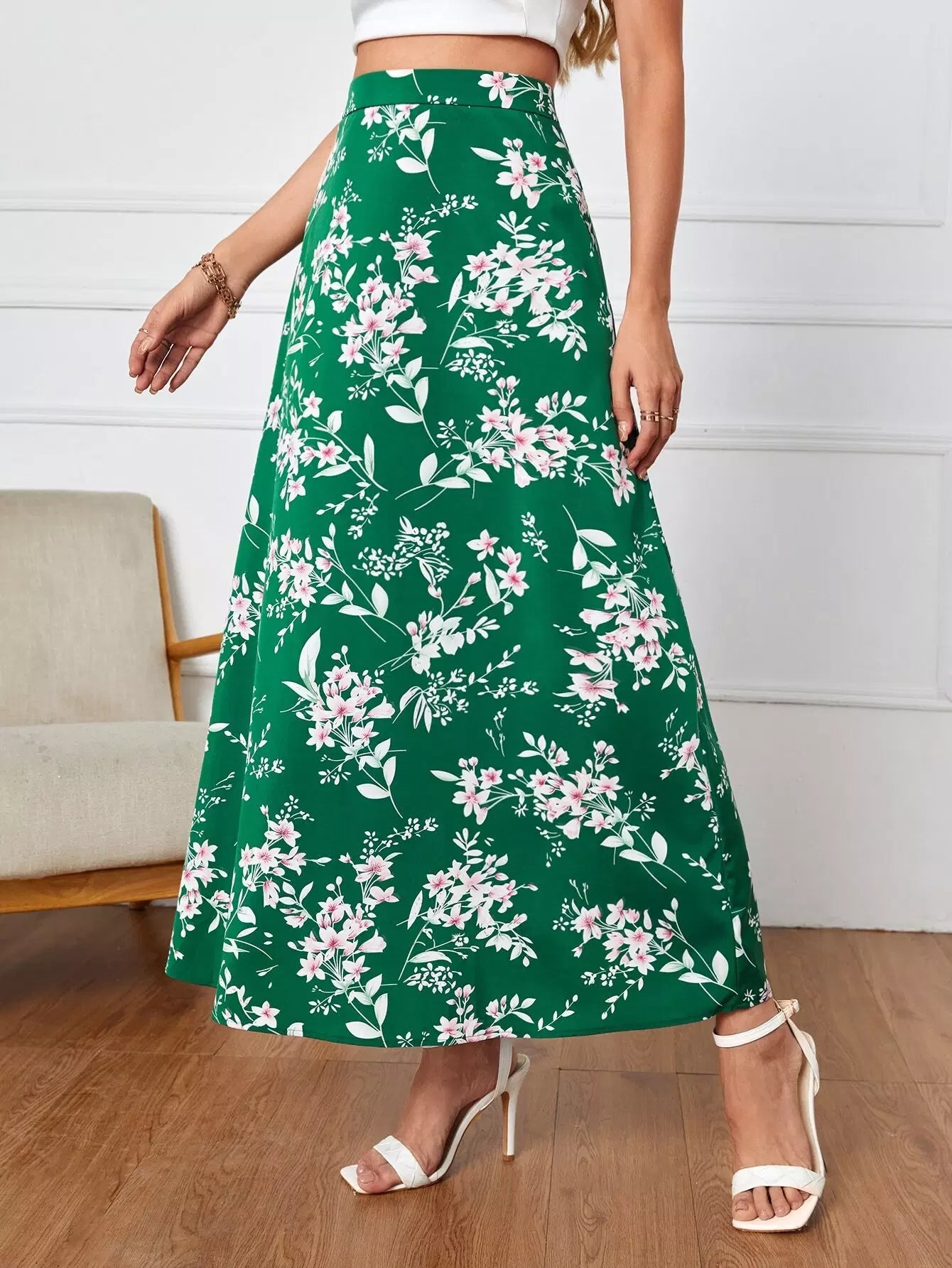 تنورة بطبعة زهور مطبوعة بسحاب من الخلف