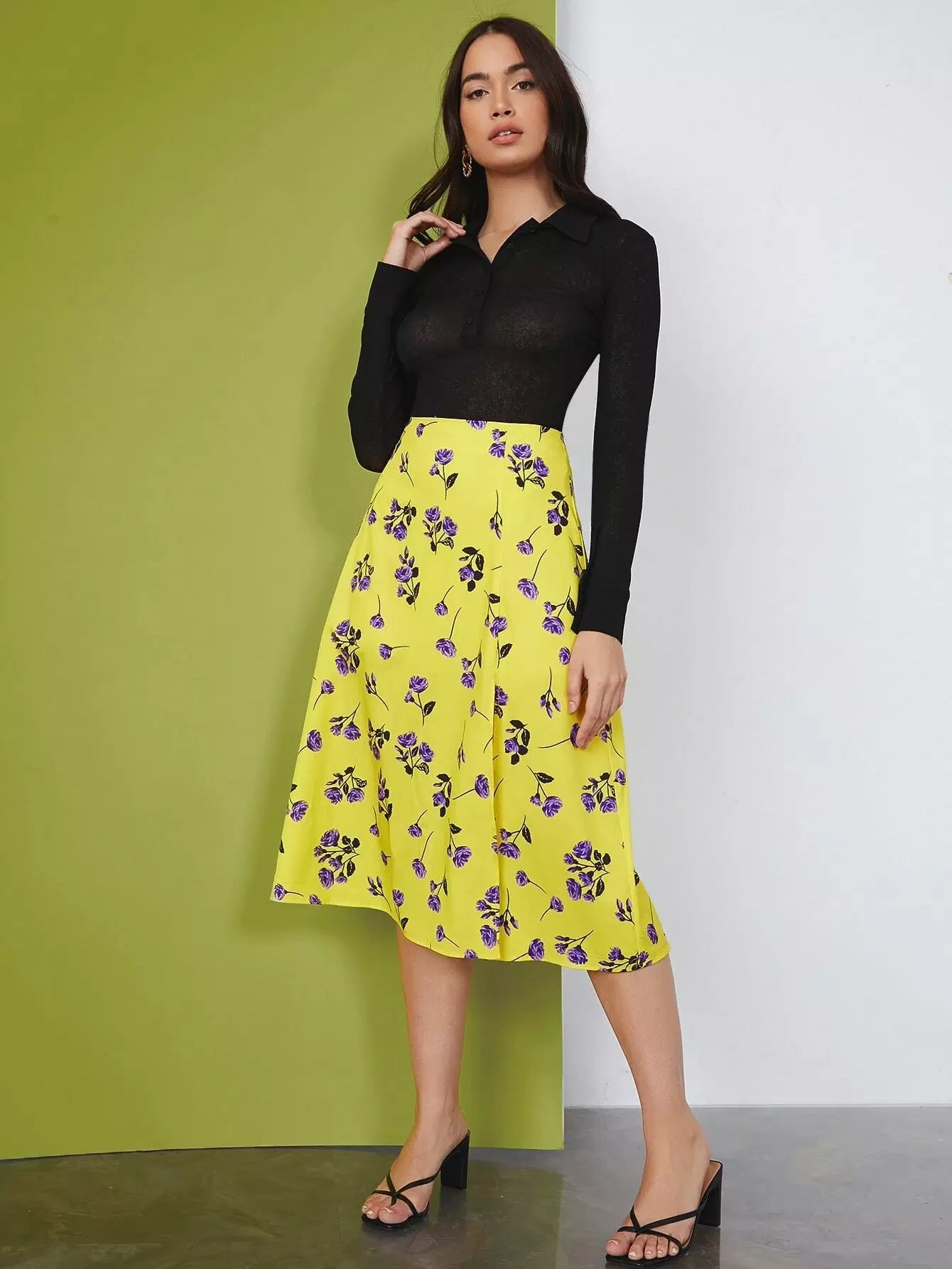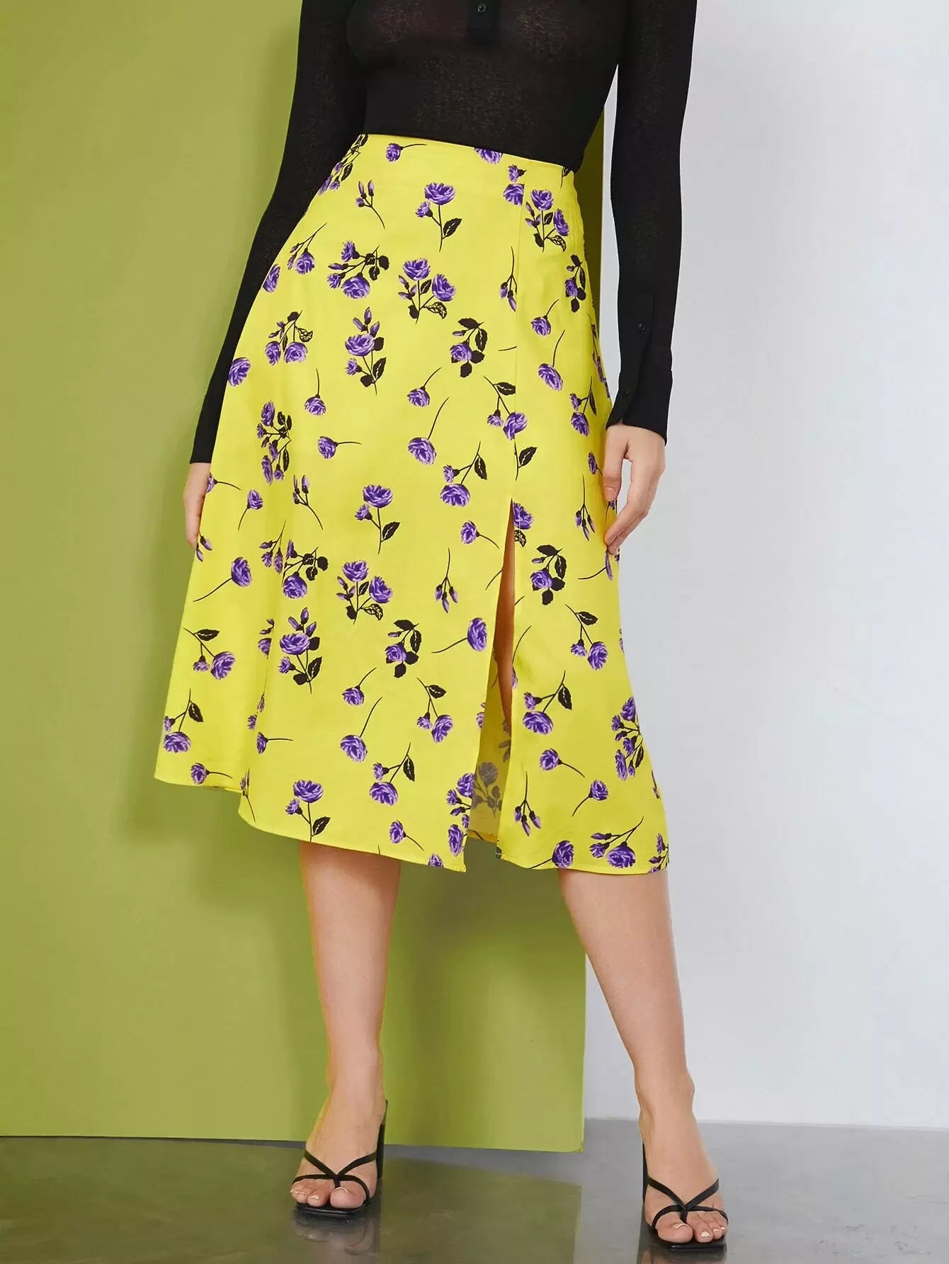 النساء - تنورة بحاشية مقسمة على شكل زهور