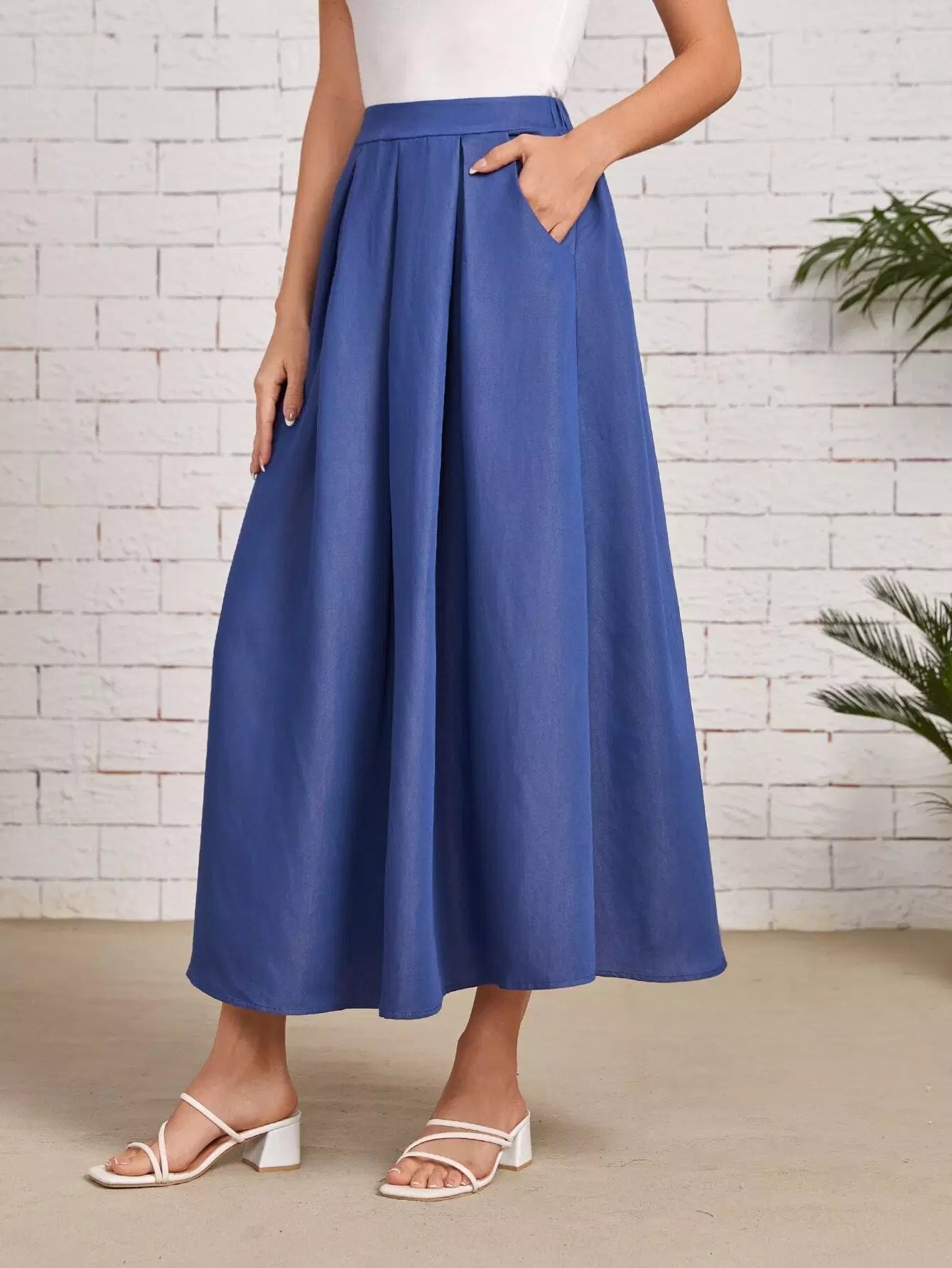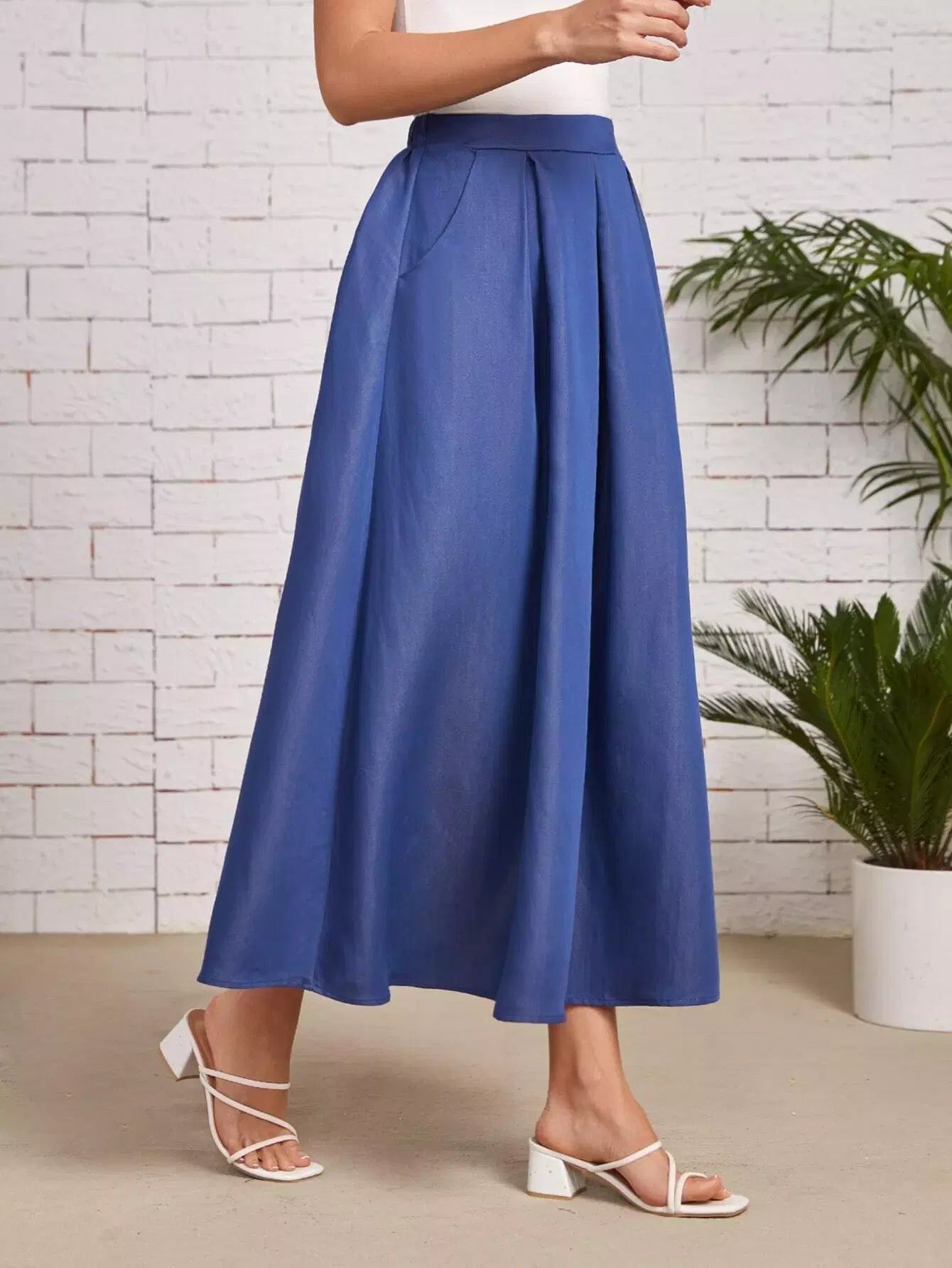 تنورة أمامية مطوية بجيب أمامي مطوية