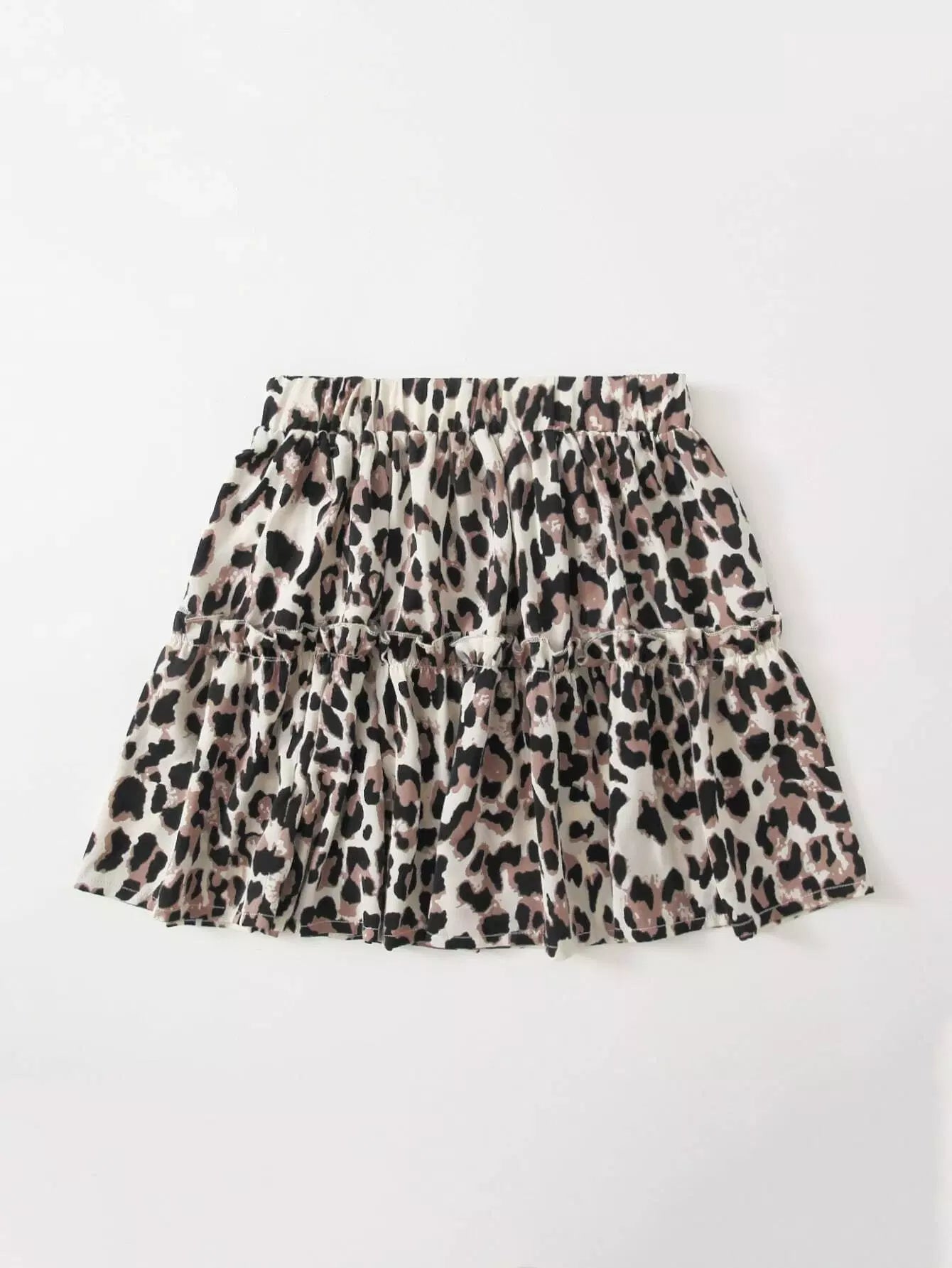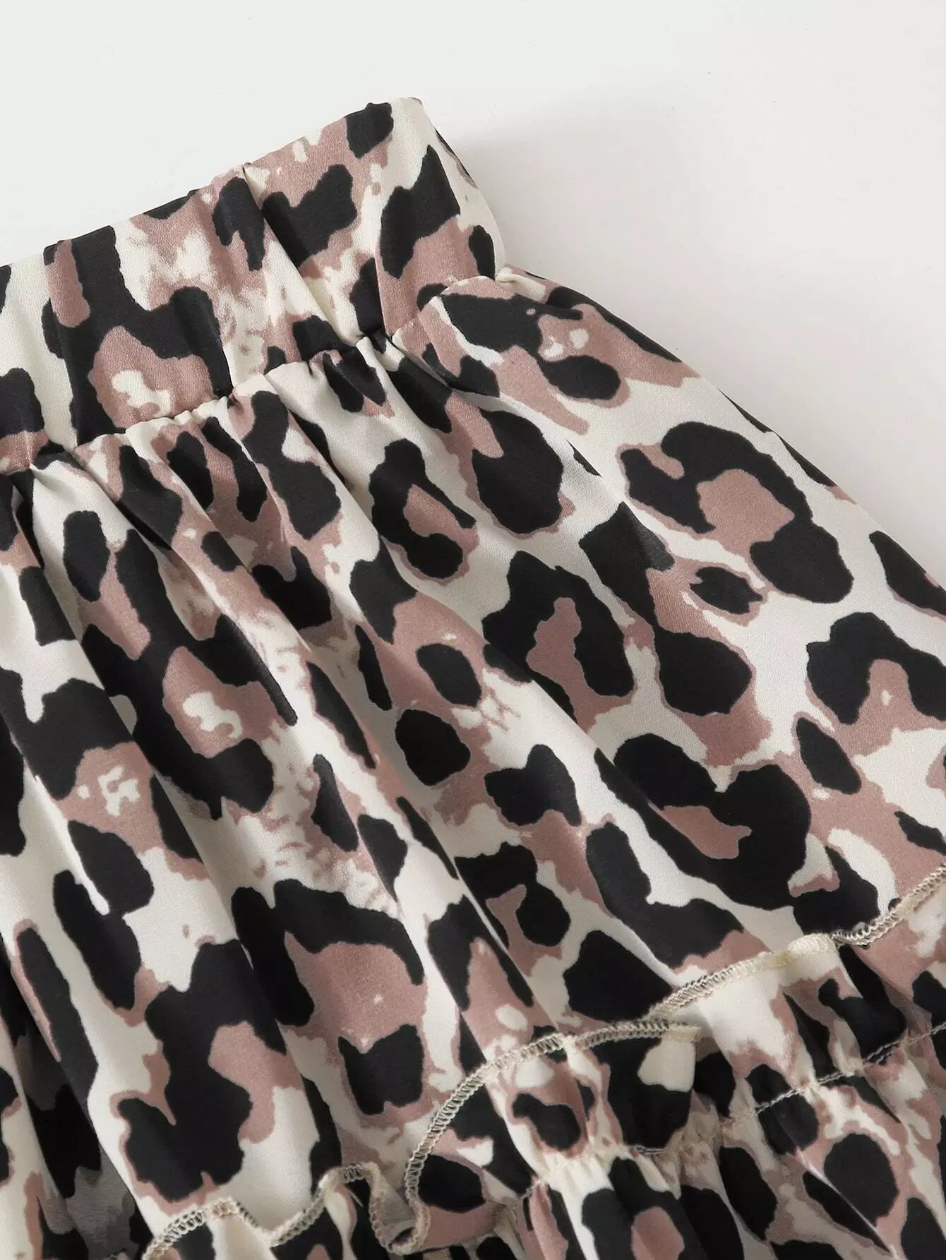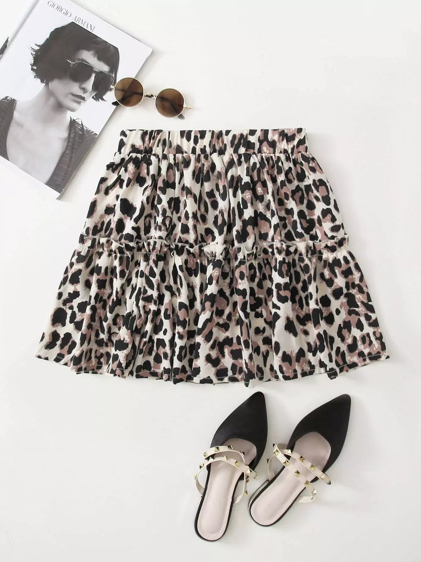 تنورة مزينة بكشكش مطبوع عليها جلد النمر