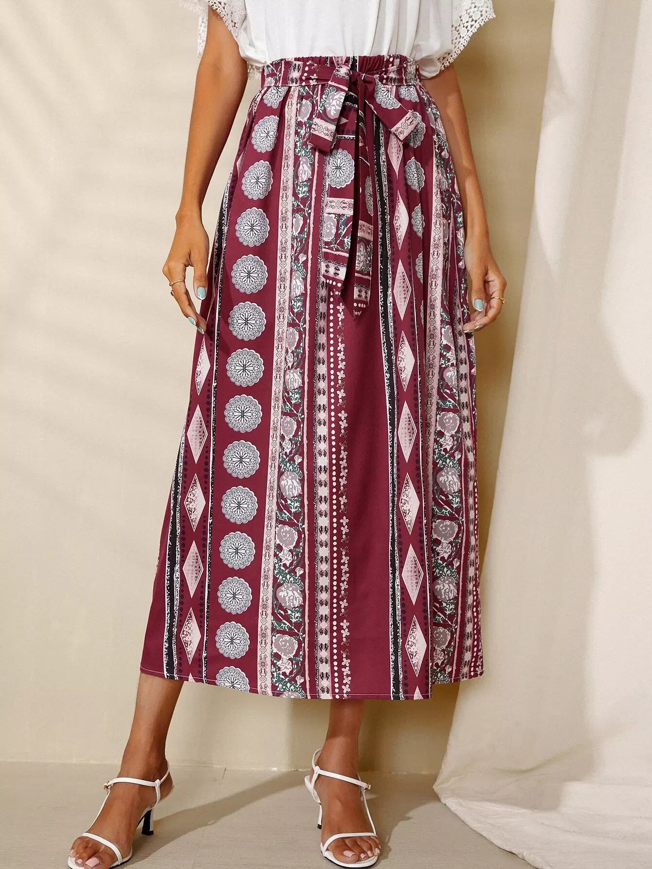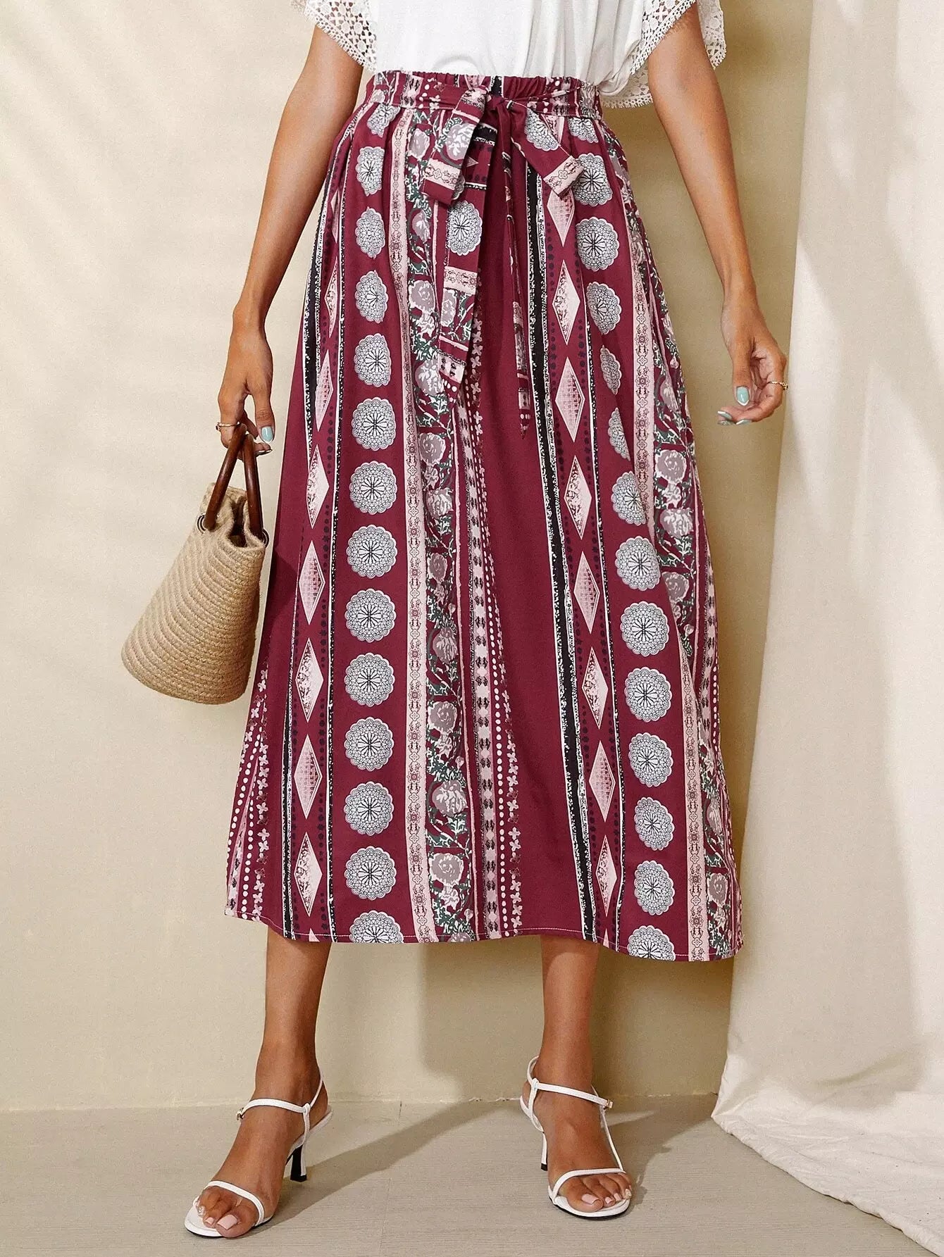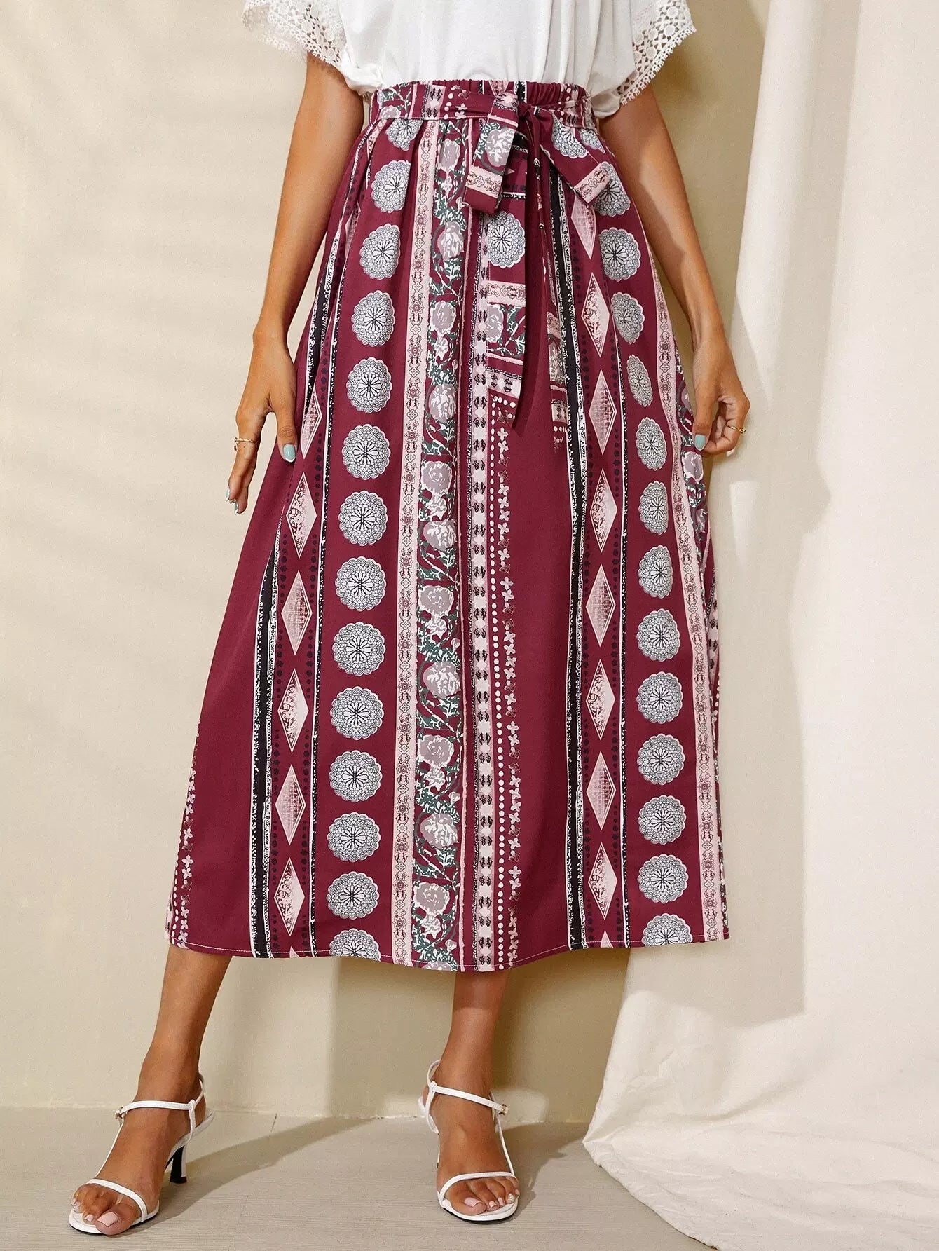 تنورة بتصميم Geo A-line بدون حزام
