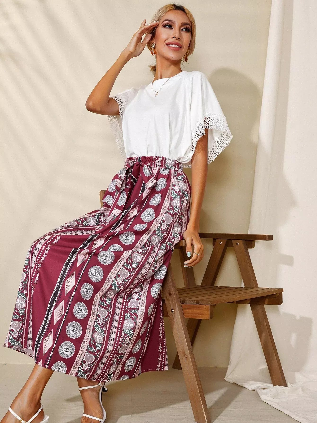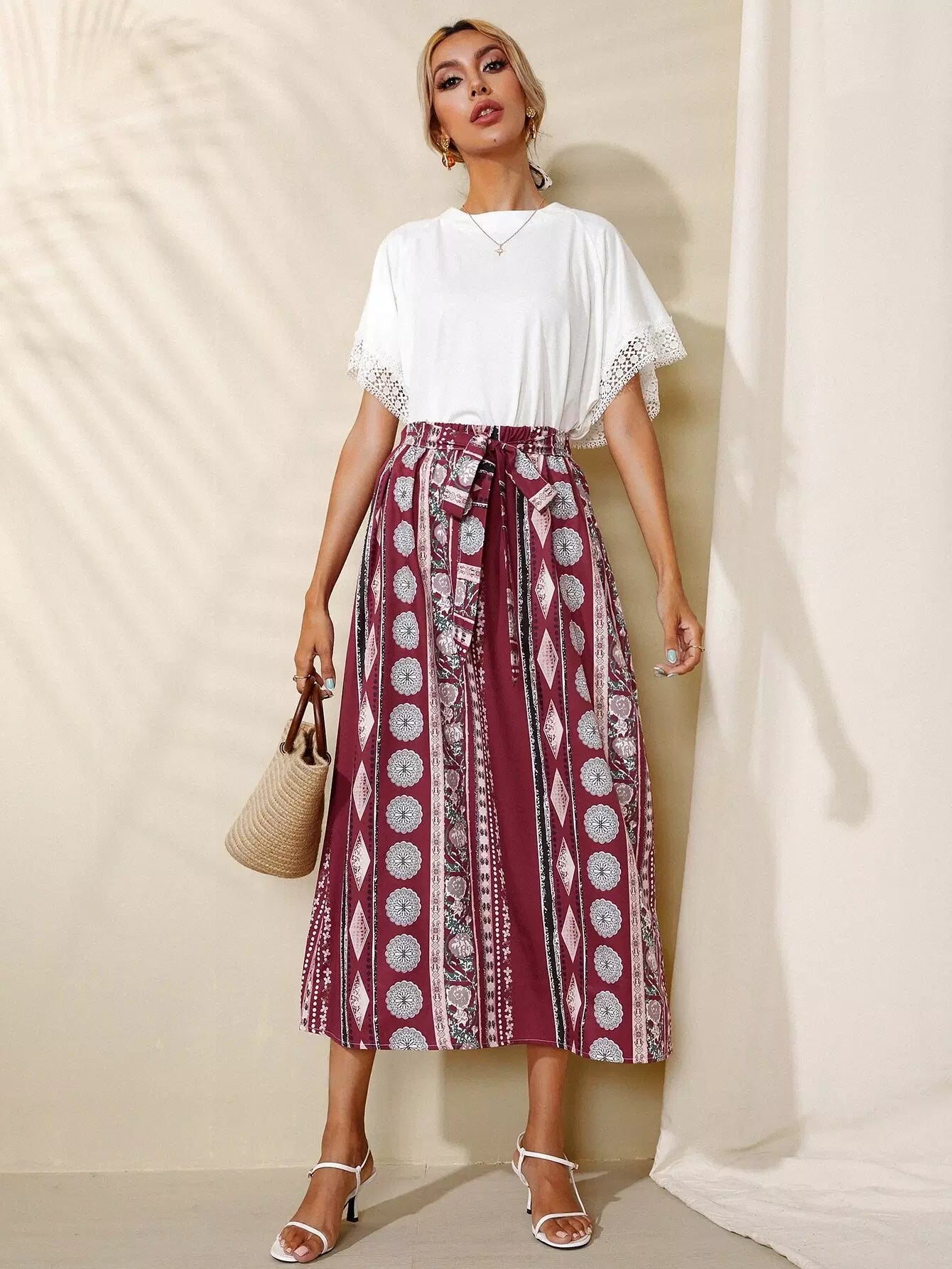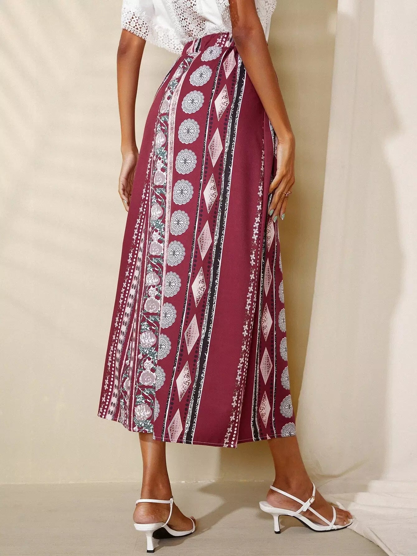تنورة بتصميم Geo A-line بدون حزام