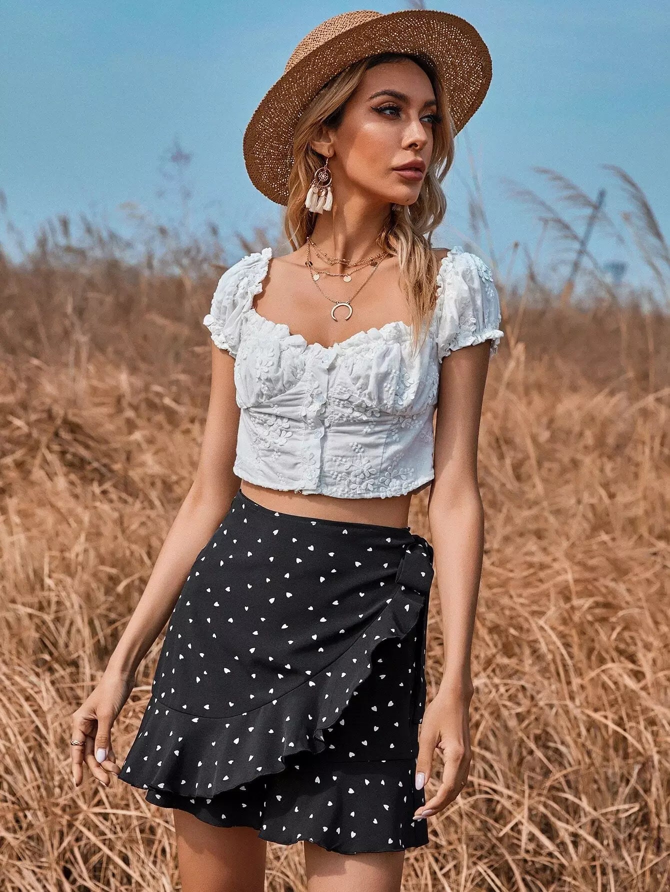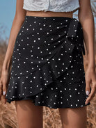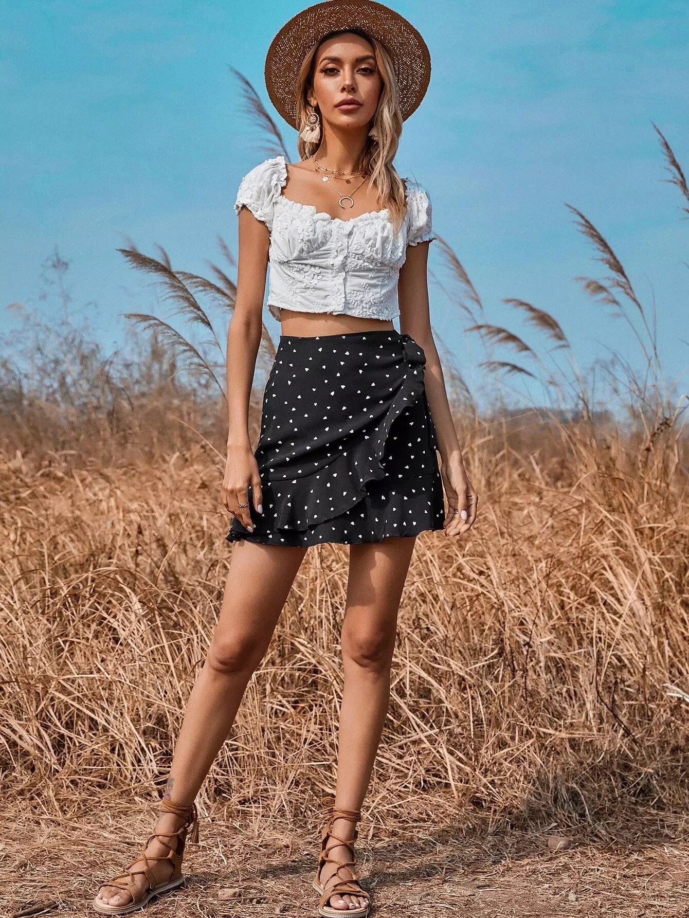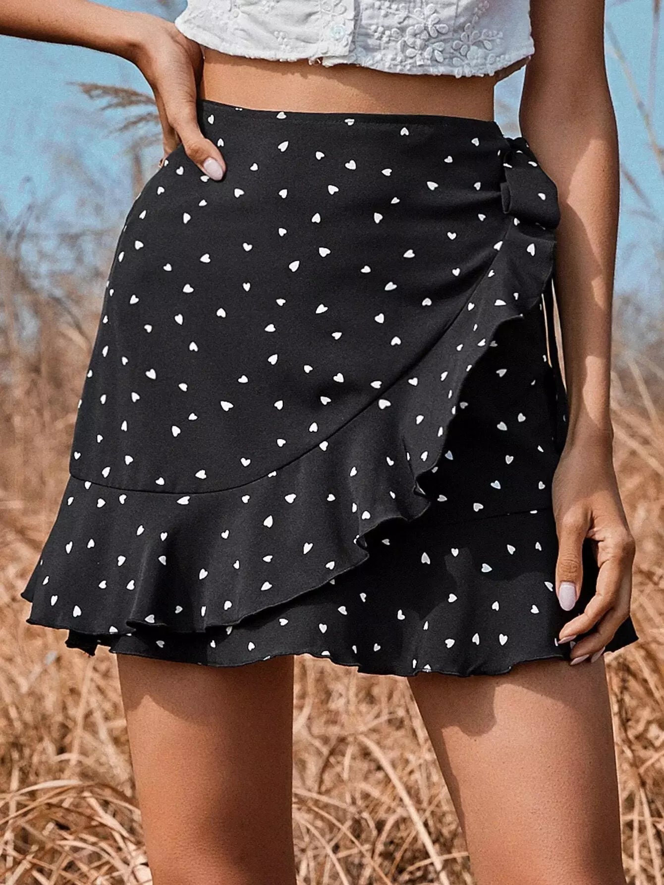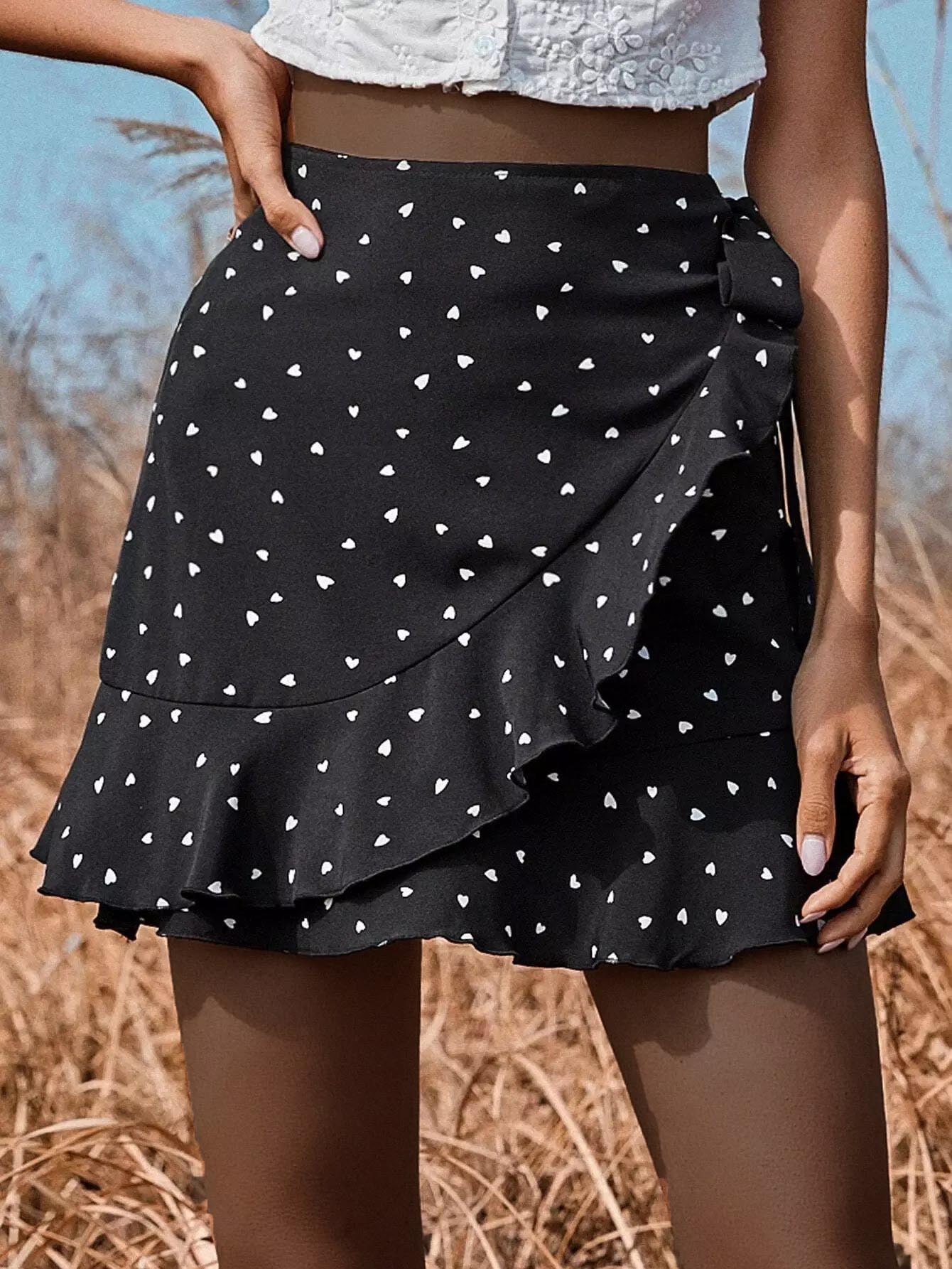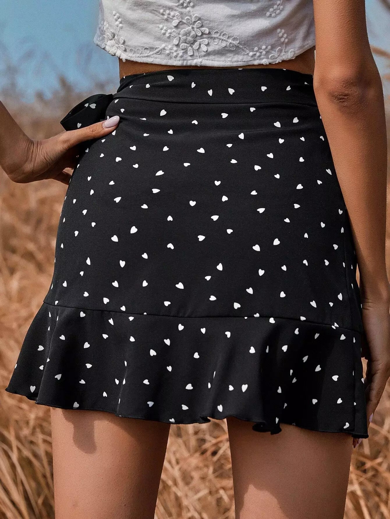 تنورة كشكش ملفوفة بطبعة قلب مطبوع عليها عقدة جانبية