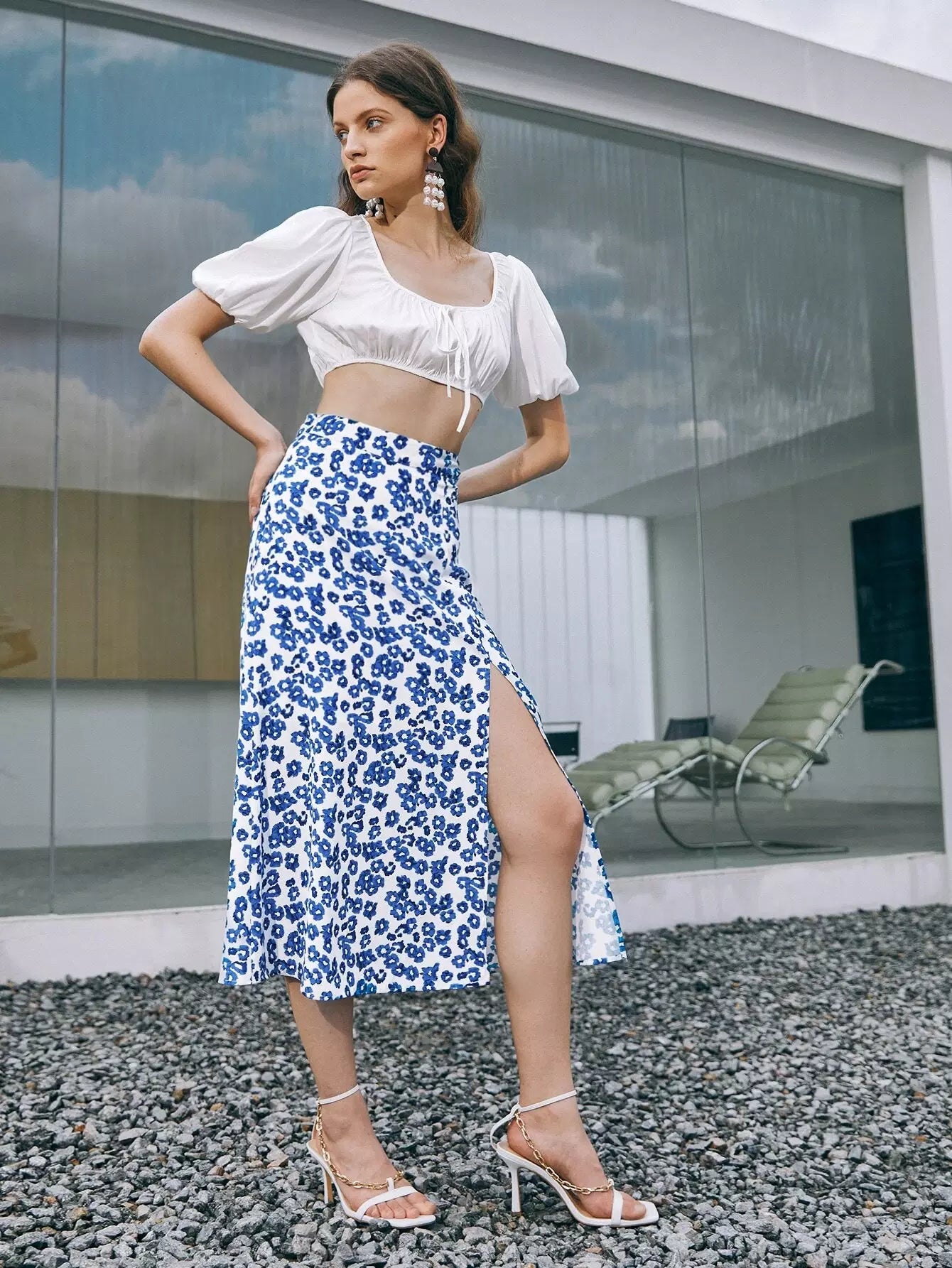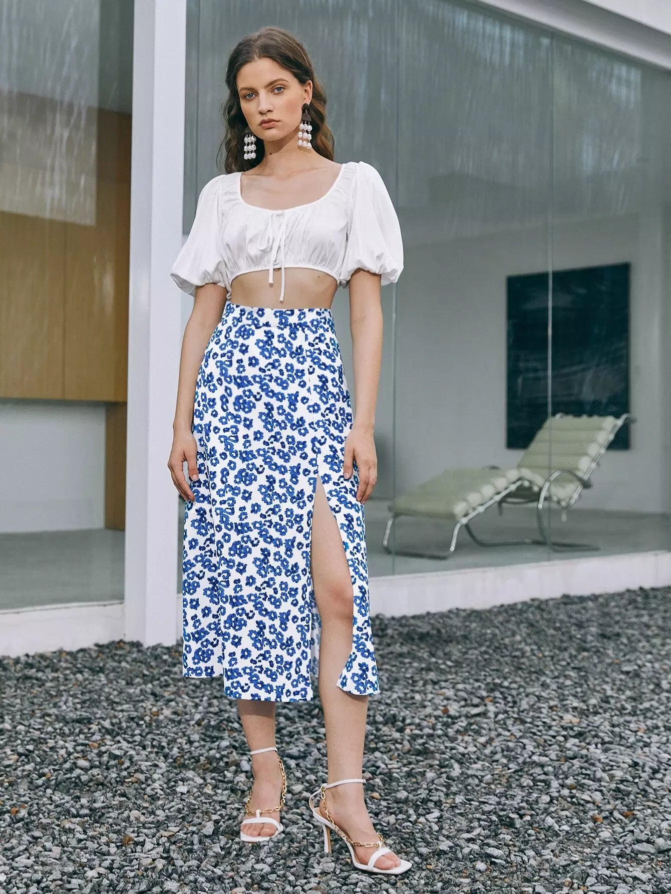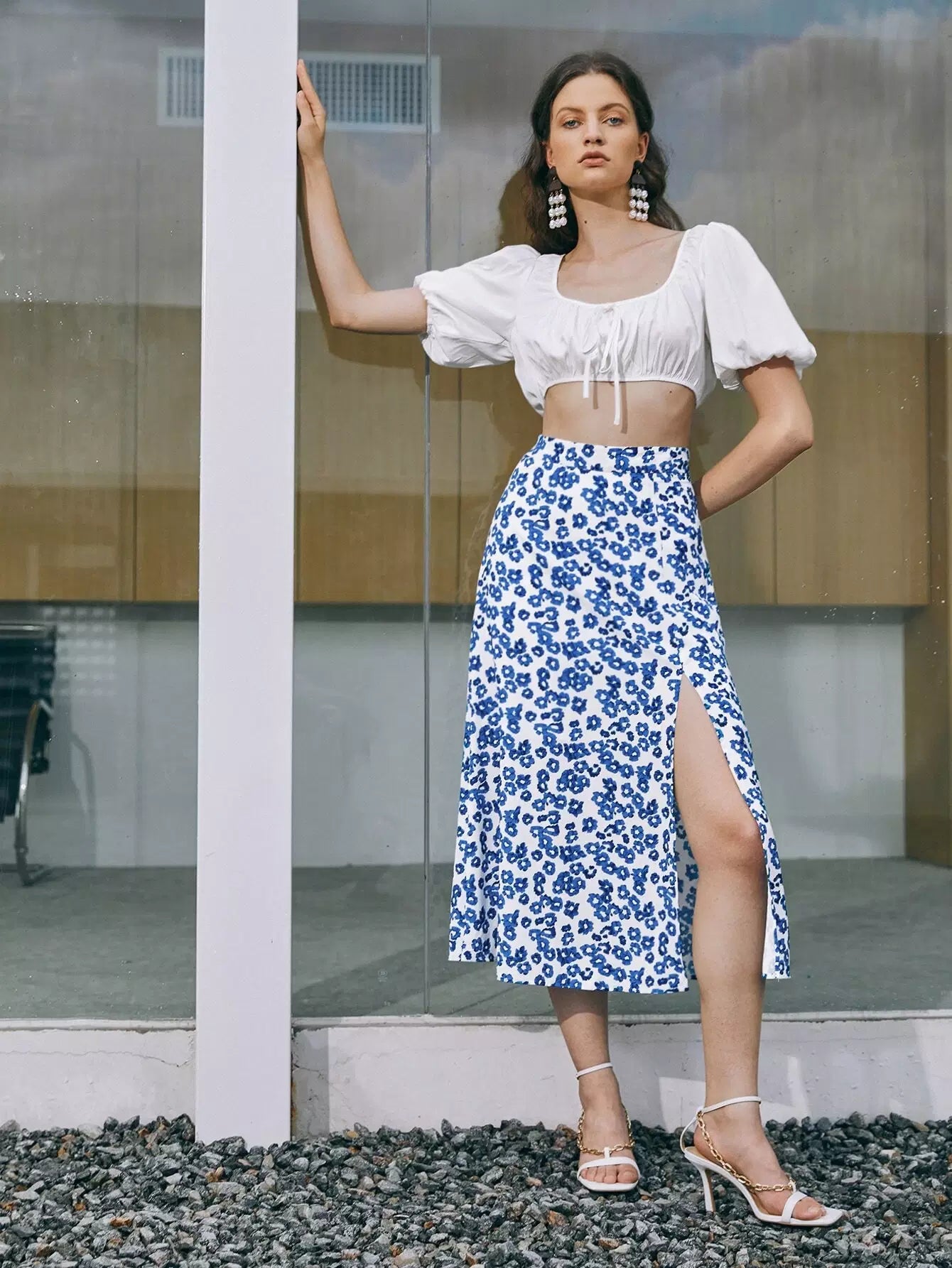تنورة ديتسي مزينة بالورود عالية الانشقاق