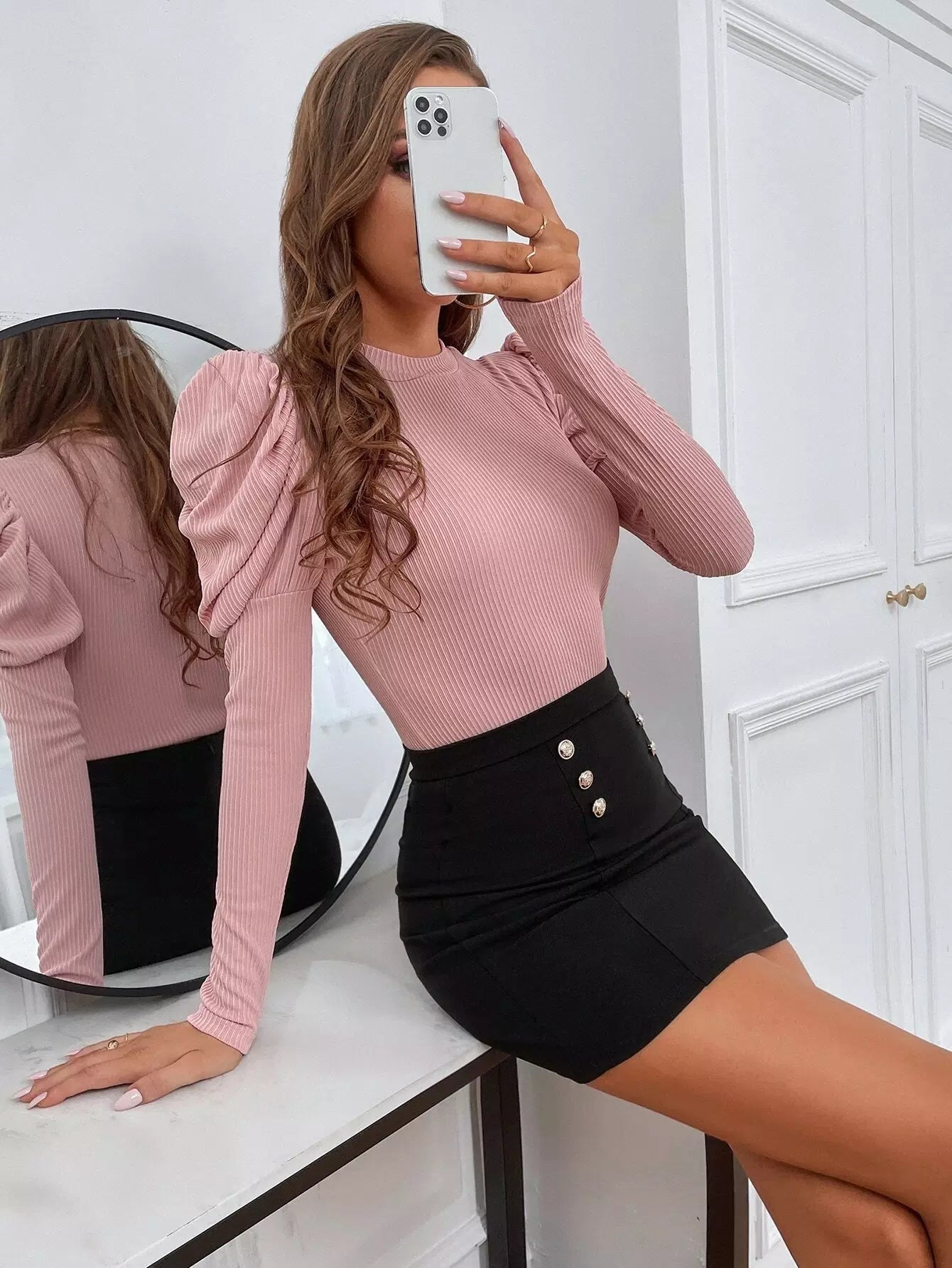 تنورة ضيقة بأزرار وهمية وخصر مرتفع