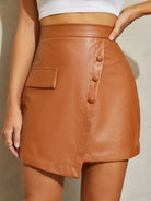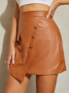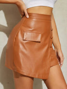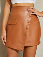 تنورة جلدية من البولي يوريثان عالية الخصر ذات تفصيل رفرف بفتحة واحدة على الخصر