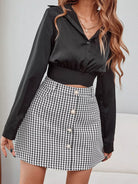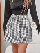 تنورة ذات صدر واحد بنقشة مربعات عالية الخصر