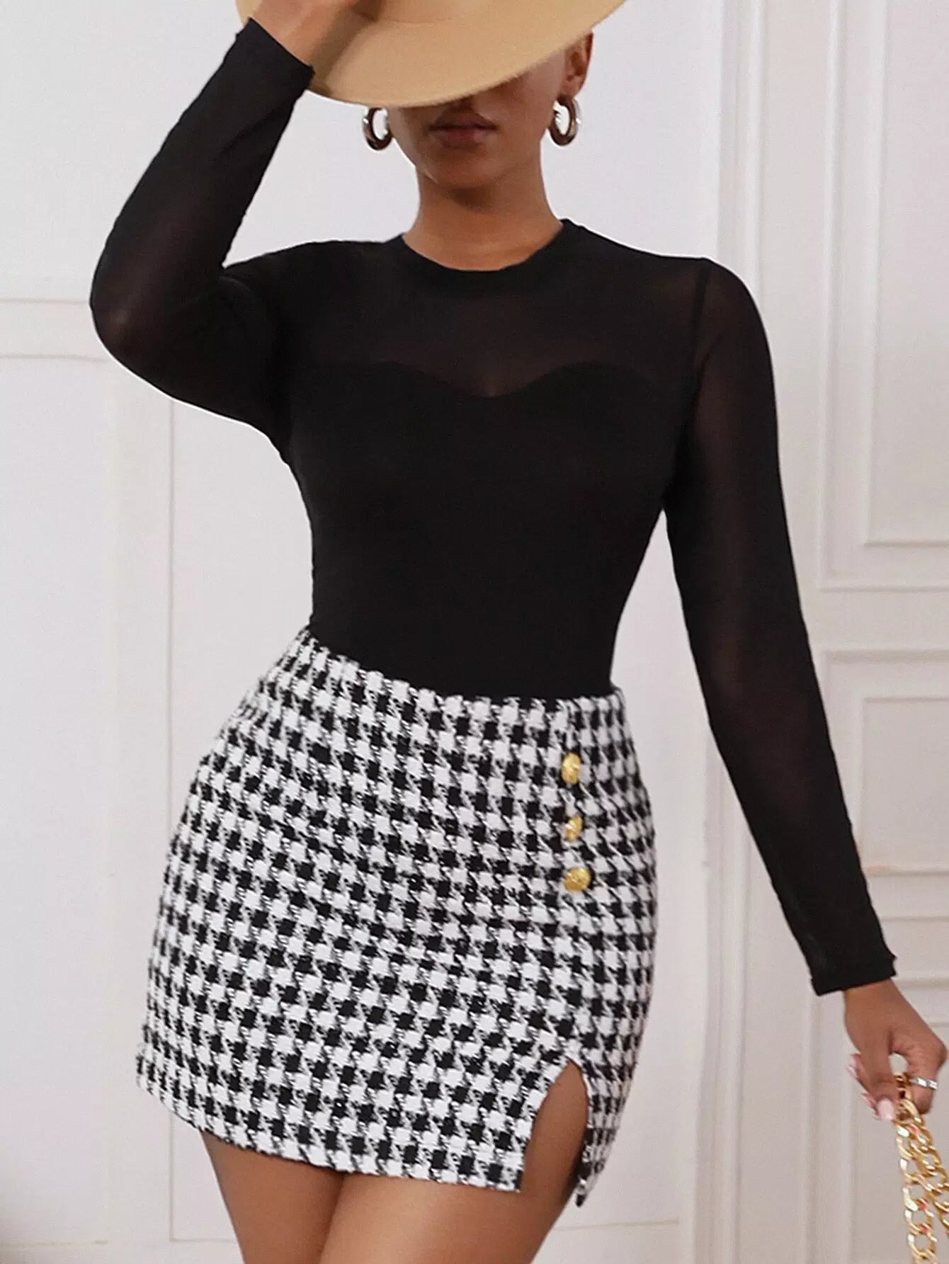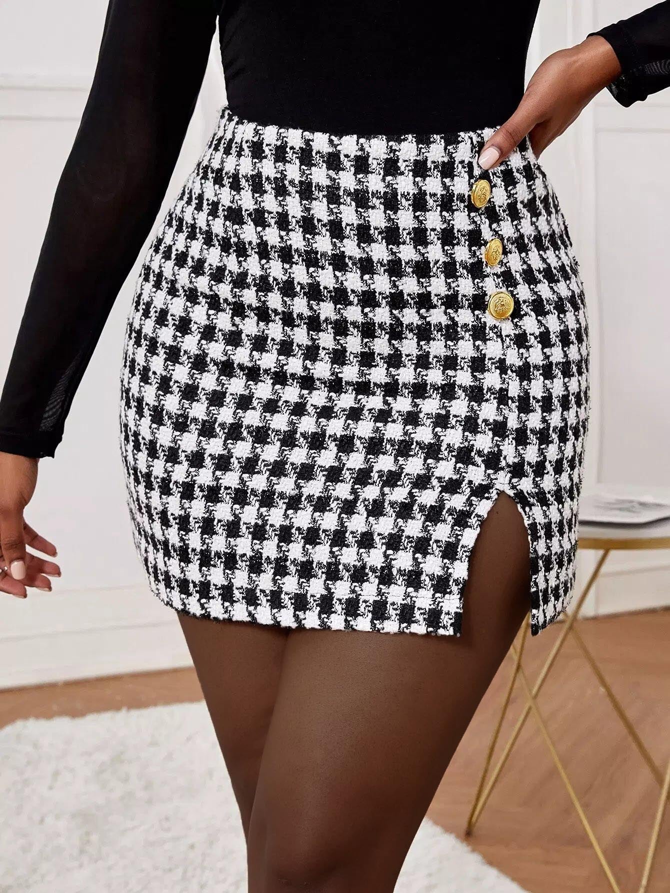 تنورة تويد عالية الخصر ذات حاشية منقسمة الخصر عالية الخصر