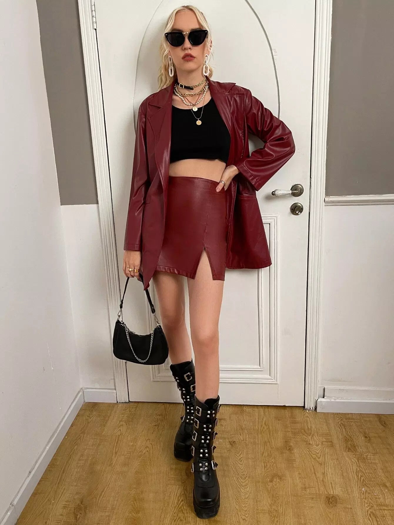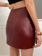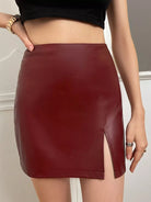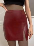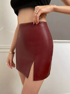 تنورة بشق من جلد البولي يوريثان عالية الخصر