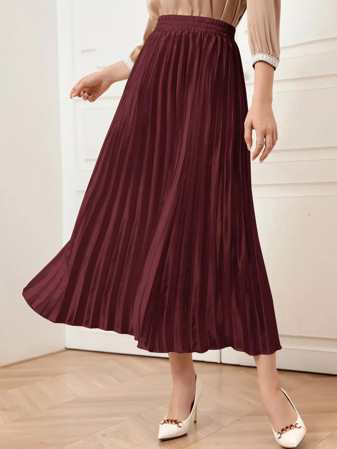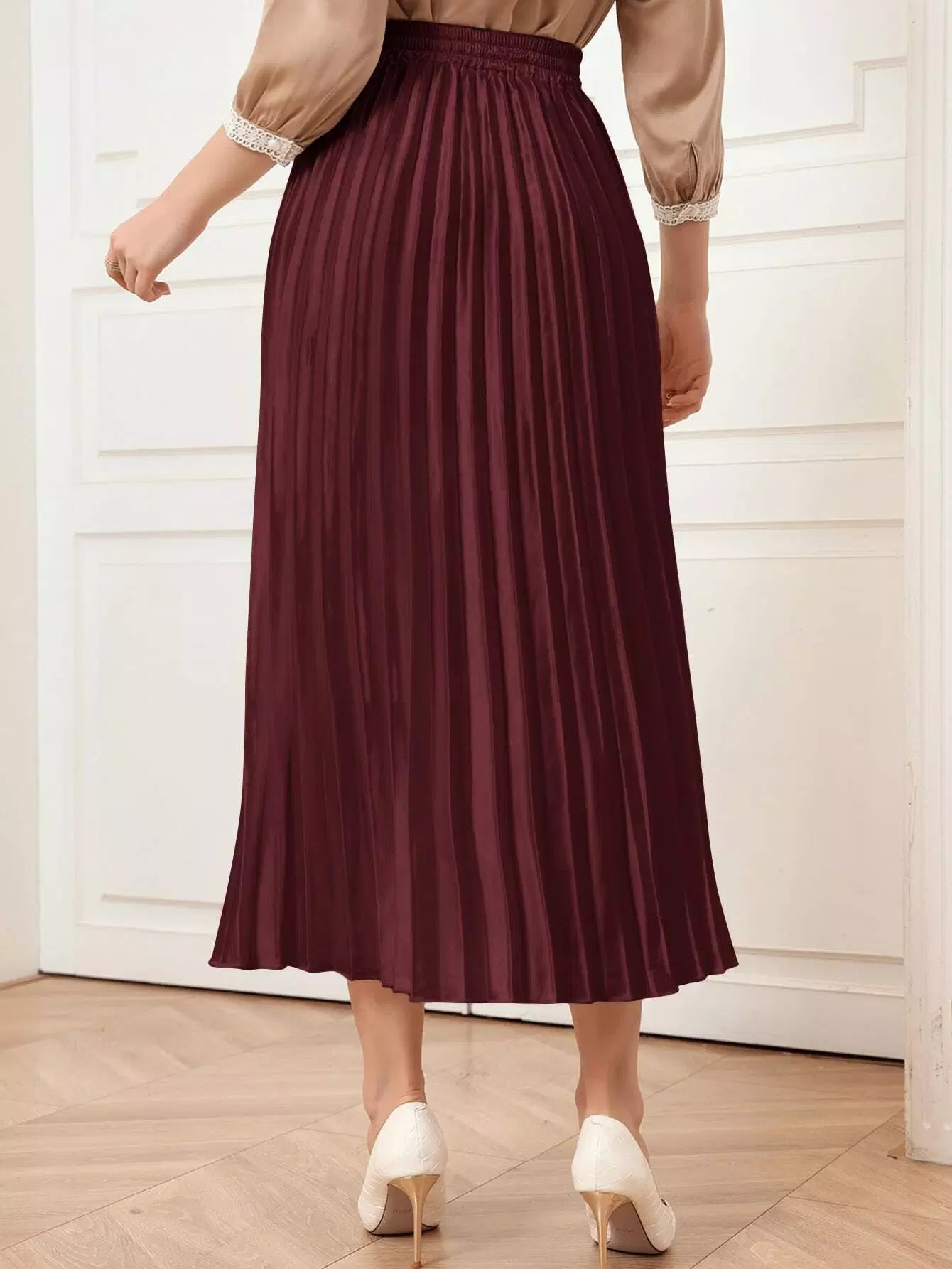 تنورة مطوية ذات خصر مرتفع