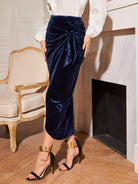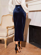 تنورة ملفوفة مخملية ملفوفة بربطة خصر عالية الجانب بربطة خصر عالية