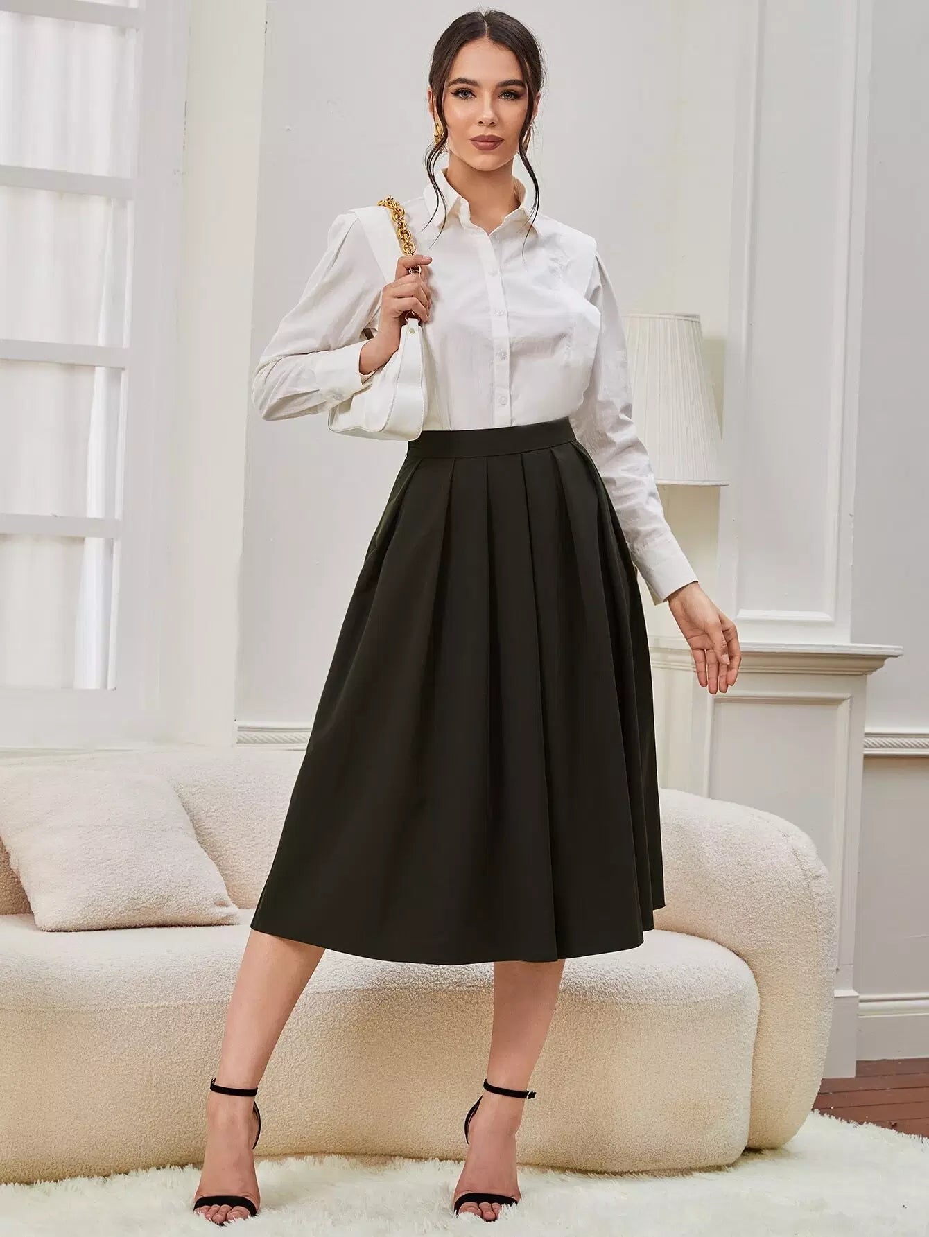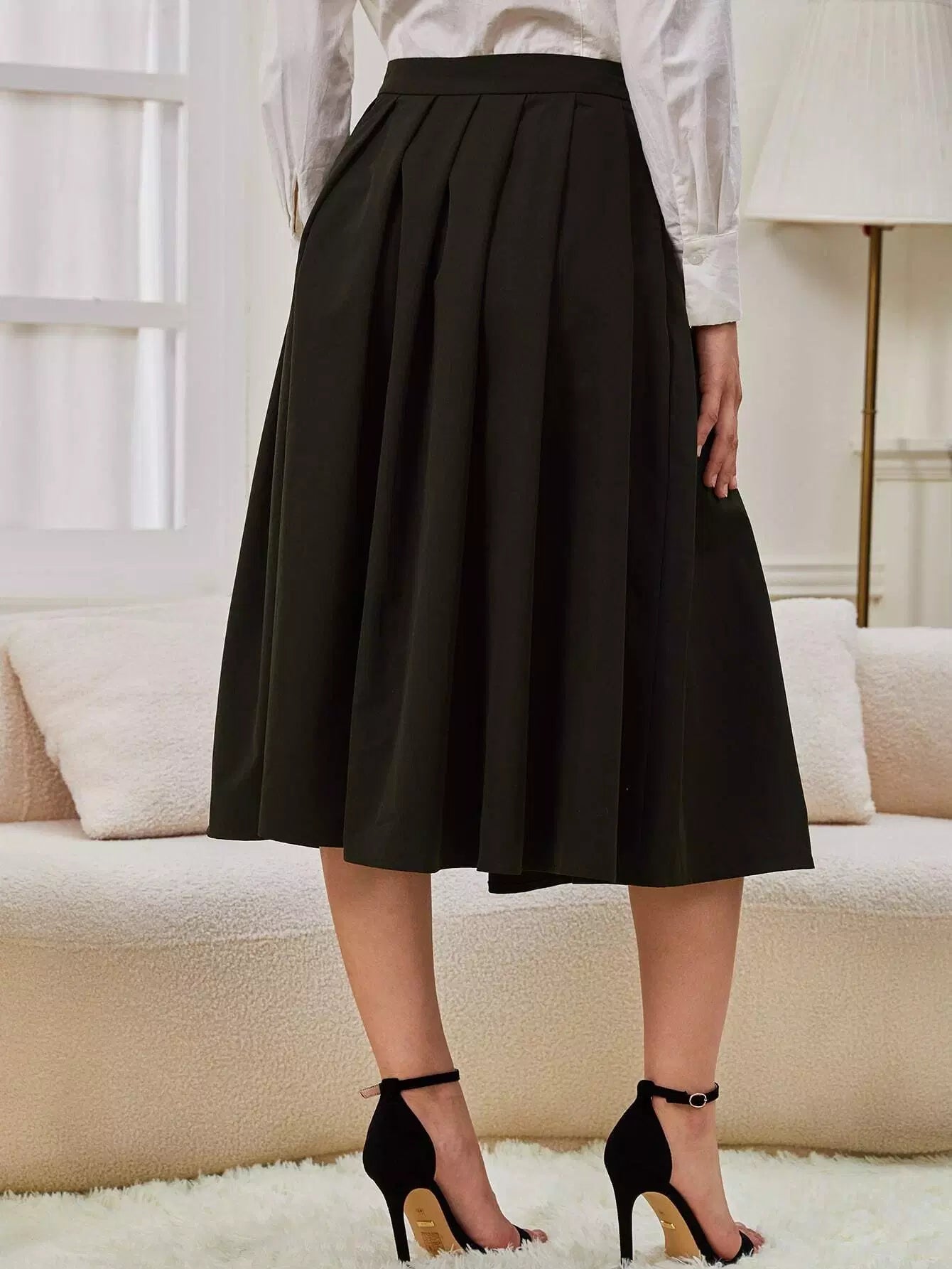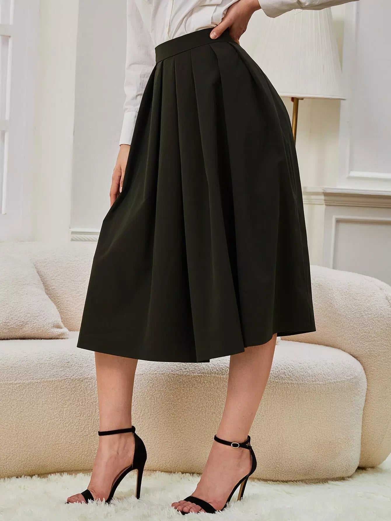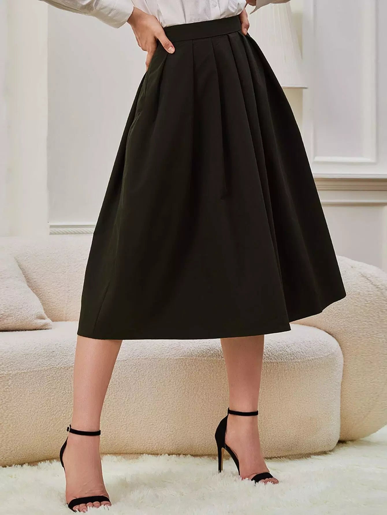 تنورة ميدي واسعة عالية الخصر عالية الخصر