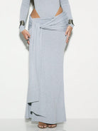 KIZN Ruched Draped Maxi Skirt Soft Jersey Floor-Length Wrap Style Casual Elegant Evening Party Wedding