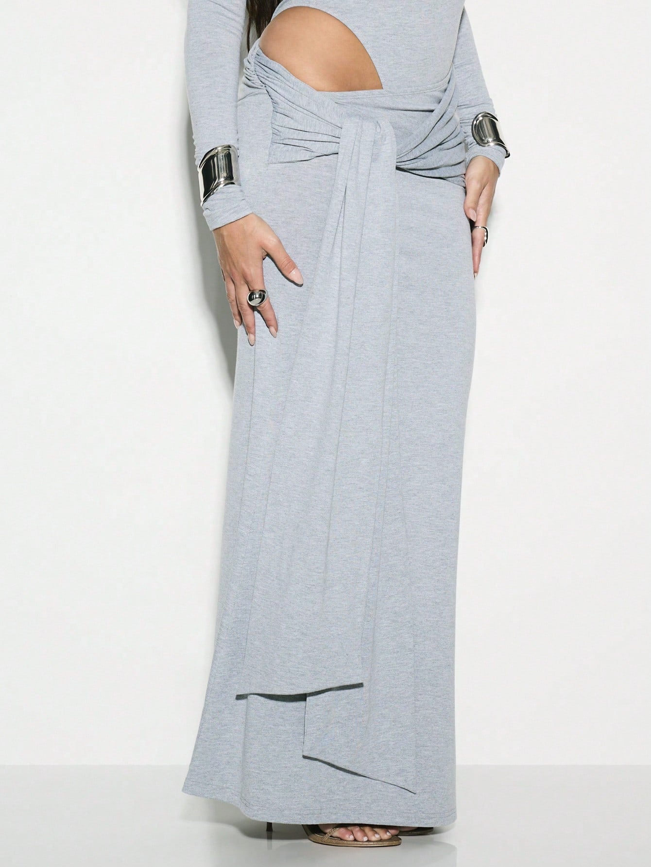 تنورة ماكسي KIZN بتصميم ملفوف من قماش الجيرسي الناعم بطول الأرض، مناسبة للحفلات المسائية الأنيقة وحفلات الزفاف
