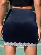 تنورة ساتان مزينة بالدانتيل
