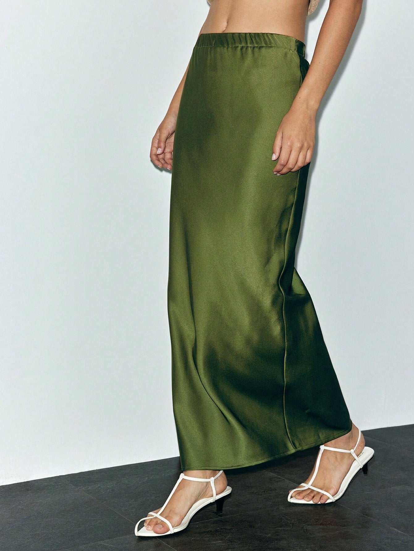 women Lumivelle Women Elegant Casual Satin High Waisted Elastic Straight Skirt
