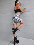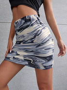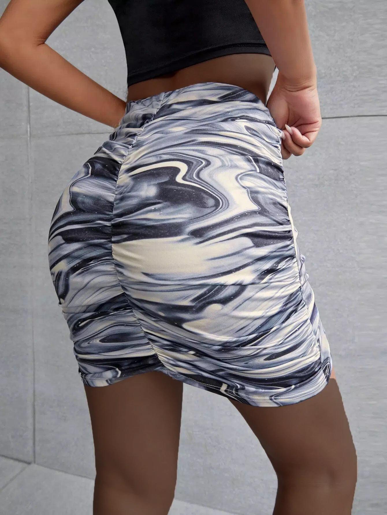 تنورة بوديكون عالية الخصر بطبعة رخامية