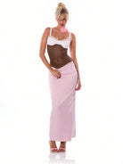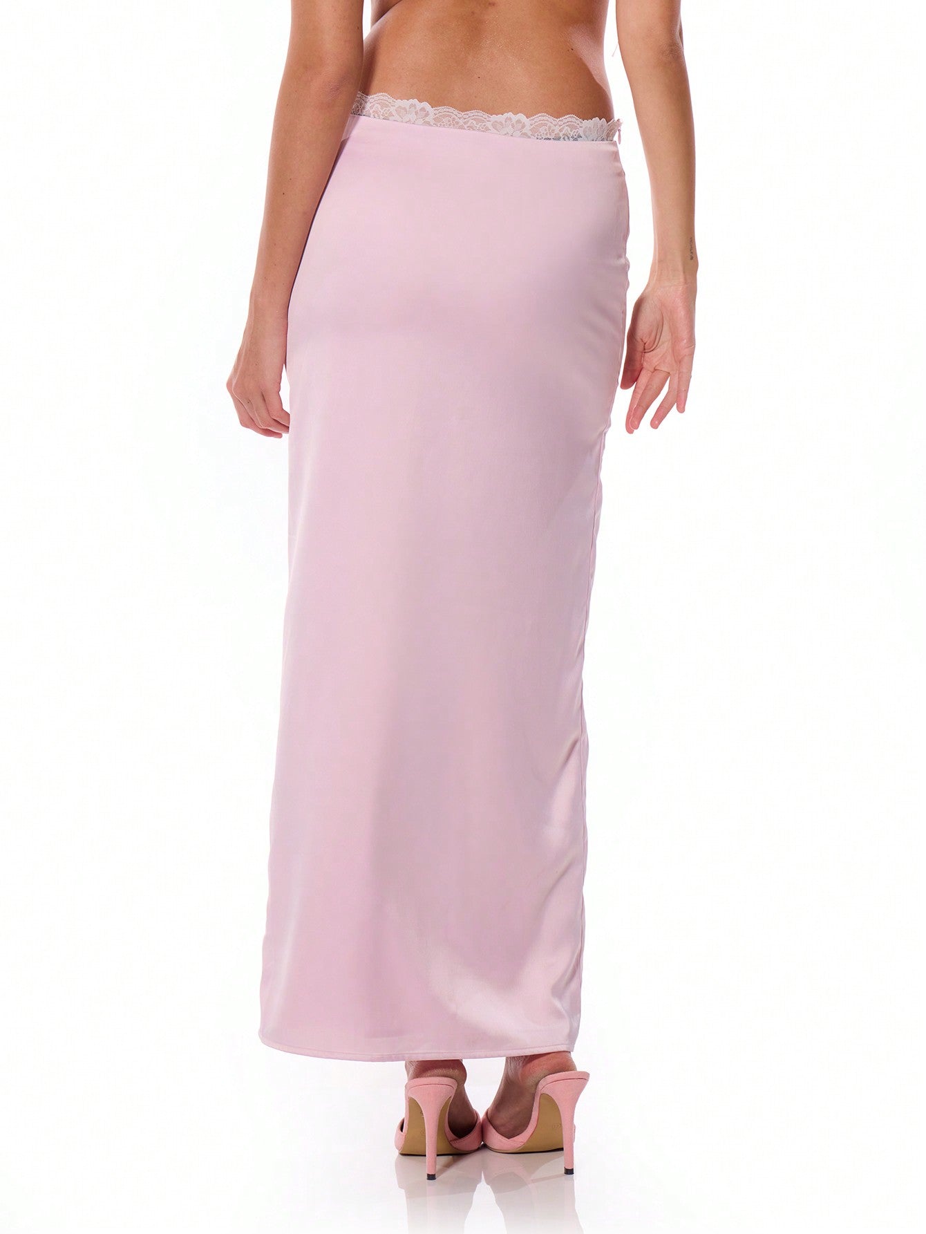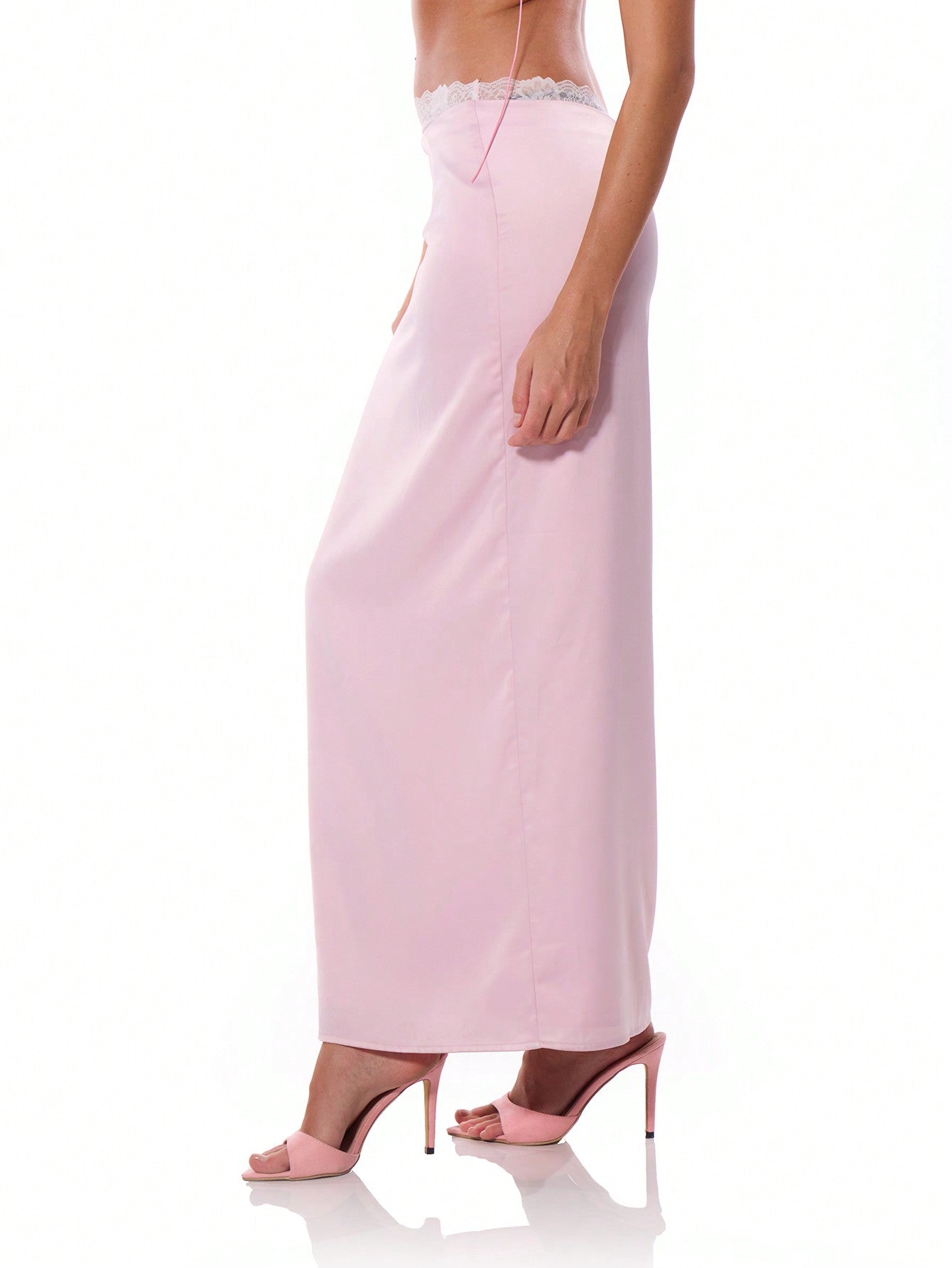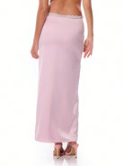 MUSERA Satin Lace Trim Low Rise Maxi Skirt Spring Summer