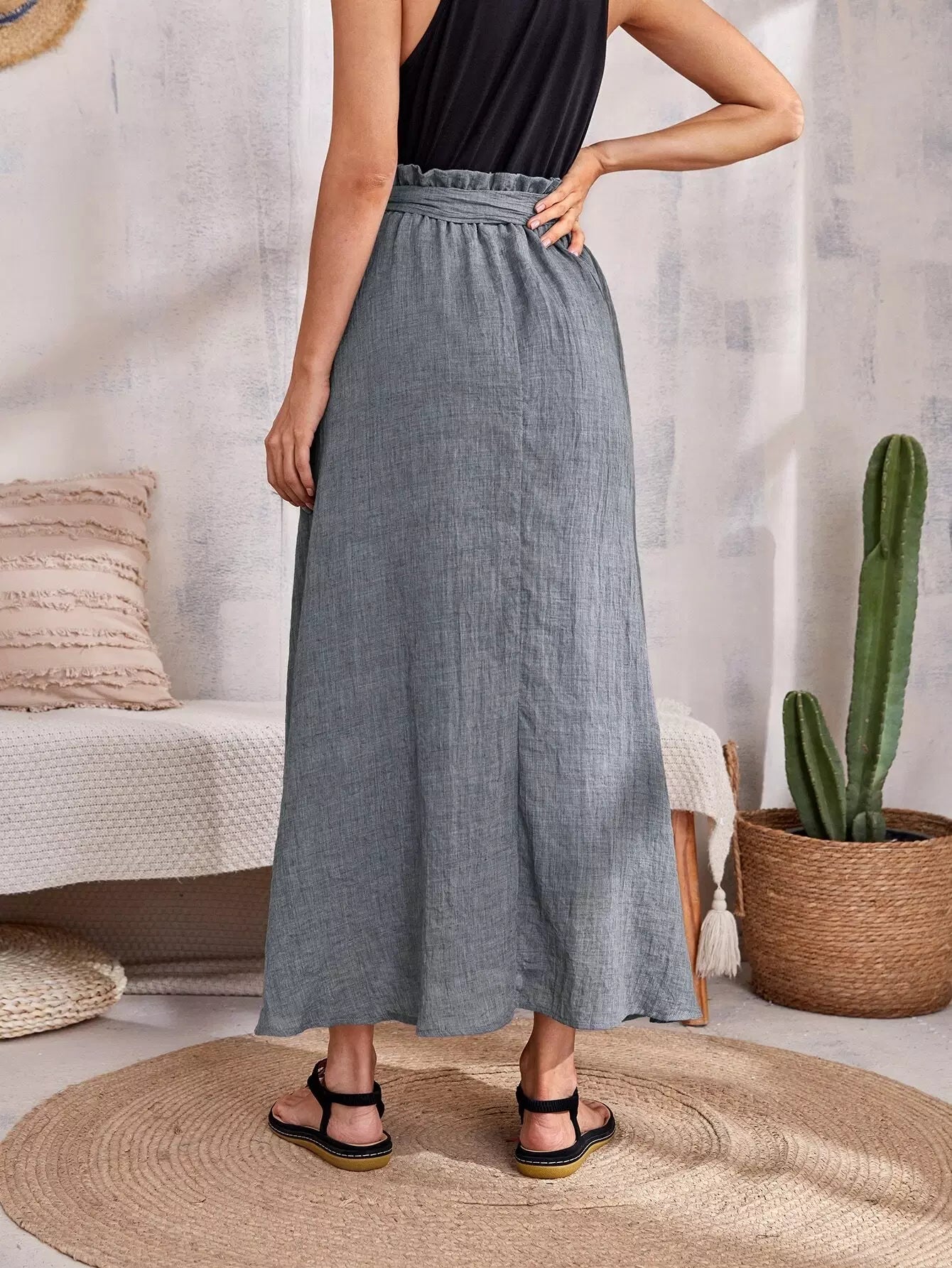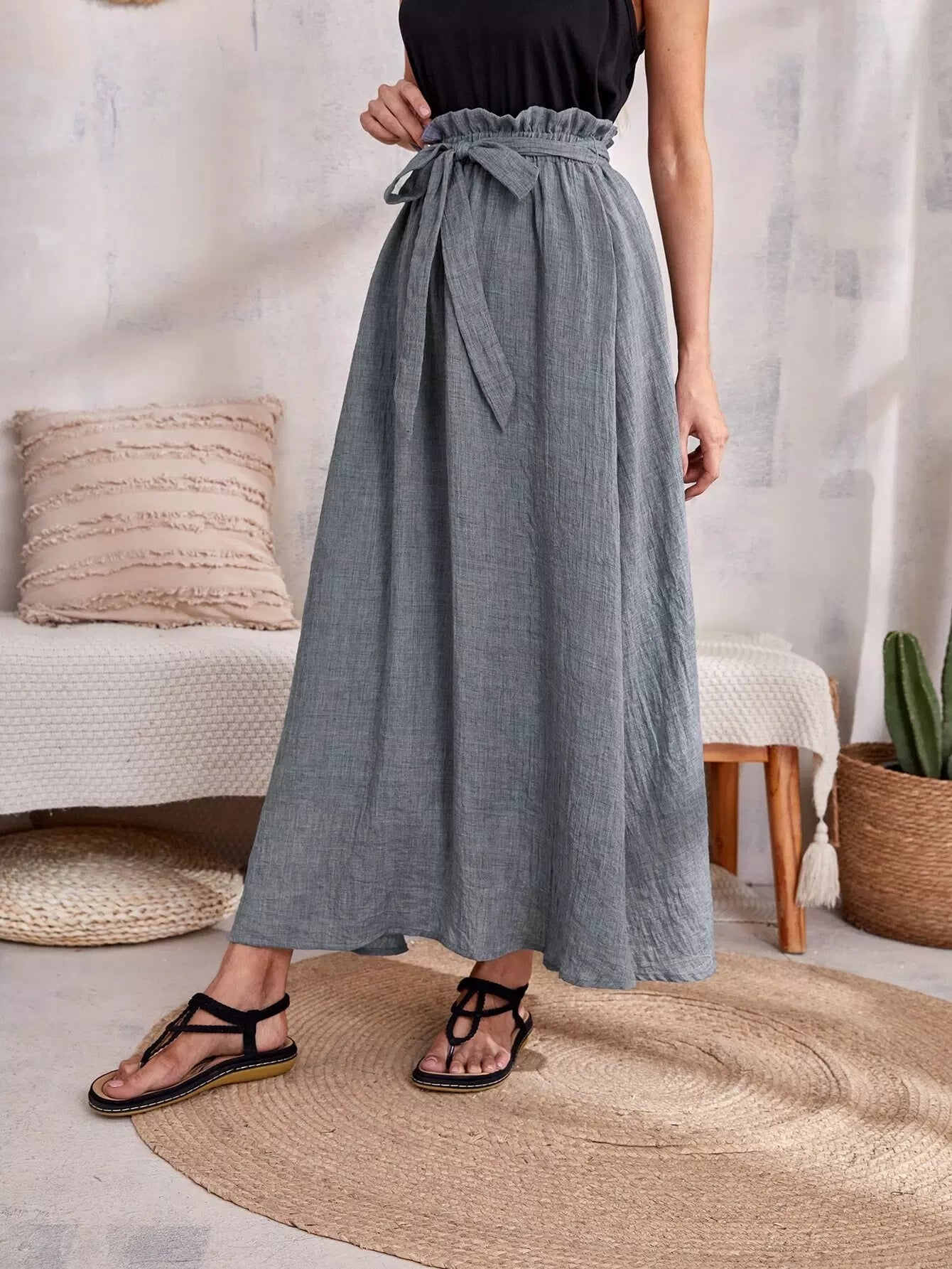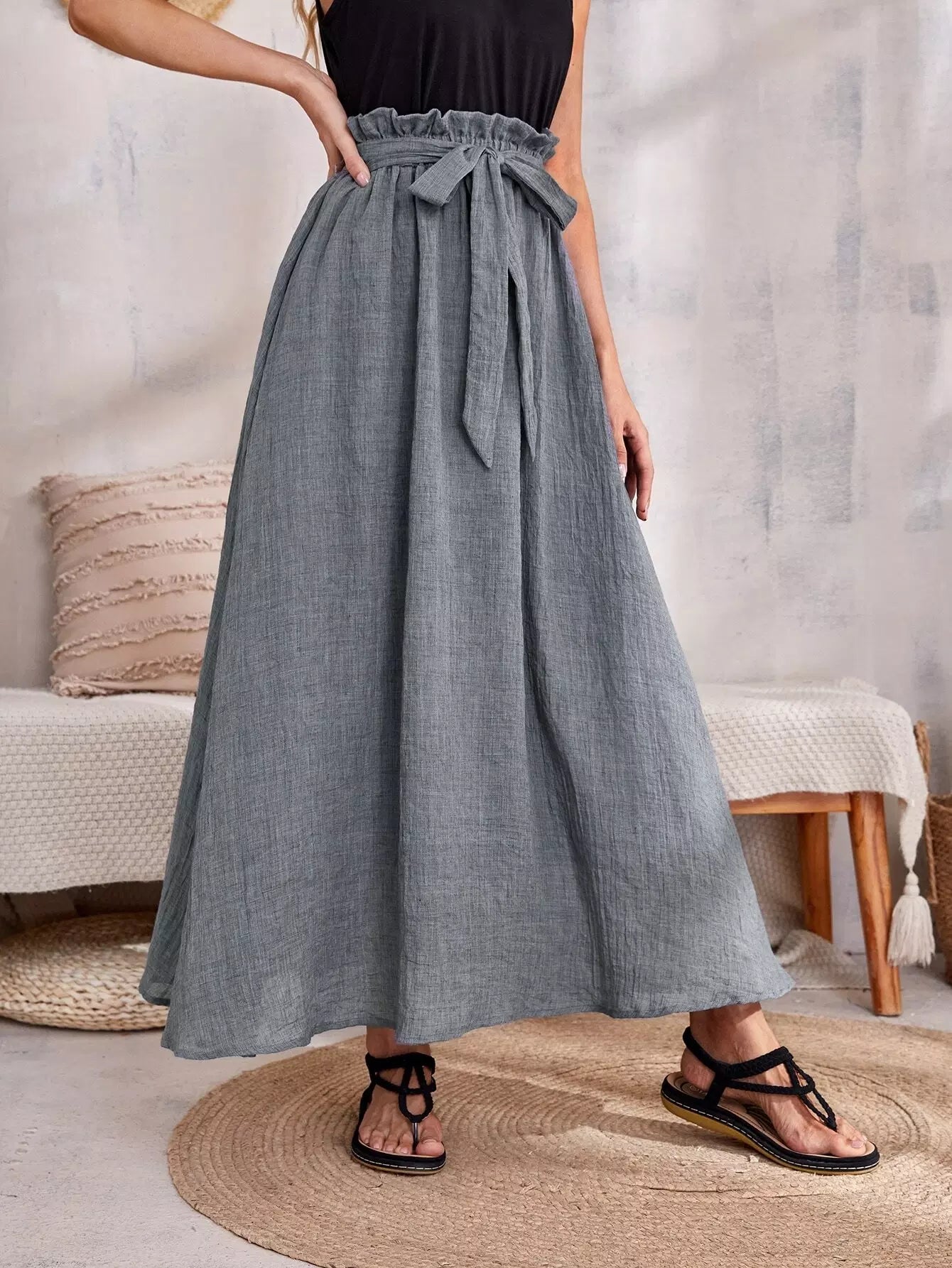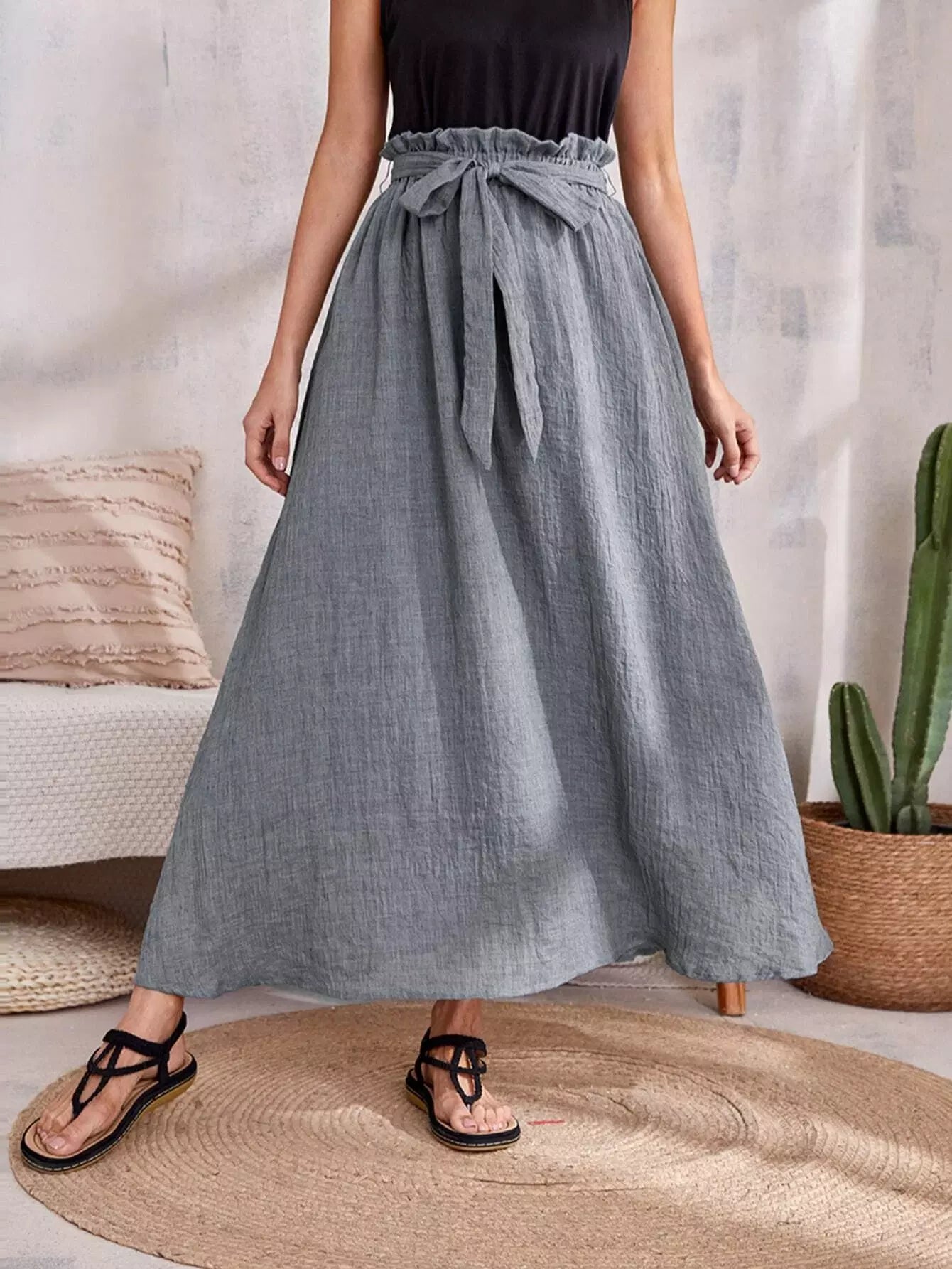 تنورة خصر على شكل حقيبة ورقية بدون حزام