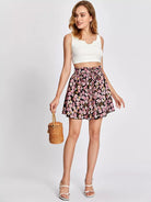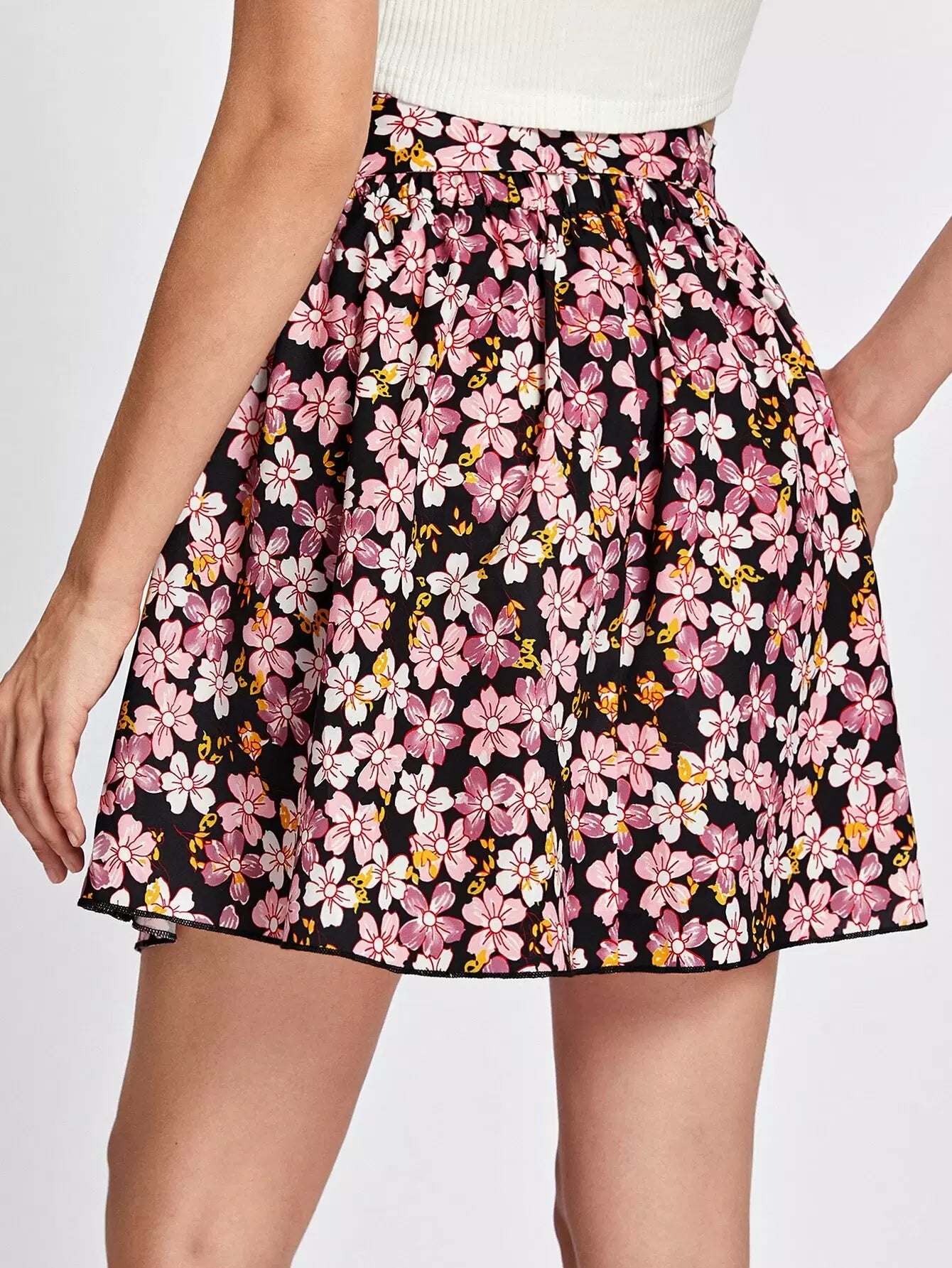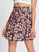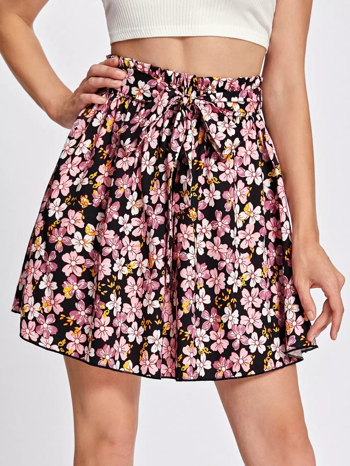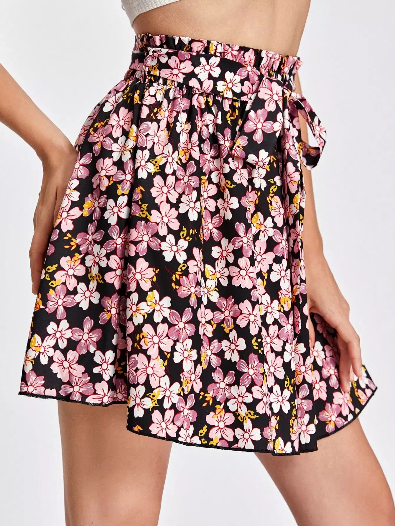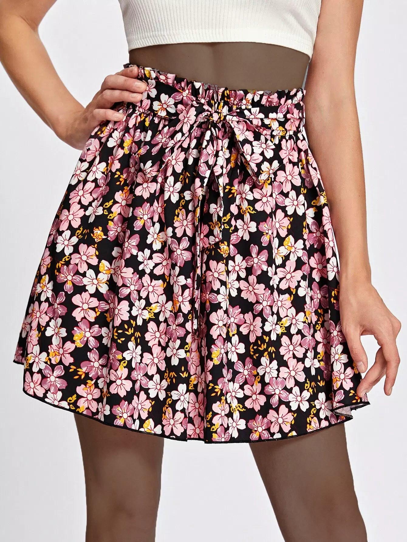 تنورة من الورق على الخصر بنقشة الزهور بدون حزام